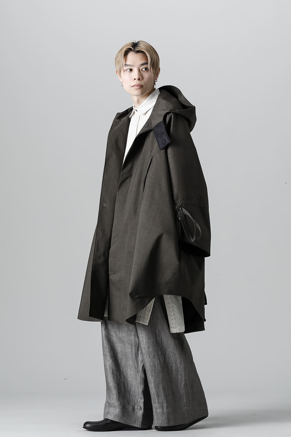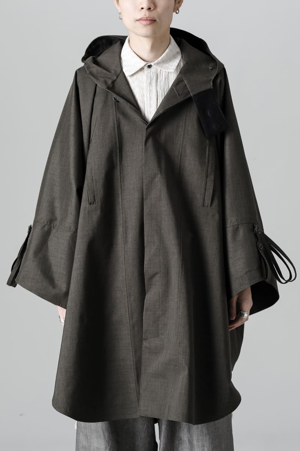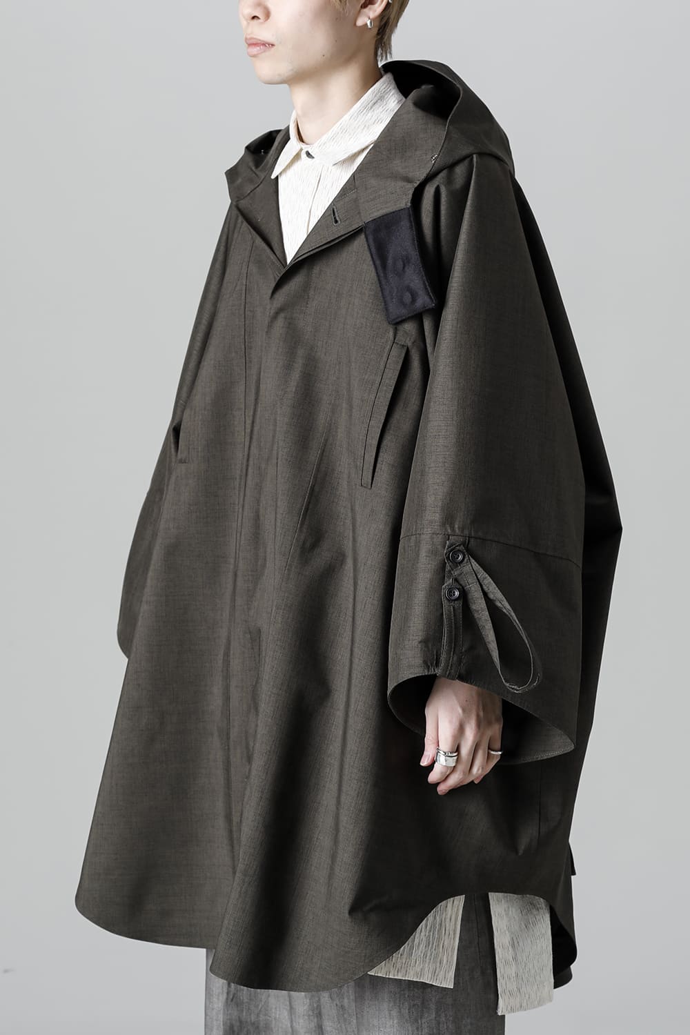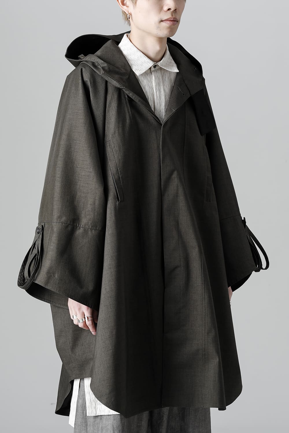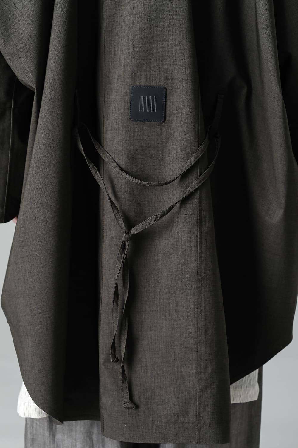 以雨衣和斗篷之间的意思而命名的这款单品,其特色在于像斗篷一样充足的面料量和从日本自古以来的和服中获得灵感的宽袖设计。