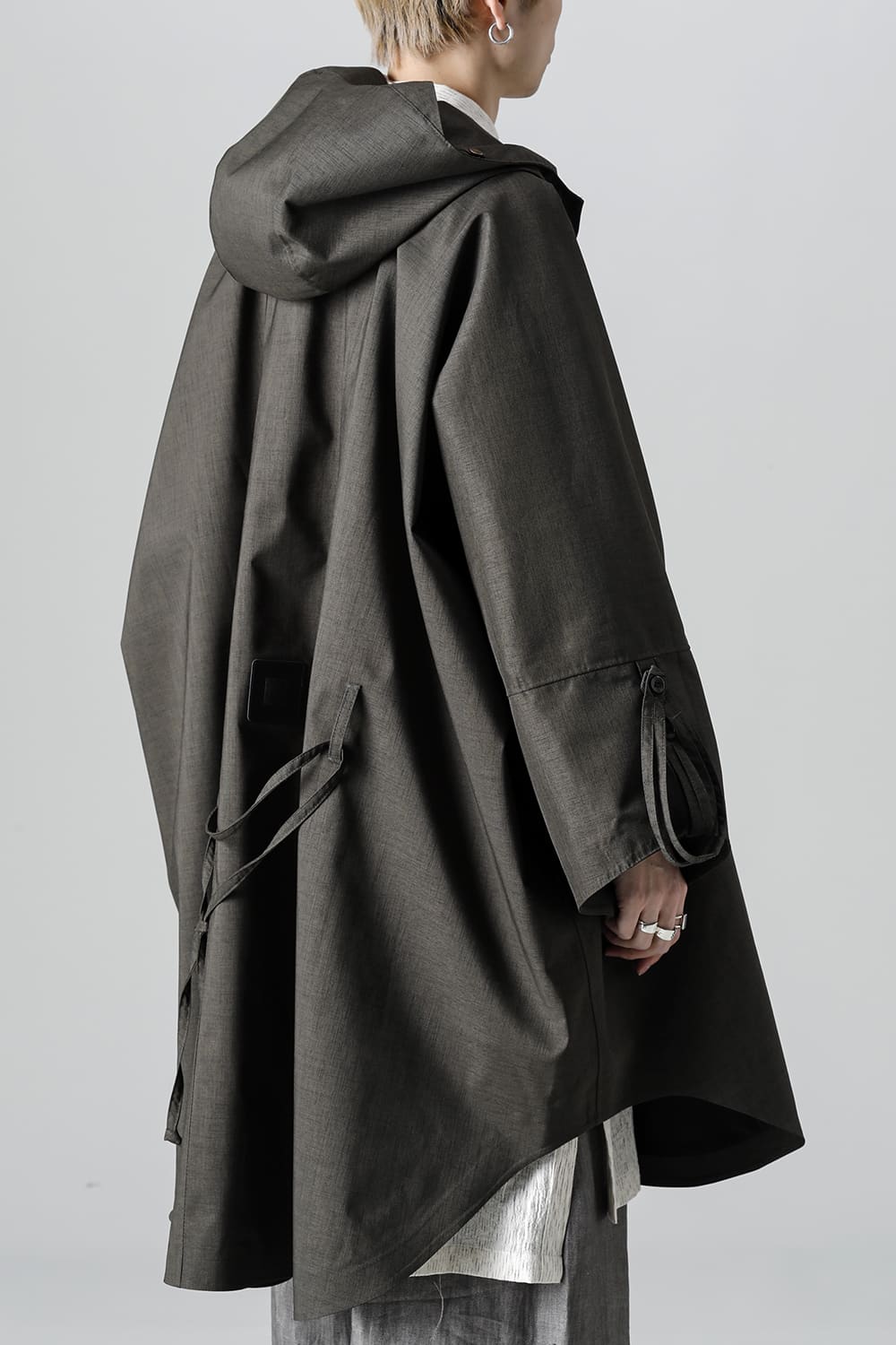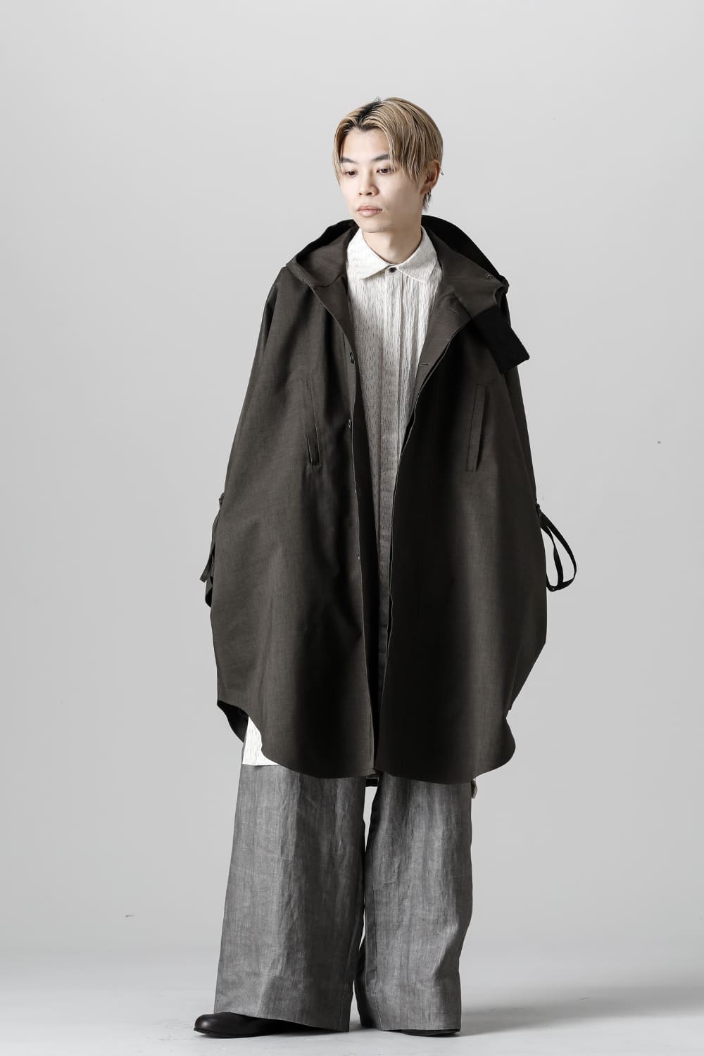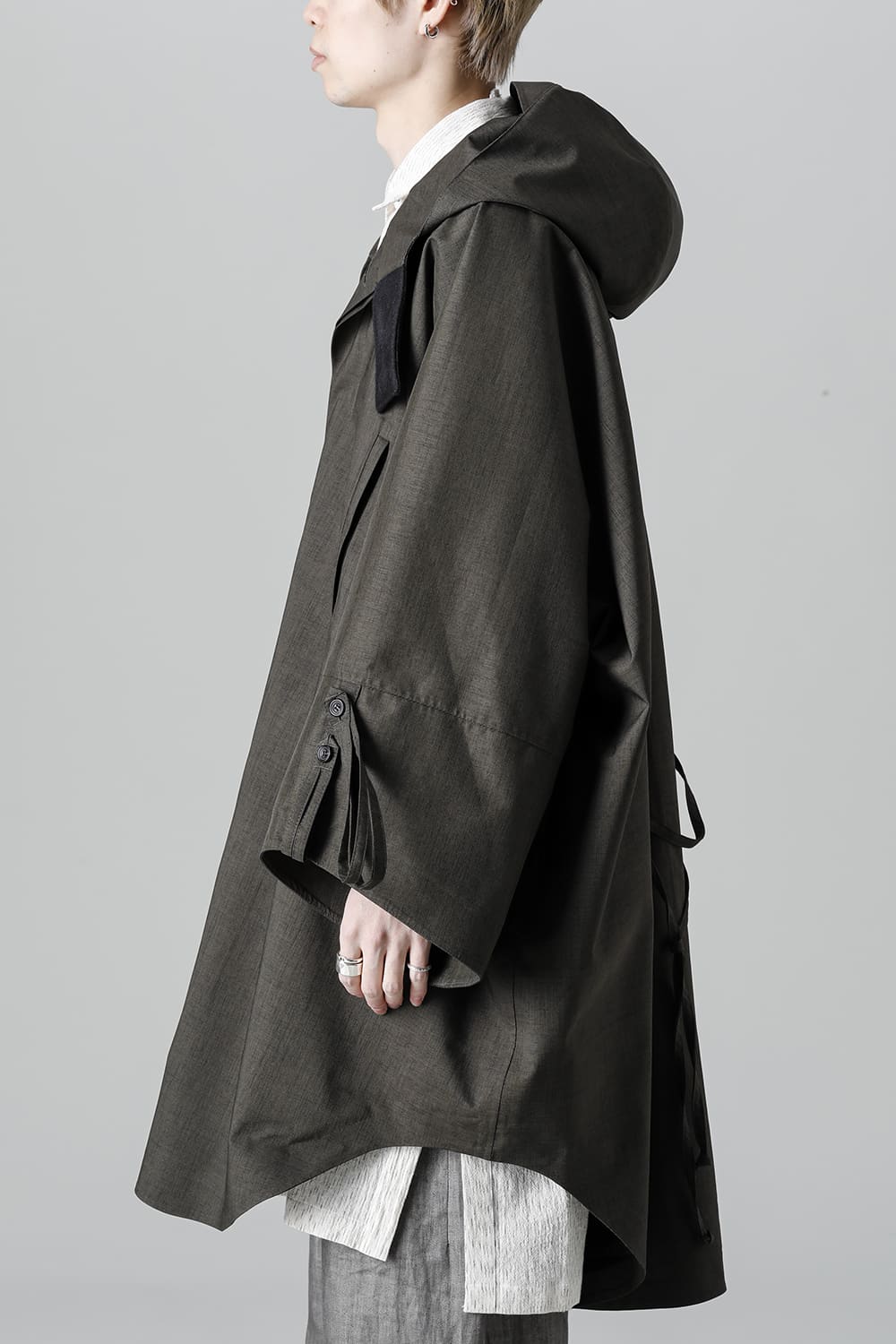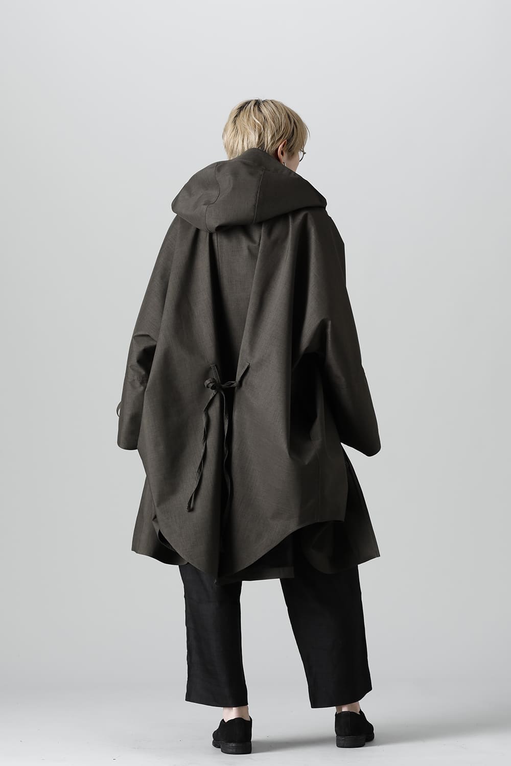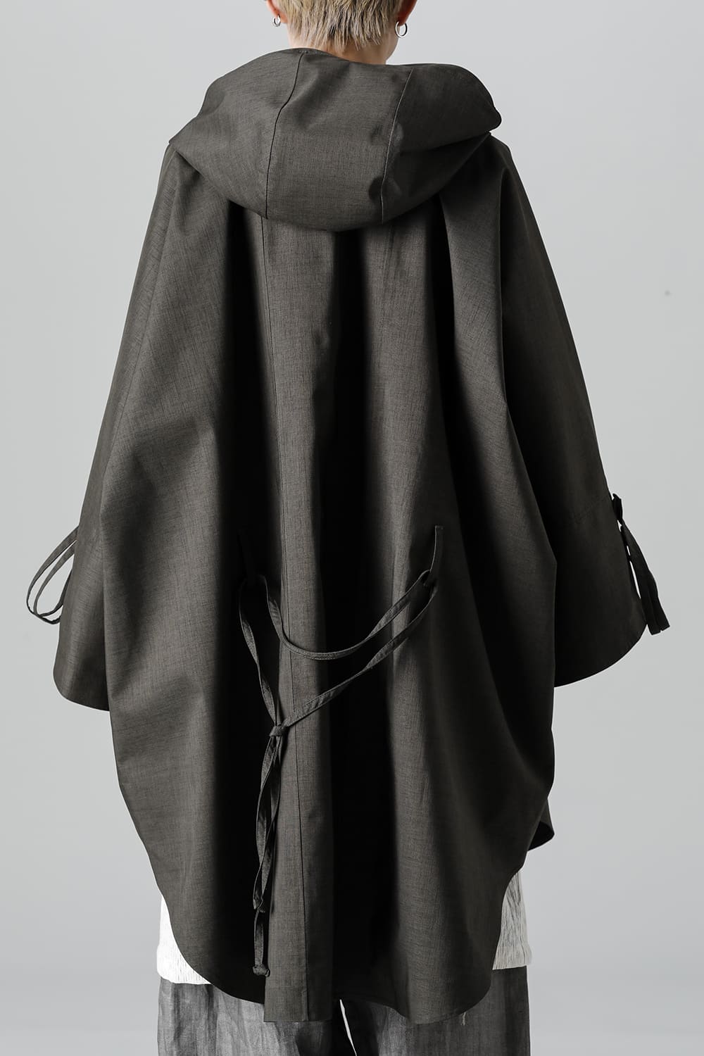 以雨衣和斗篷之间的意思而命名的这款单品,其特色在于像斗篷一样充足的面料量和从日本自古以来的和服中获得灵感的宽袖设计。