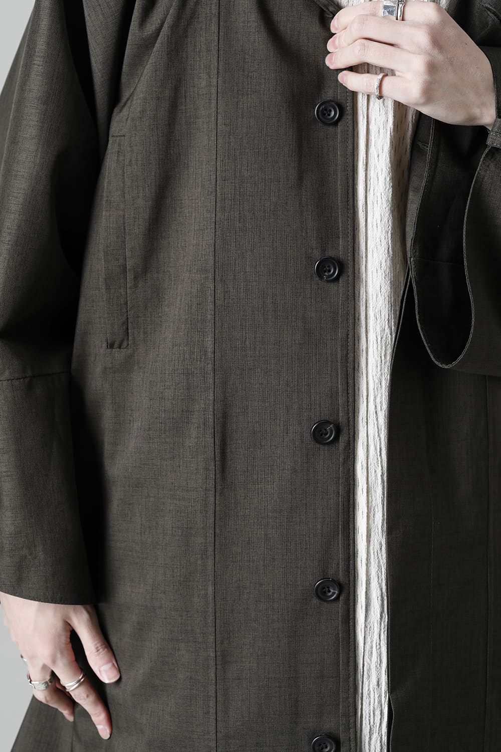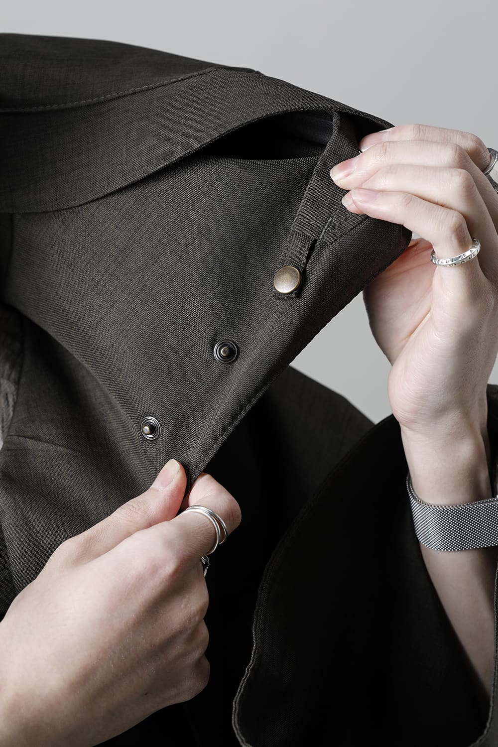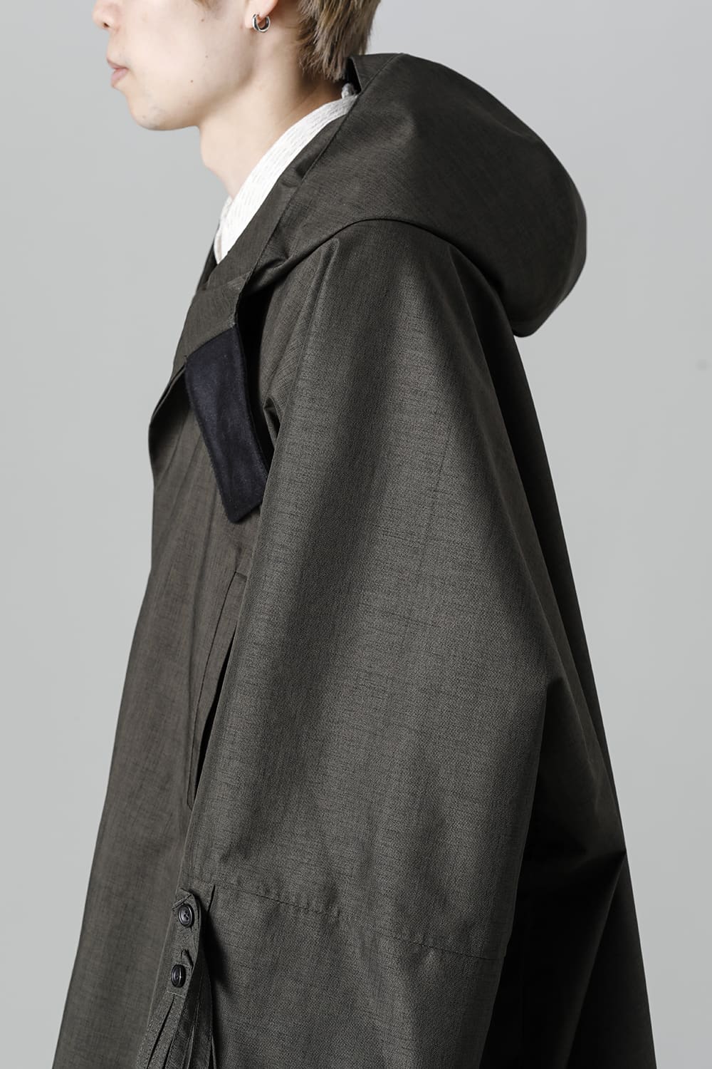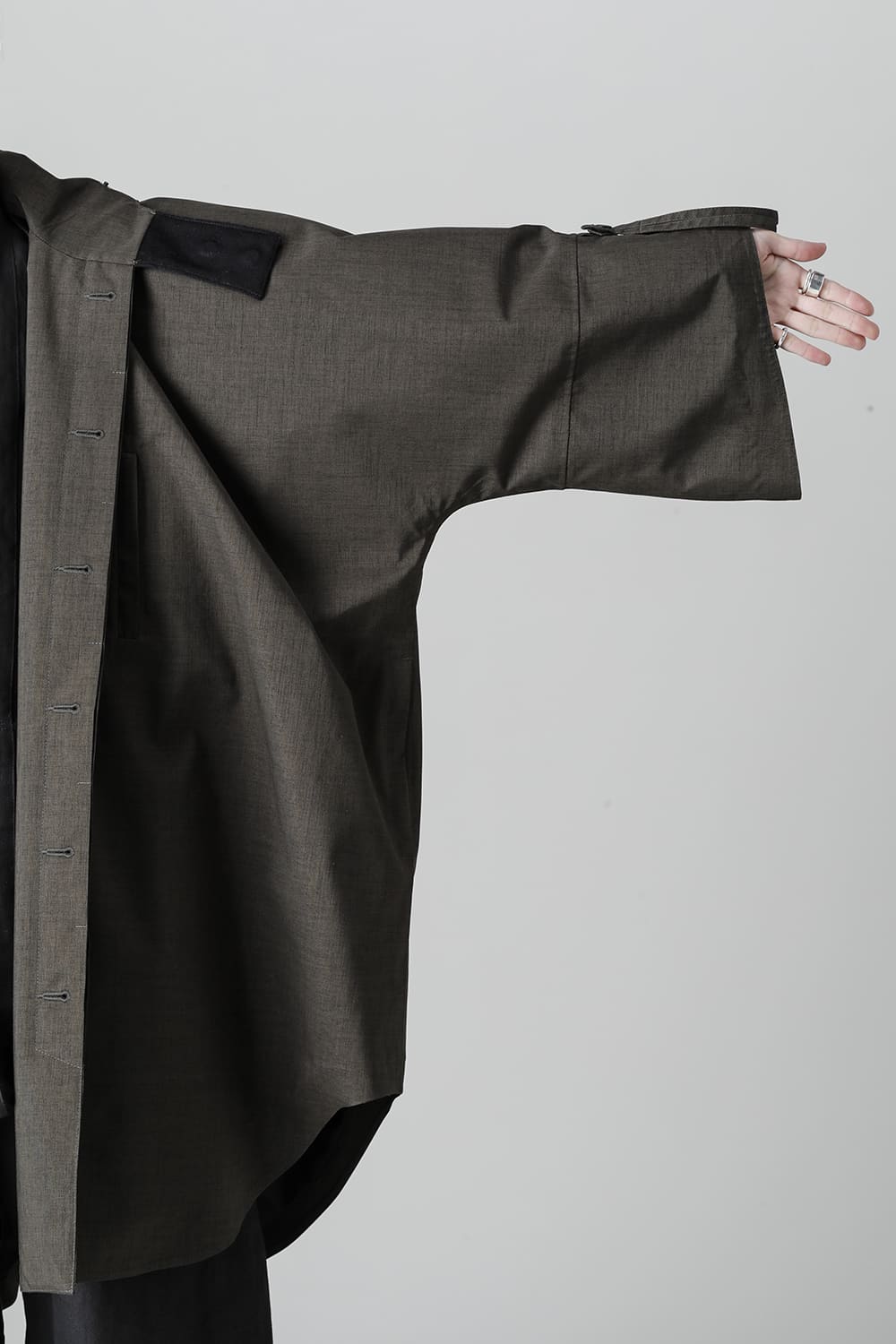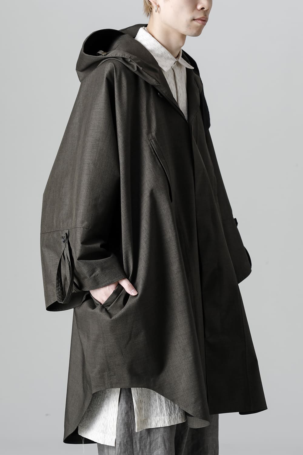 以雨衣和斗篷之间的意思而命名的这款单品,其特色在于像斗篷一样充足的面料量和从日本自古以来的和服中获得灵感的宽袖设计。