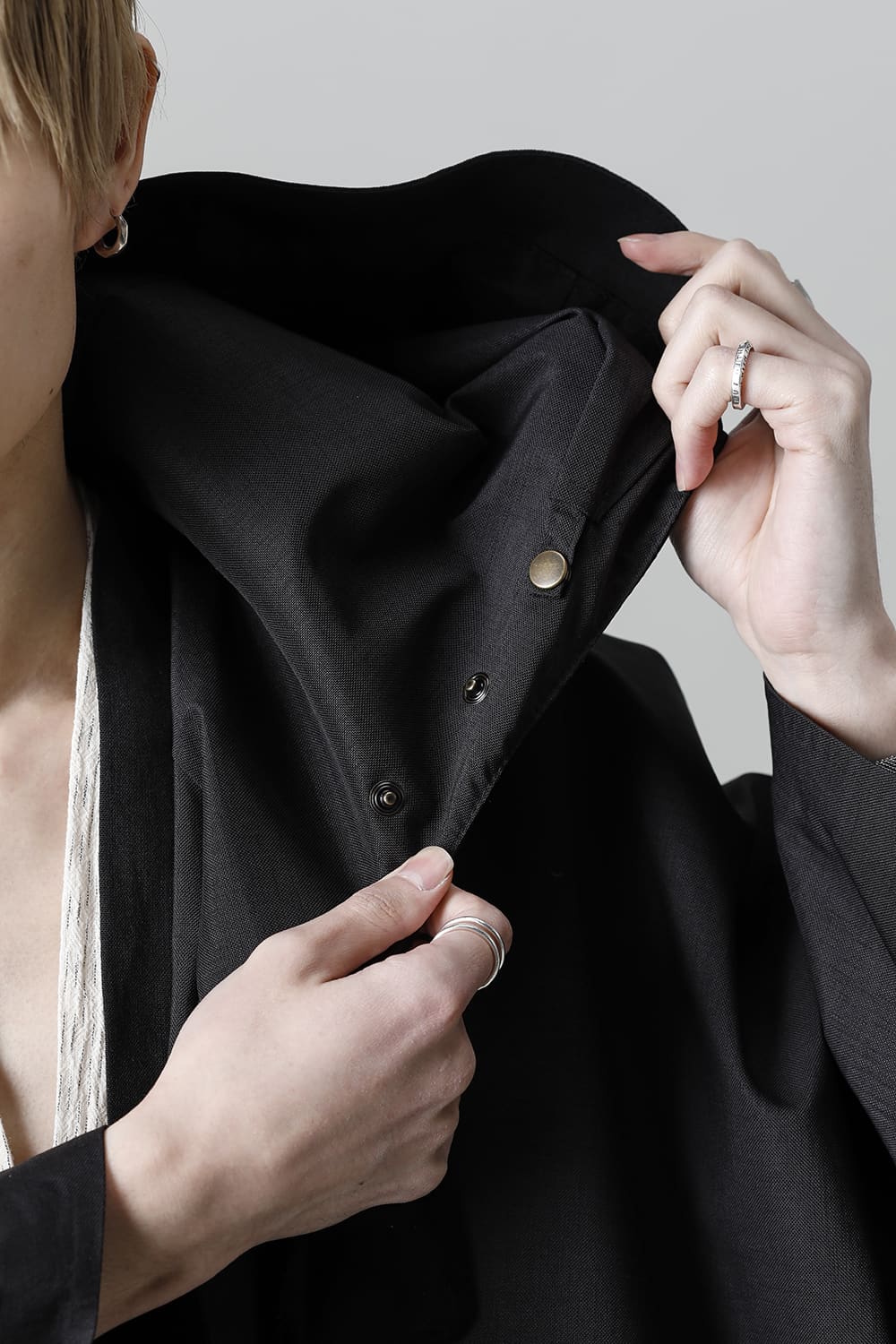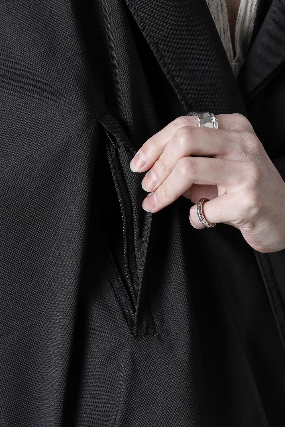以雨衣和斗篷之间的意思而命名的这款单品,其特色在于像斗篷一样充足的面料量和从日本自古以来的和服中获得灵感的宽袖设计。