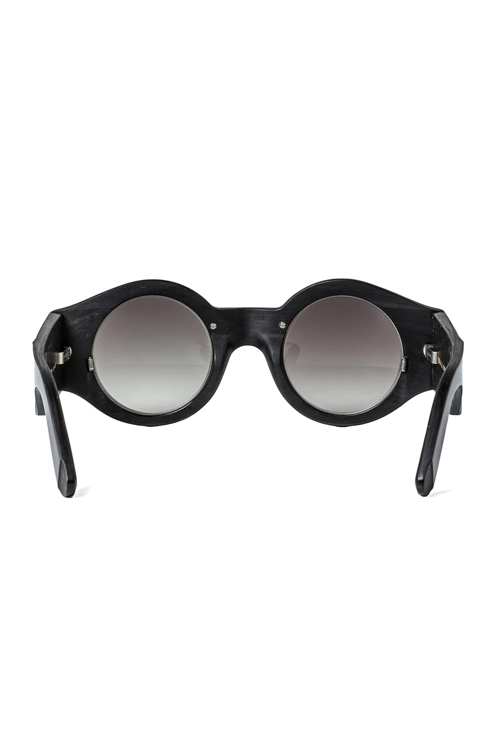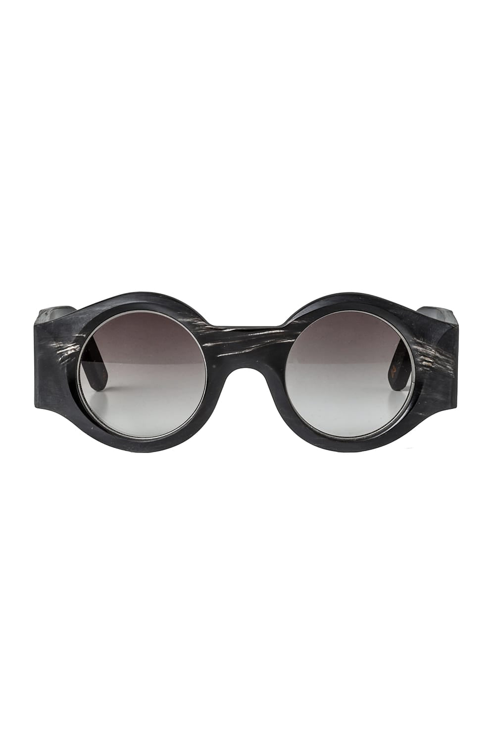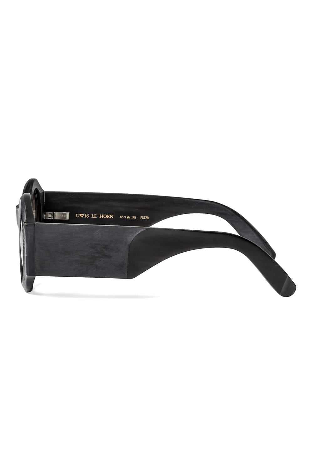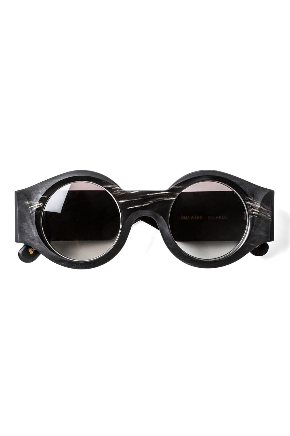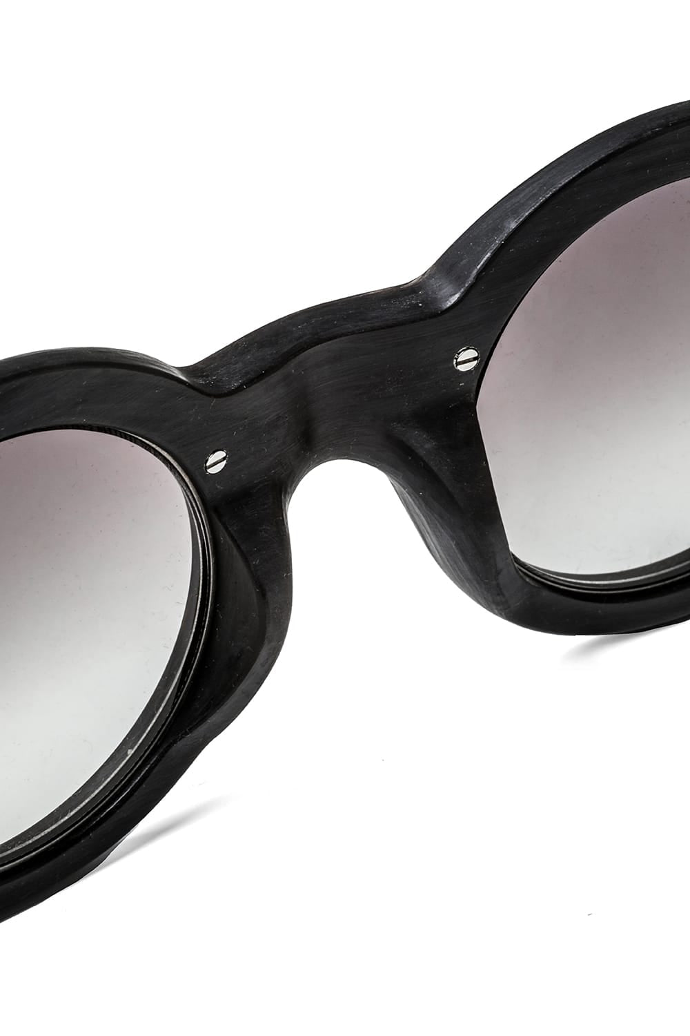 Metal parts are incorporated around the lenses, creating a unique piece where the hardness of metal coexists with the warmth of horn.