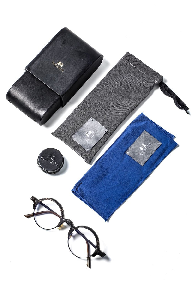 这是一款采用天然面料水牛角制成的半框式圆形眼镜。镜框上部为镜面抛光,靠近镜片的内侧和鼻子附近为哑光处理的组合。框架颜色Uni Black&White是一种复杂而平静的色调,其中白色随机插入黑色底座。独一无二的天然层次感很有韵味,能让您获得独一无二的满足感。框架下部和眼镜脚的金属配件也采用了黑色,给人以非常成熟的印象。因为是轻质的钛制,所以戴起来也很轻便。镜头是蓝光切割。镜架因为慢慢地水分流失干燥,所以涂上附属品牌的原创油的话,可以防止干燥。另外还附有皮套和保证书。