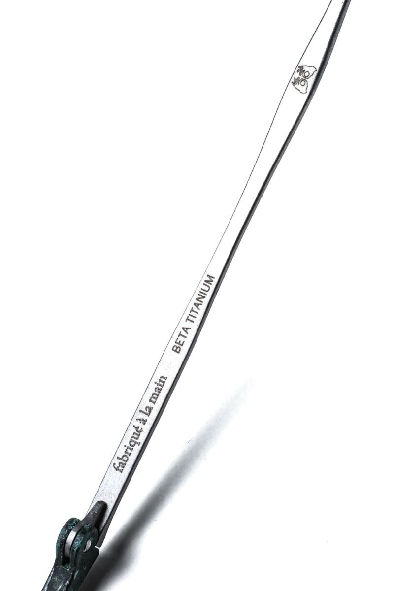 The frame is made of beta titanium, which is spring-loaded by adding vanadium and aluminum, making it extremely lightweight and supple to wear.