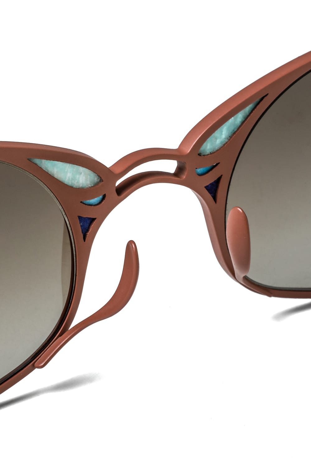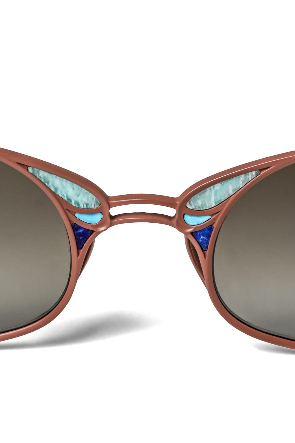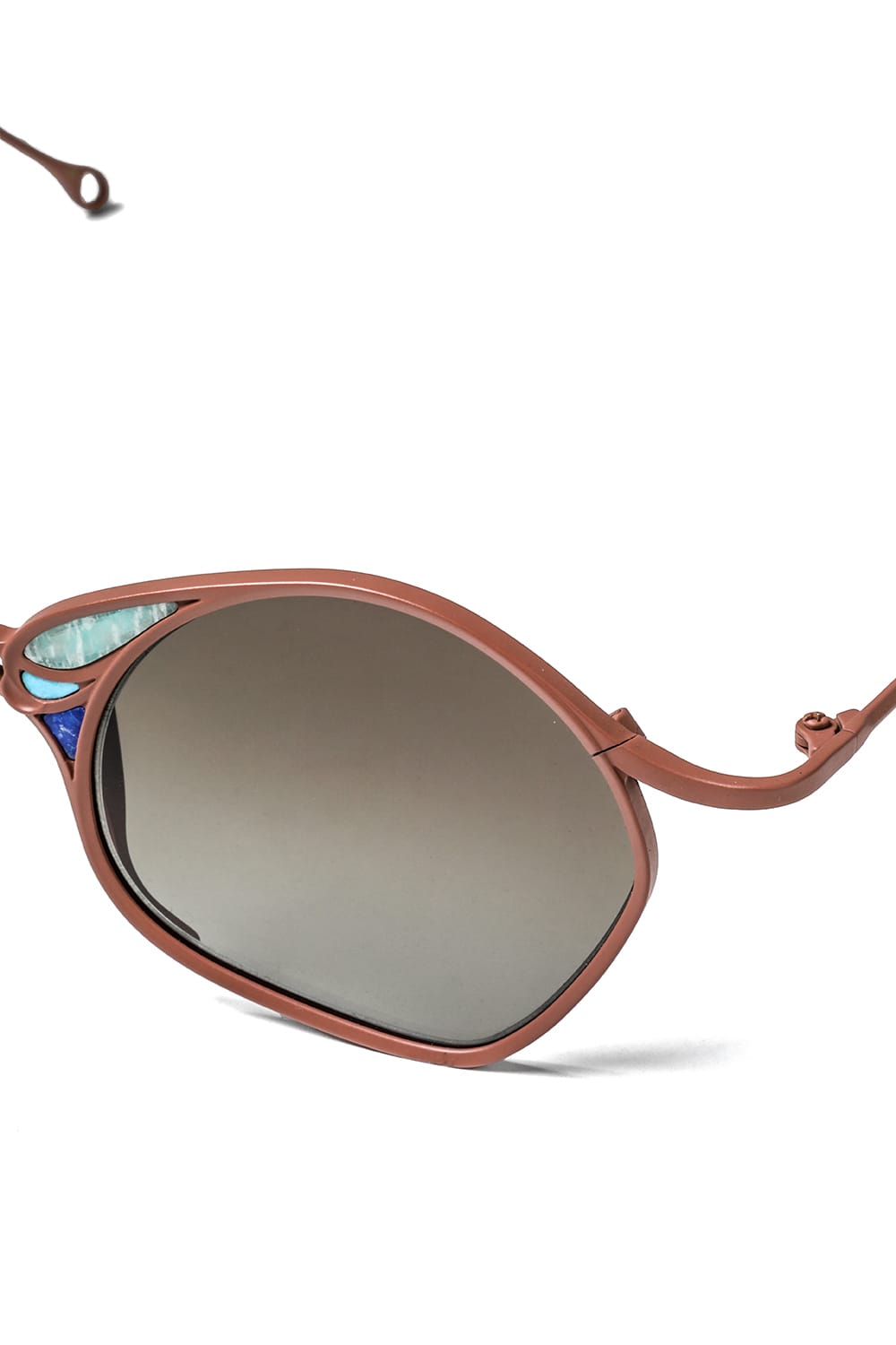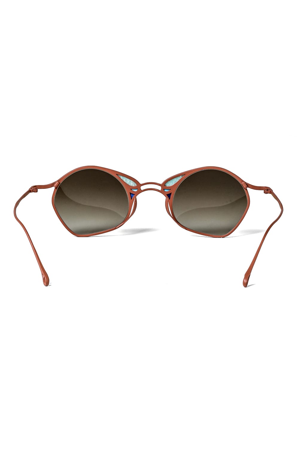 Available in a variety of colors and finishes for both frames and lenses, this model features a frame color reminiscent of vintage rust, paired with brown gradient lenses that complement the frame color well.