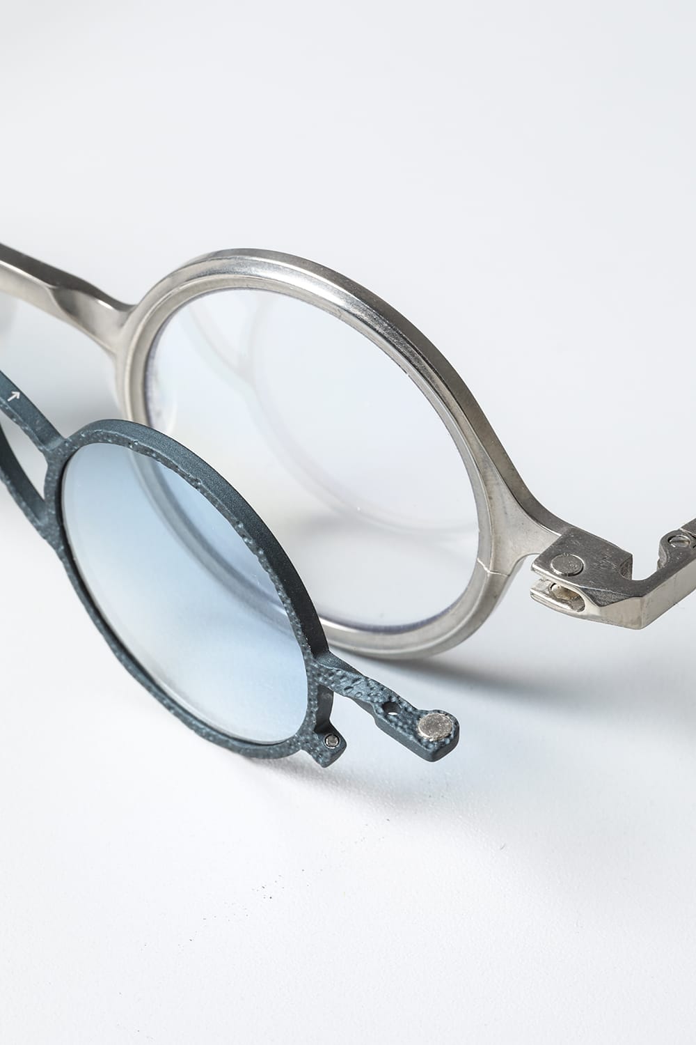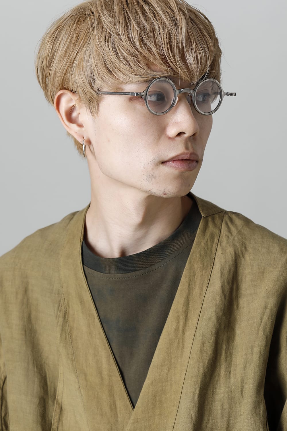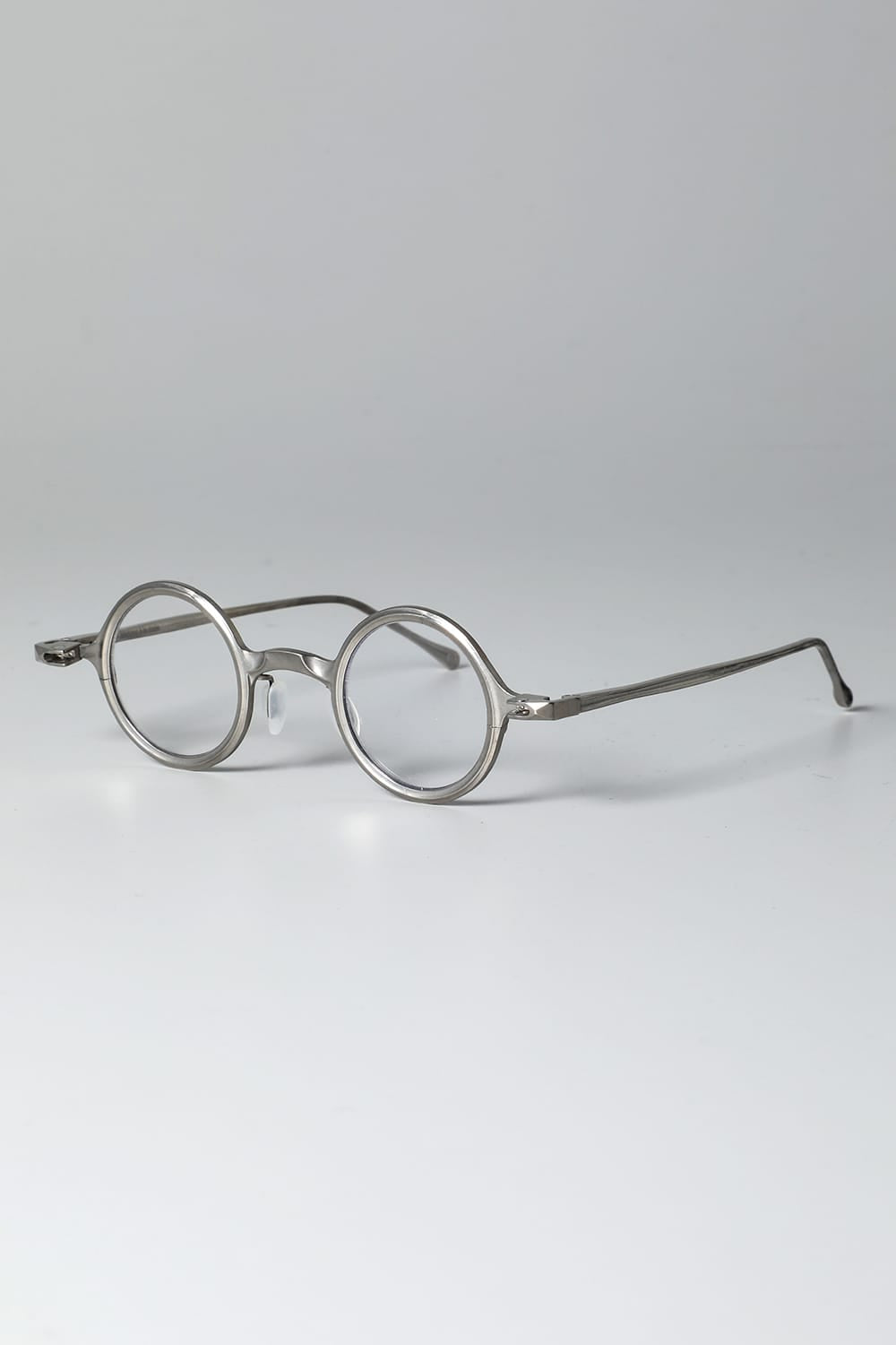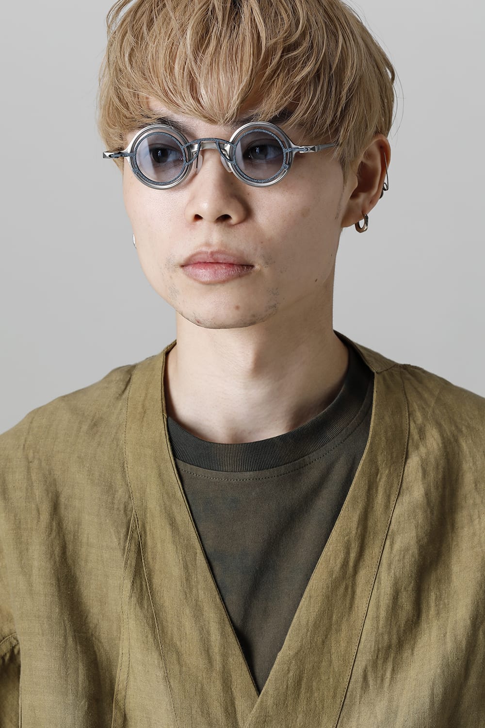 在RIGARDS的金属框架系列中给人留下深刻印象的一款ZIGGY CHEN合作商品“Mad Scientist”。以让人联想到古董眼镜的古典款式的圆形铜框为基础,具有近代印象的2way磁吸式设计为特点。由于磁吸设计,带给穿着者带来不可思议的神秘印象的框架设计,可以说是现在RIGARDS眼镜的主要形象之一。镜框整体采用了钛,与铜制材料的模型相比,外观比较素雅,也减轻了铜制镜框的重量问题,因此作为实用性较高的模型推出。另外,磁吸部分的框架与主体框架的素雅风格完全相反,进行了凹凸不平的纹理加工,是一款可以享受对比的商品。鼻垫部分使用了柔软的橡胶面料,穿起来非常舒适。