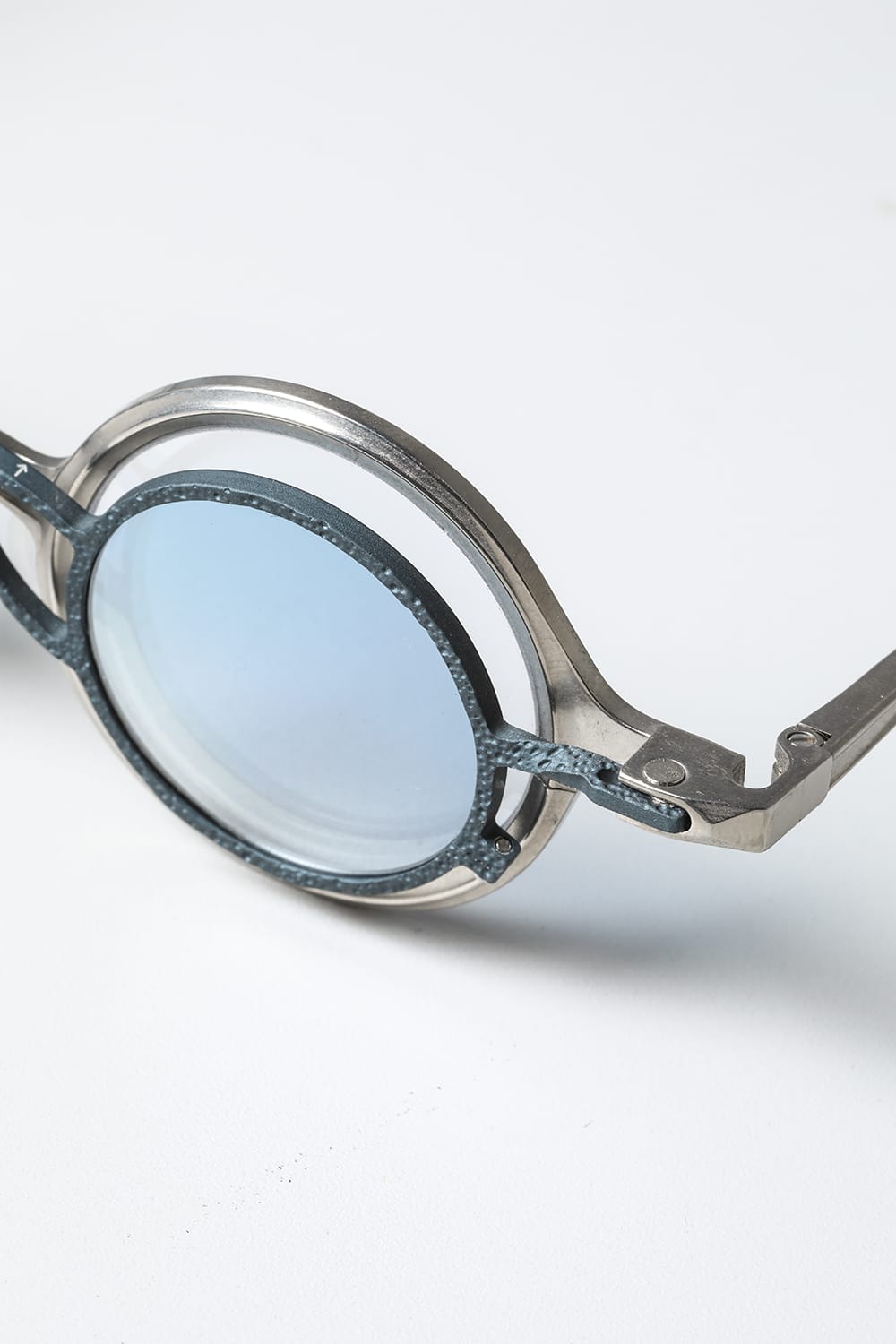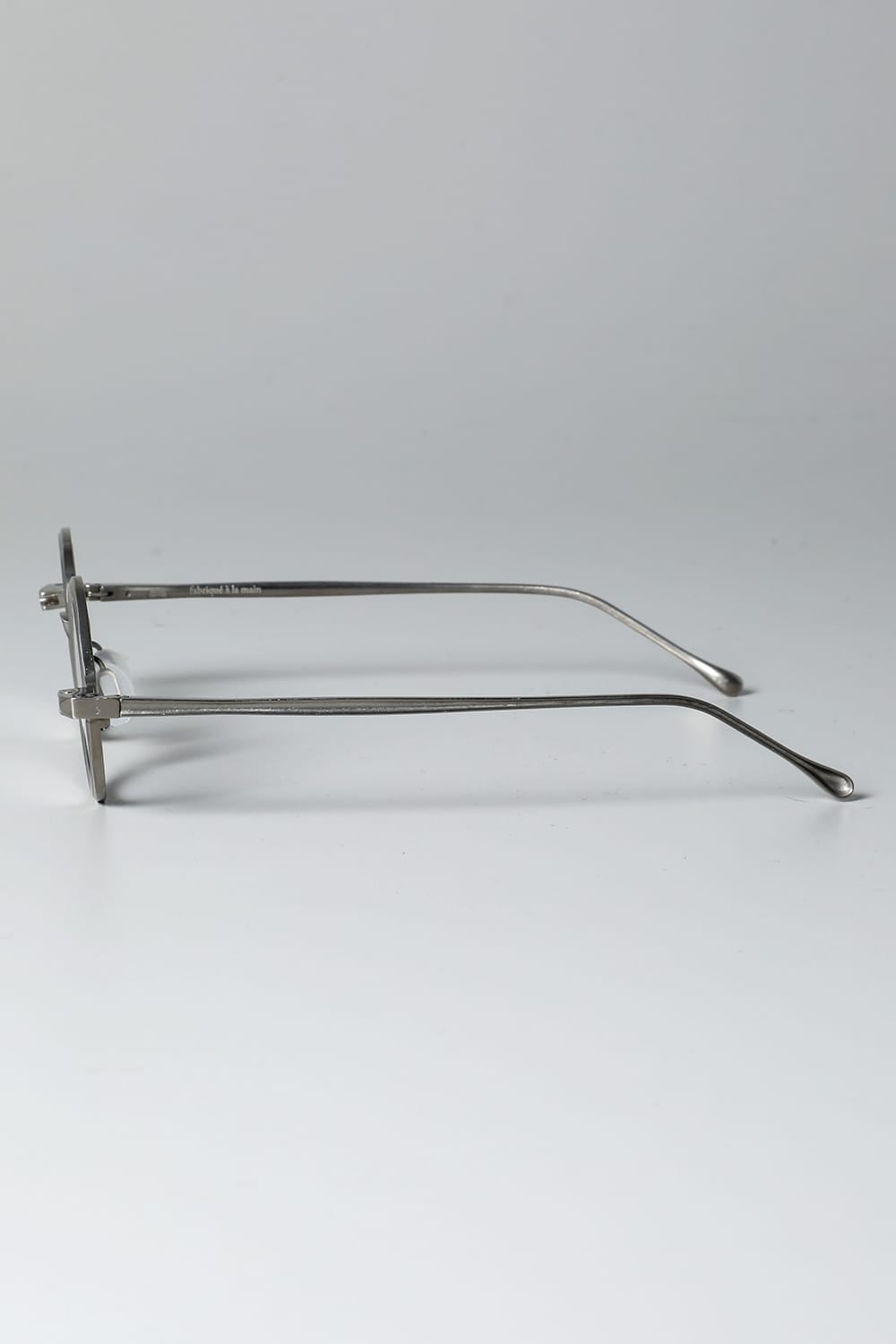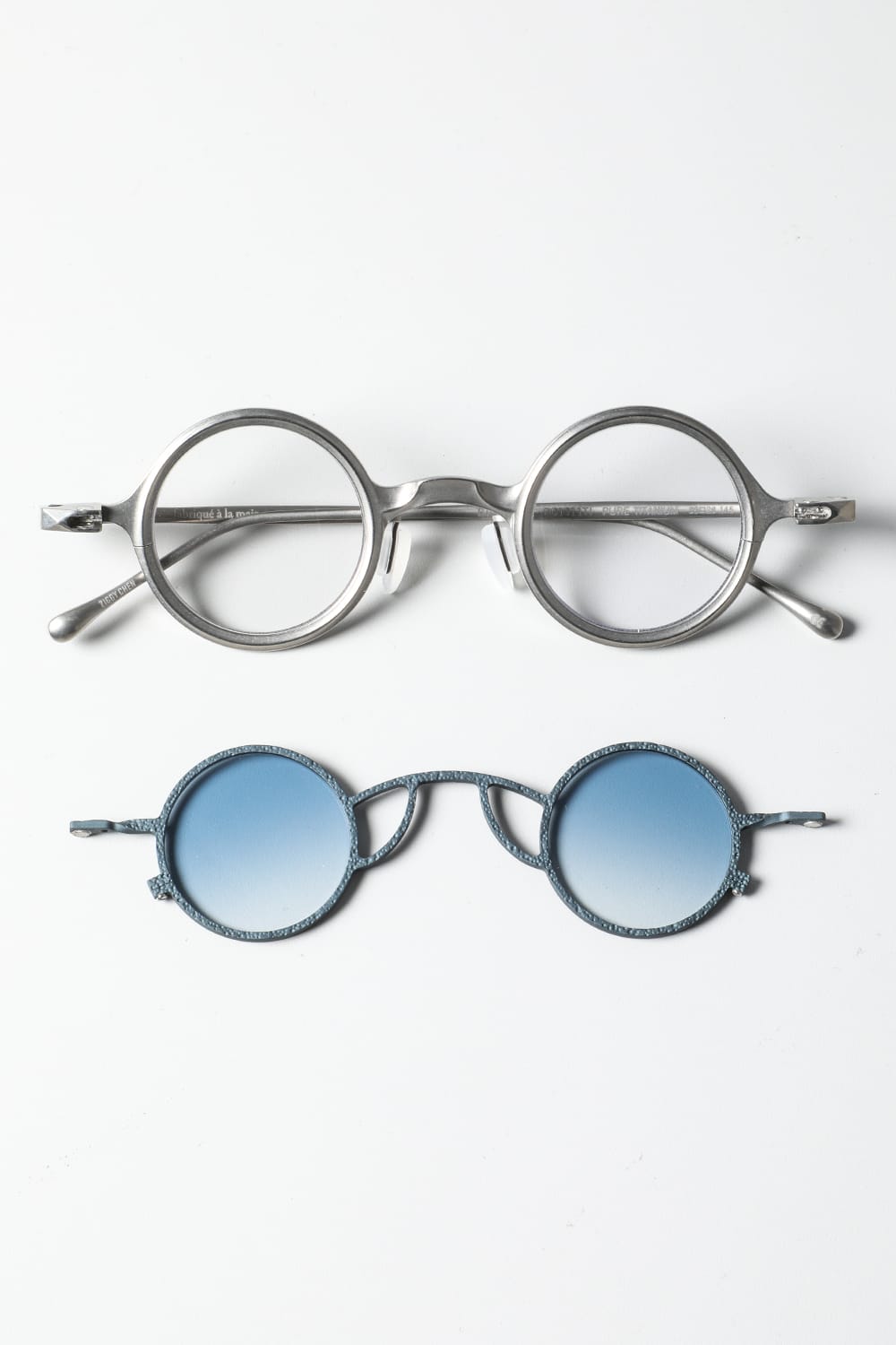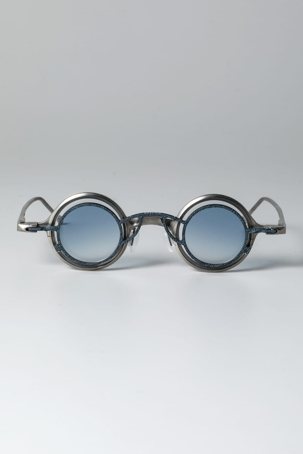 在RIGARDS的金属框架系列中给人留下深刻印象的一款ZIGGY CHEN合作商品“Mad Scientist”。以让人联想到古董眼镜的古典款式的圆形铜框为基础,具有近代印象的2way磁吸式设计为特点。由于磁吸设计,带给穿着者带来不可思议的神秘印象的框架设计,可以说是现在RIGARDS眼镜的主要形象之一。镜框整体采用了钛,与铜制材料的模型相比,外观比较素雅,也减轻了铜制镜框的重量问题,因此作为实用性较高的模型推出。另外,磁吸部分的框架与主体框架的素雅风格完全相反,进行了凹凸不平的纹理加工,是一款可以享受对比的商品。鼻垫部分使用了柔软的橡胶面料,穿起来非常舒适。