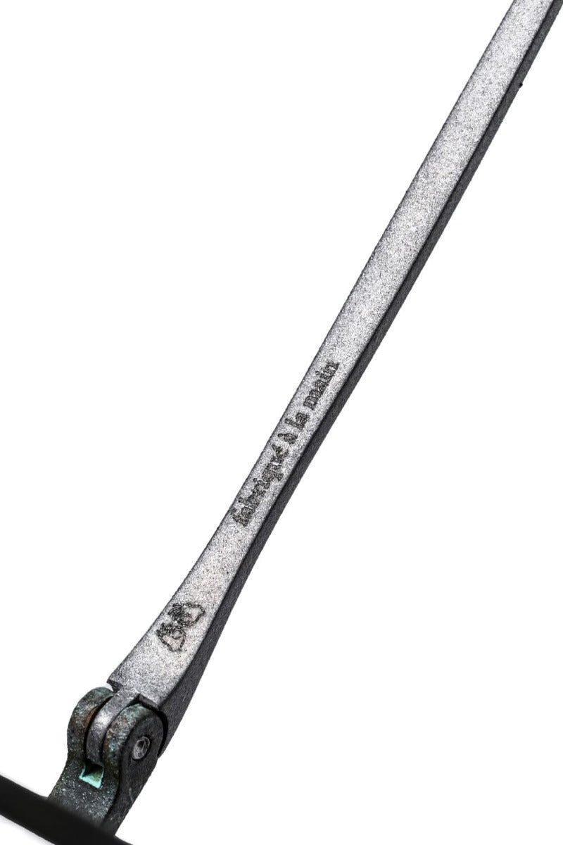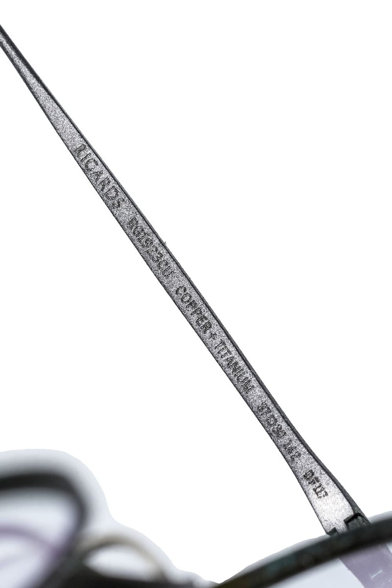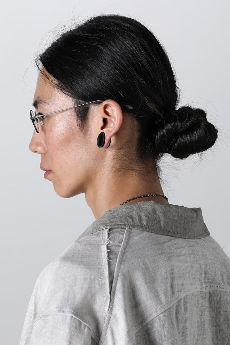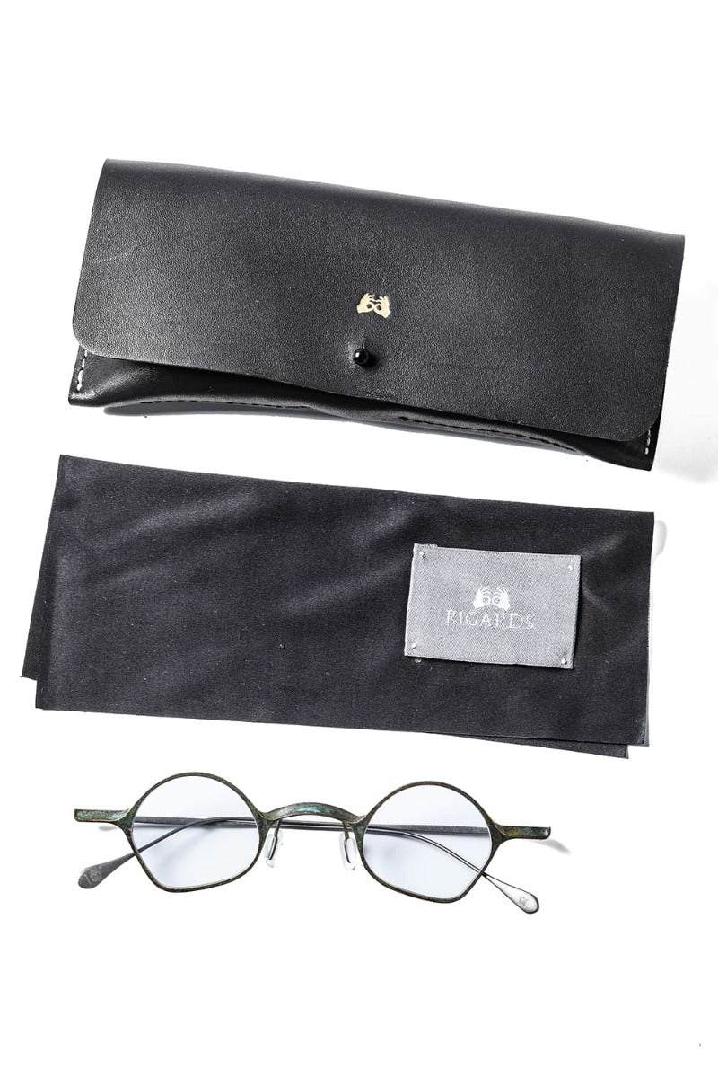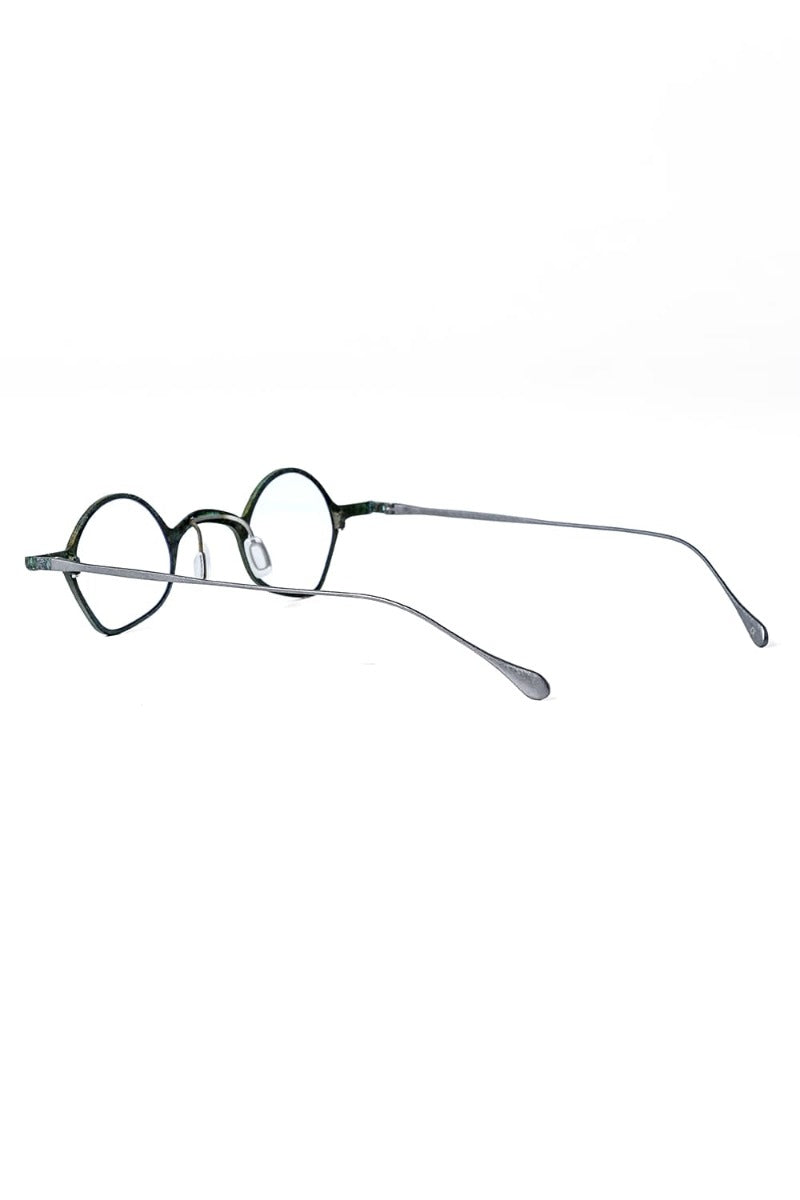 小巧的异形全框眼镜。边缘下部设计有棱角,给椭圆形增添了韵味,是一款与众不同的单品。这款单品经过工匠的手精心研磨,具有粗糙的质感,洋溢着匠心。颜色有两种规格,暗金 (+透明镜片) 和大胆腐蚀处理的蓝锈 (+透明镜片) 。经过生锈加工,浸泡在独自调配的特殊药品中调整颜色,由于浸泡时间是按照设计师的感觉进行的,所以每一件都有着不同的感觉。仿佛被自然侵蚀一般的表情,让人联想到日本的侘寂,趣味颇深。经过生锈加工后, 表面进行了涂层保护,因此随着时间的推移也不太会变化,您可以尽情享受这种原汁原味的感觉。