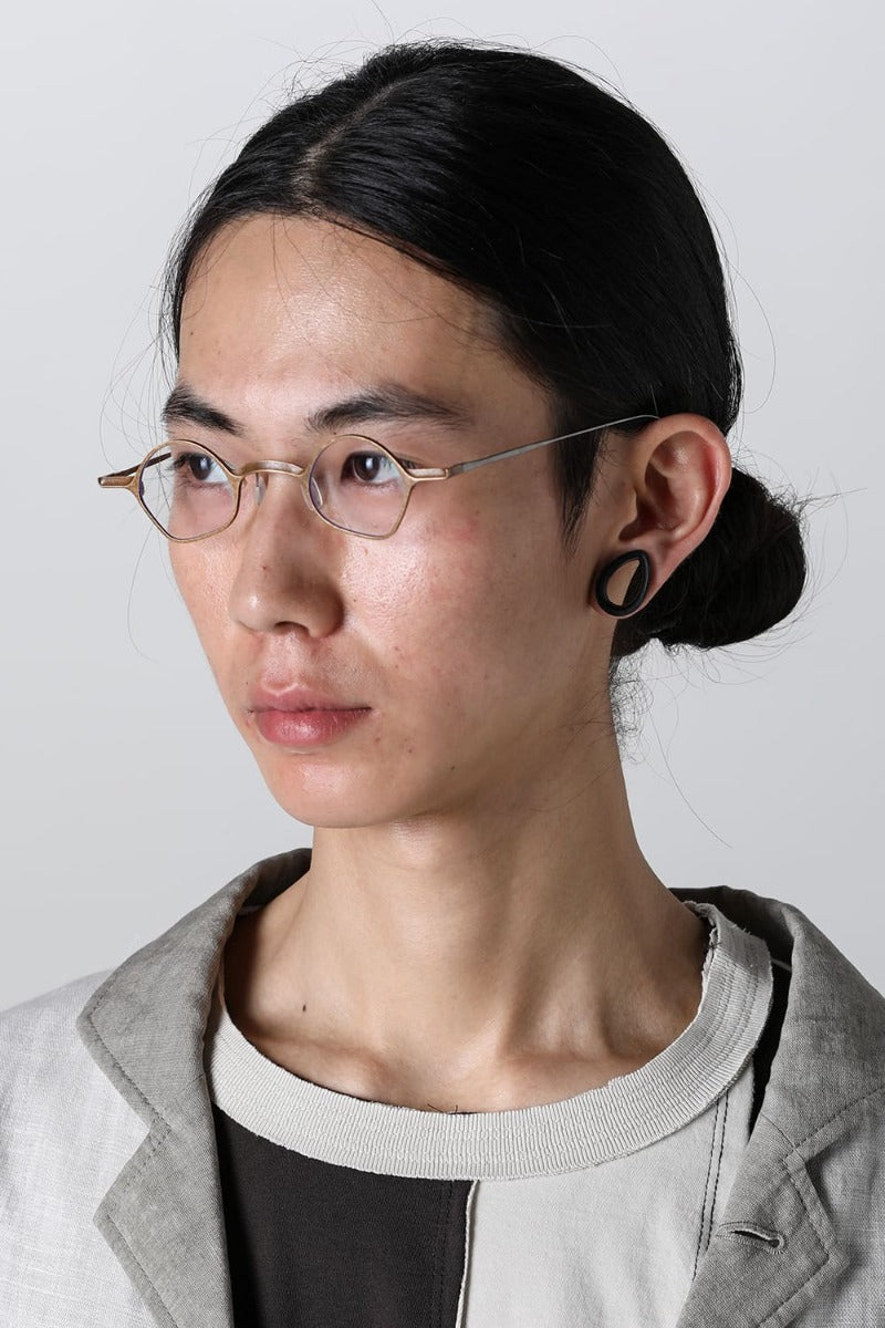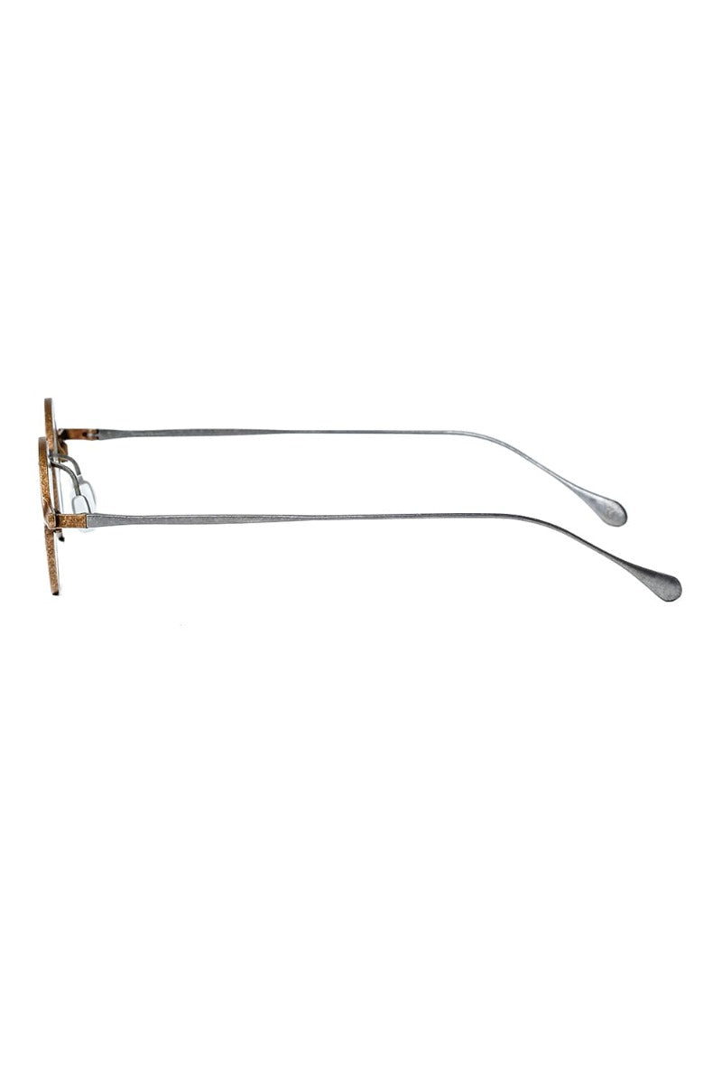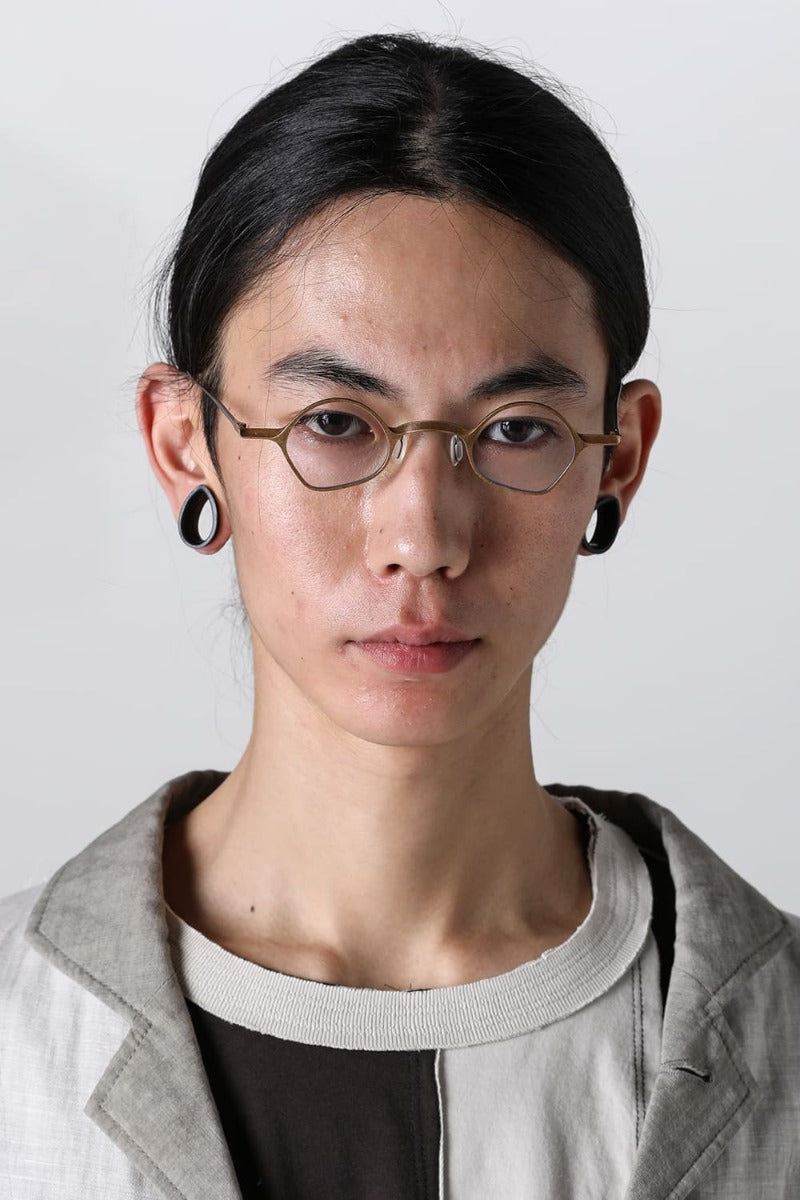 小巧的异形全框眼镜。边缘下部设计有棱角,给椭圆形增添了韵味,是一款与众不同的单品。这款单品经过工匠的手精心研磨,具有粗糙的质感,洋溢着匠心。颜色有两种规格,暗金 (+透明镜片) 和大胆腐蚀处理的蓝锈 (+透明镜片) 。经过生锈加工,浸泡在独自调配的特殊药品中调整颜色,由于浸泡时间是按照设计师的感觉进行的,所以每一件都有着不同的感觉。仿佛被自然侵蚀一般的表情,让人联想到日本的侘寂,趣味颇深。经过生锈加工后, 表面进行了涂层保护,因此随着时间的推移也不太会变化,您可以尽情享受这种原汁原味的感觉。