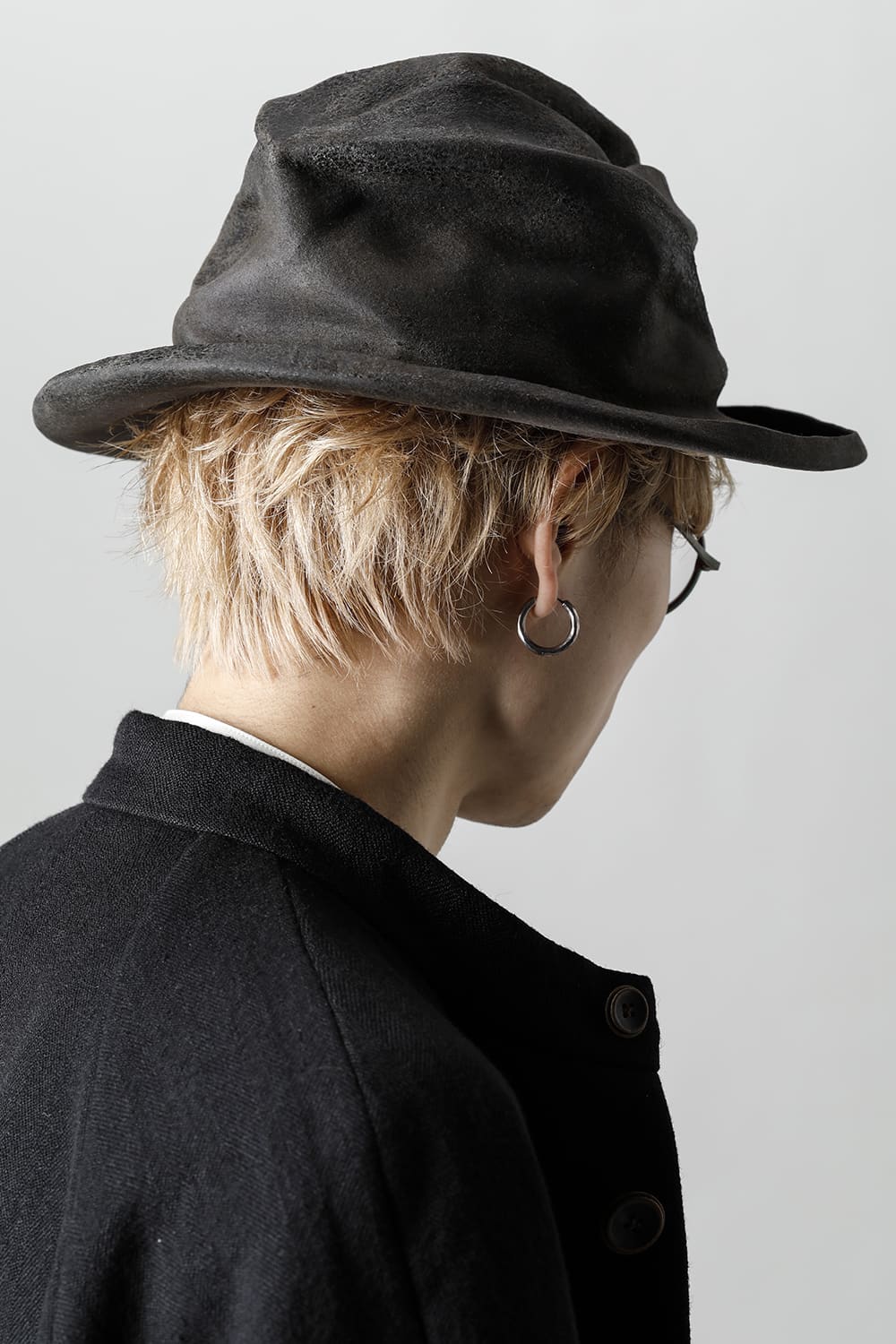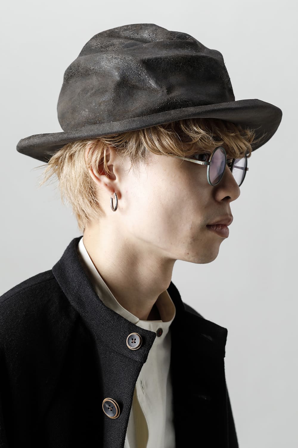 这款单品的特色在于经典推出的不造作的皇冠和边缘的弯曲帽檐。这款帽子的魅力在于可以卷起来携带,也可以自由地制作形状,可以随意使用。内部有弹性衬里,不容易脱落,虽然是均码,但是戴起来很舒服。使用了柔软且耐用性极佳的兔毛的硬皮面料。灰色的毛毡面料经过工匠的烘烤加工,营造出灰色棕色的光泽和美丽的皮革质感。染色、缝制全部都是手工制作的,因此微妙的个体差异也可以作为HORISAKI的味道,请尽情享受。