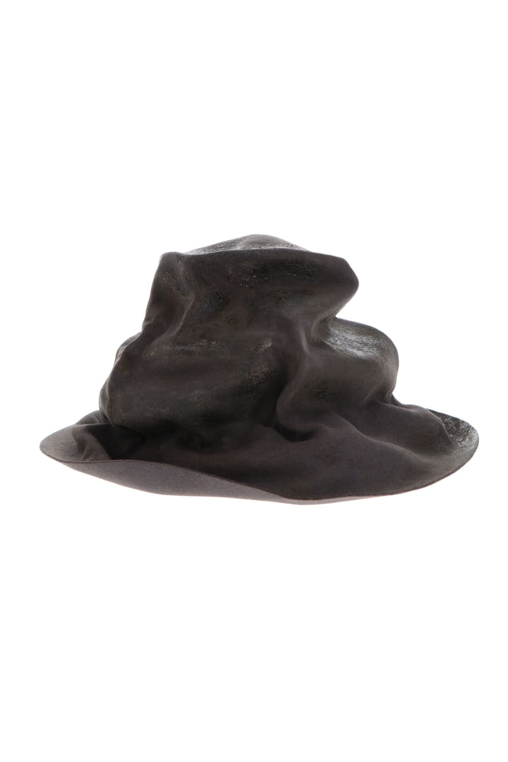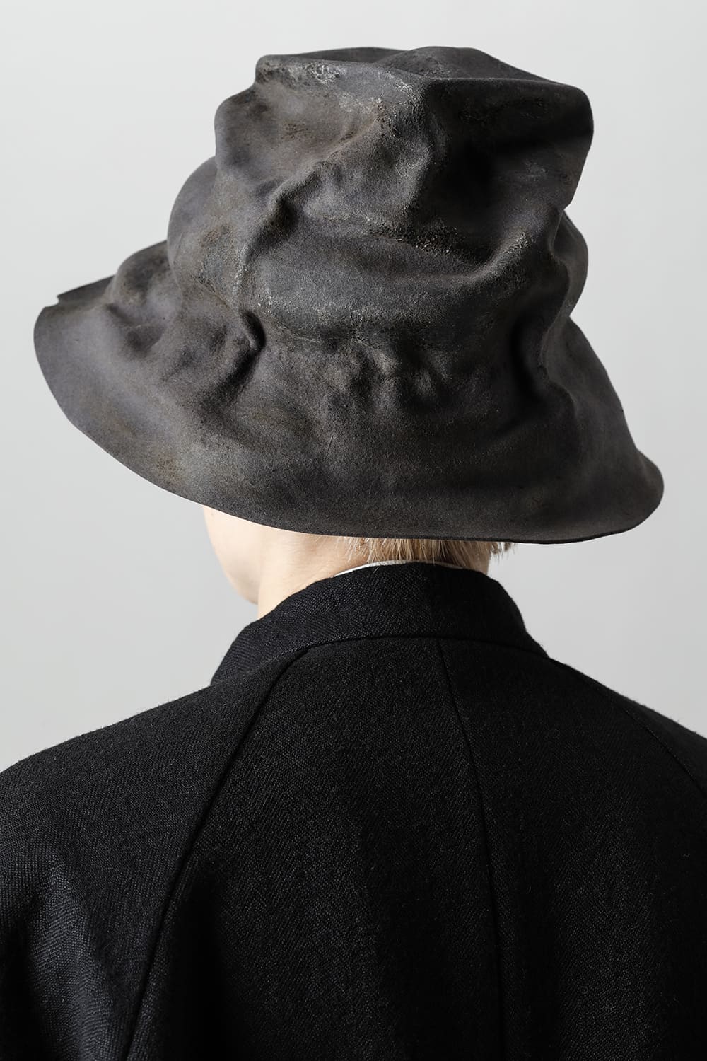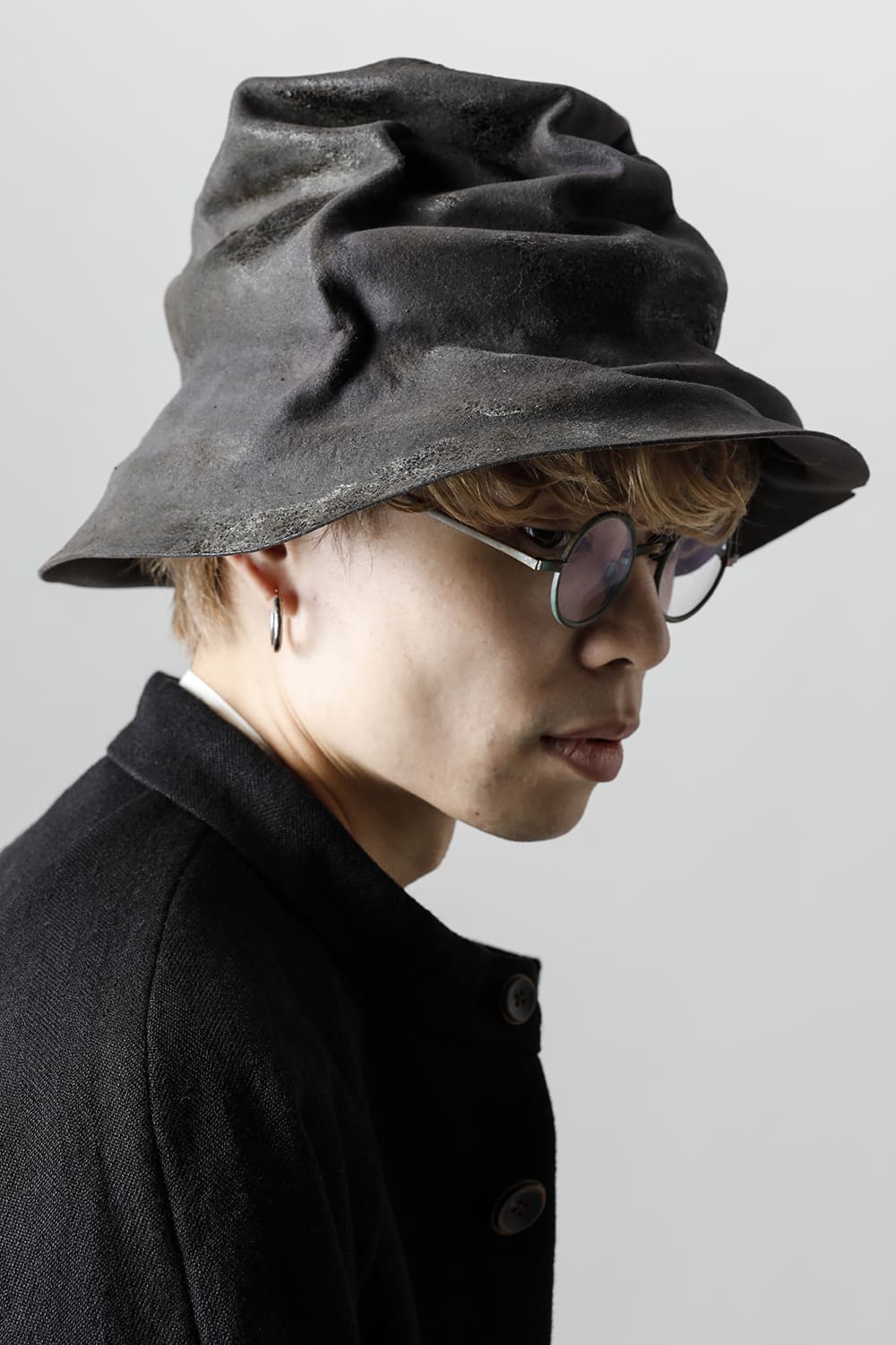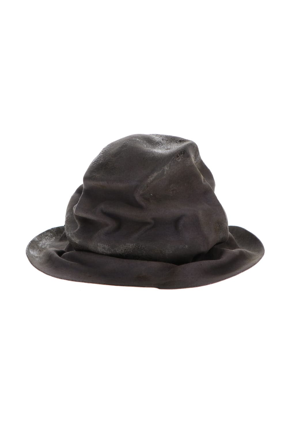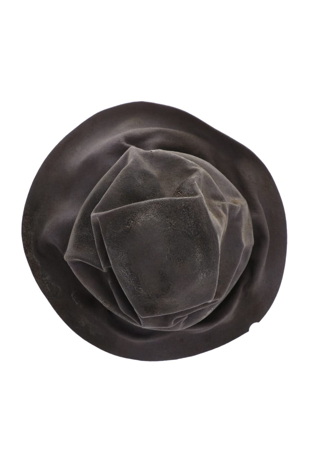 HORISAKI经典的古典风格,俗称“薄烤饼”的单品。这款帽子的特色在于褶皱的帽檐和帽冠,可以卷起来携带,也可以自由地制作形状,是一款使用起来非常随意的帽子。内部有弹性衬里,不容易脱落,虽然是均码,但是戴起来很舒服。使用了柔软且耐用性极佳的兔毛的硬皮面料。灰色的毛毡面料经过工匠的烘烤加工,营造出灰色棕色的光泽和美丽的皮革质感。染色、缝制全部都是手工制作的,因此微妙的个体差异也可以作为HORISAKI的味道,请尽情享受。