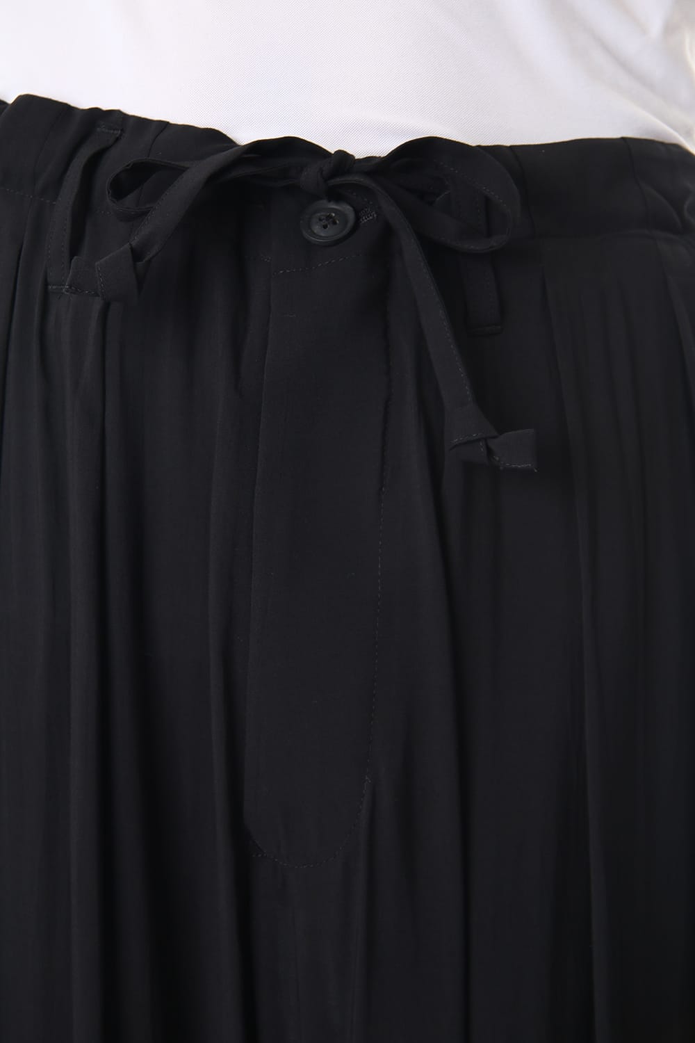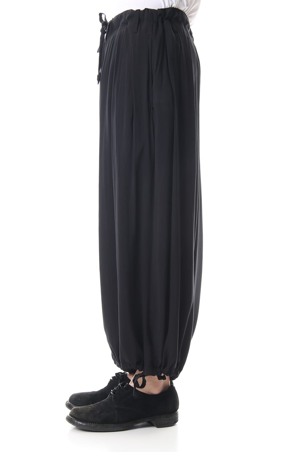 Balloon pants made of rayon loan fabric that drapes beautifully while walking. The right side features a text print and an embroidery style print with a hunting trophy motif.