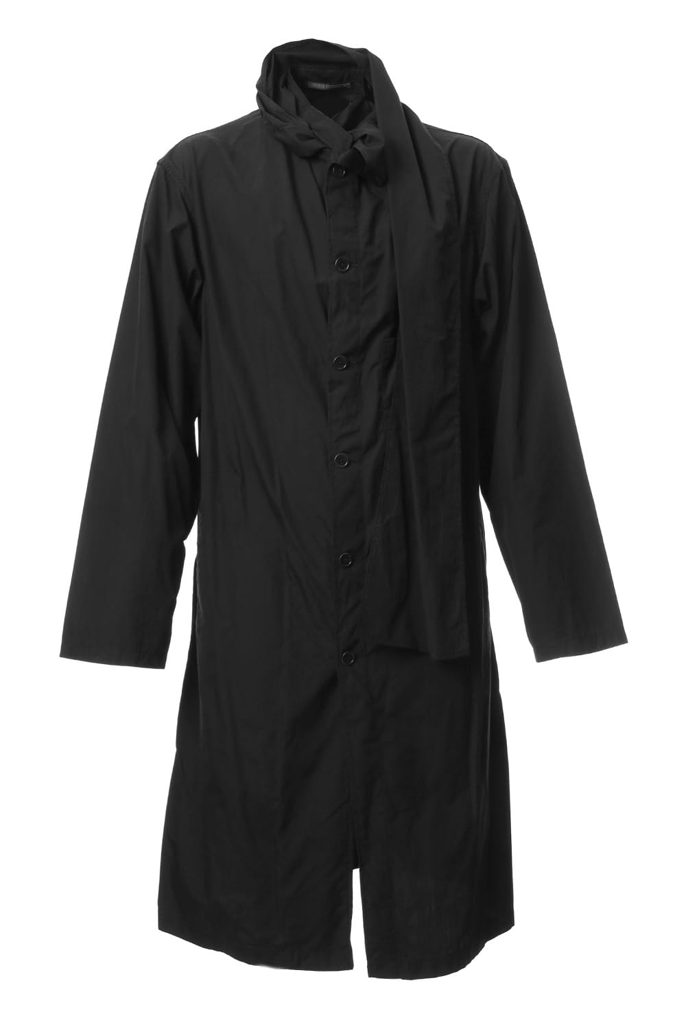 Long shirt coat featuring a design with the left collar part extended like a scarf. There is a hole on the left collar that can open and close with a zip so that you can pass through the scarf parts. As the fabric is familiar cotton broad, it is an item you can enjoy with a wide range of styles and regardless of seasons as you can wear it as an inner for winter or a light outer for the spring.