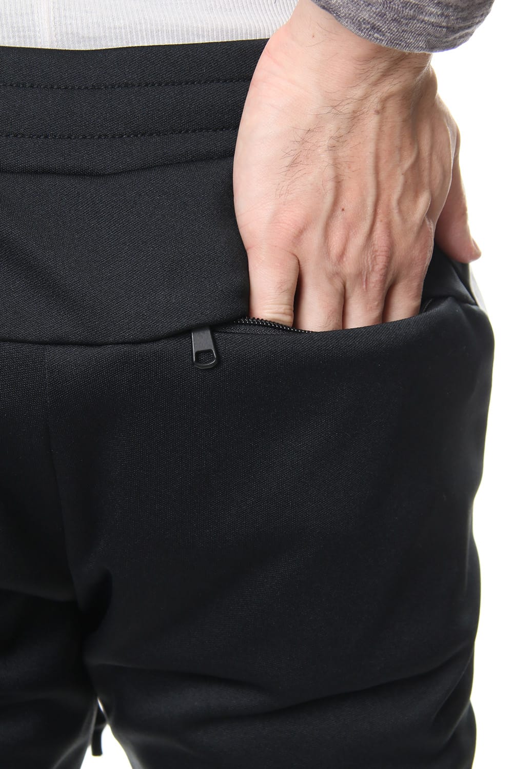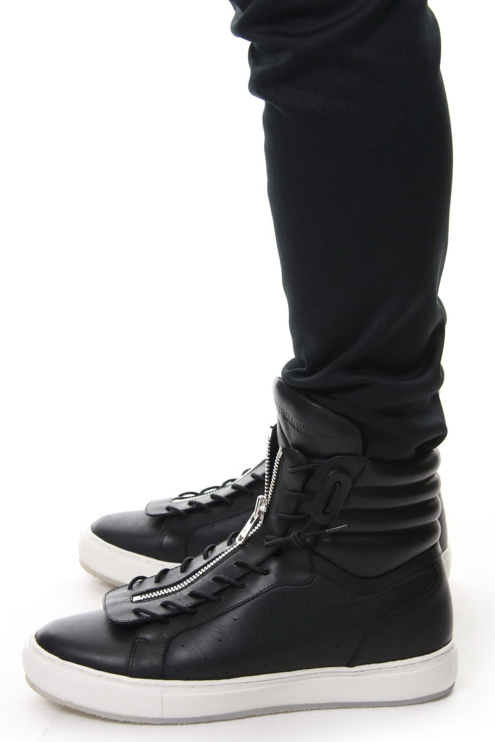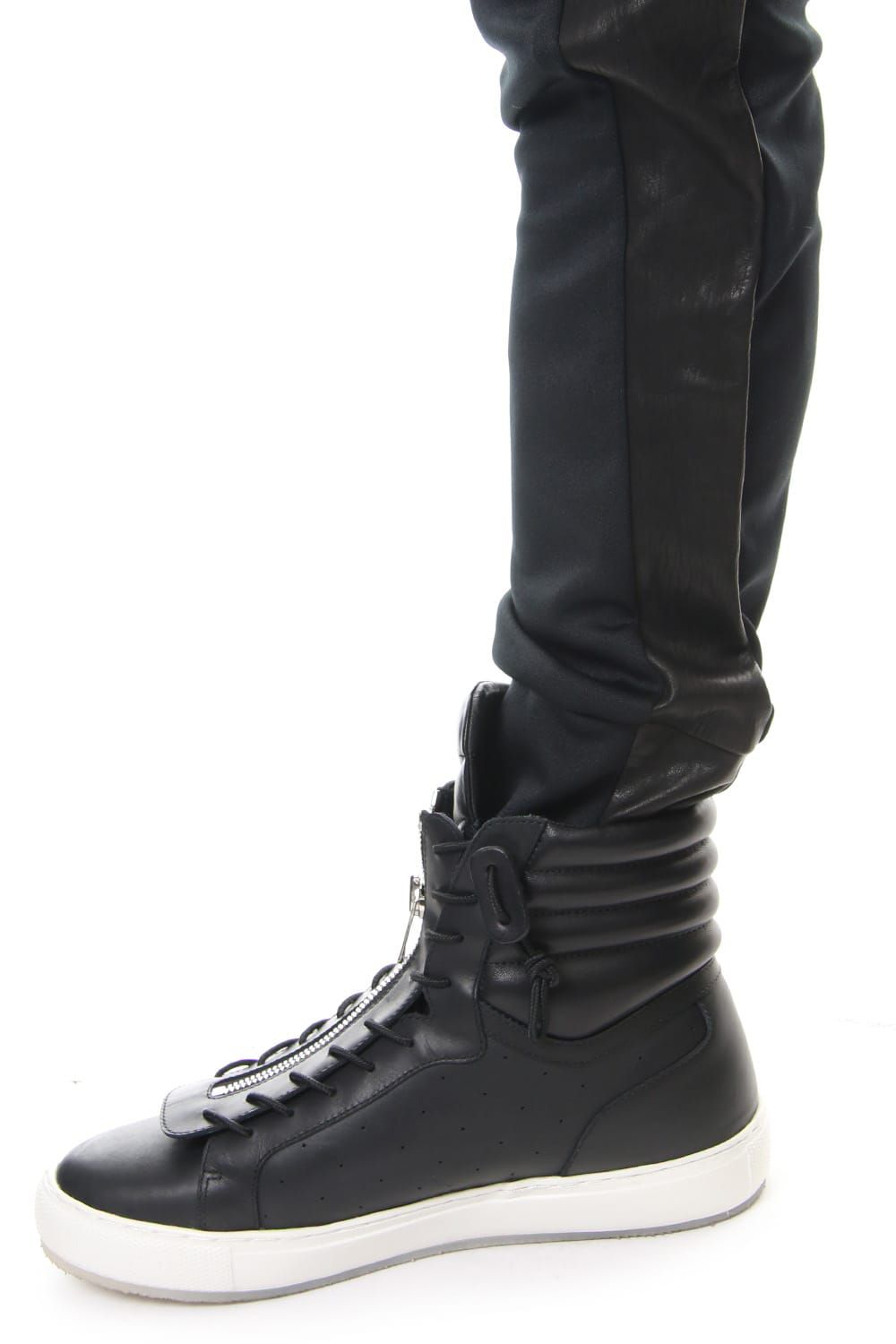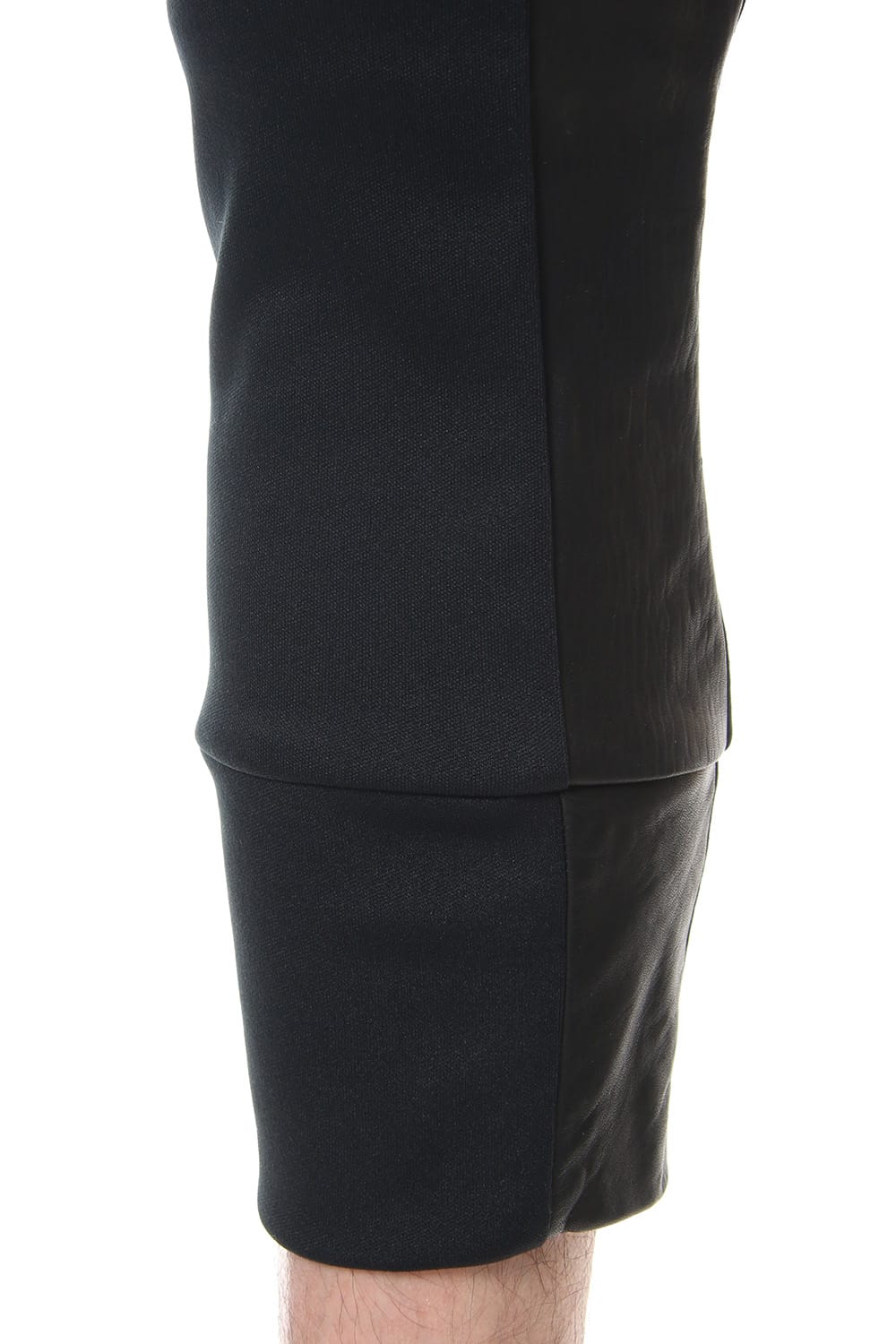 17 2ndで登場したバイカラーパンツ。今回は、レザーとトリプルスムースを使用したジャージのコンビで復活。