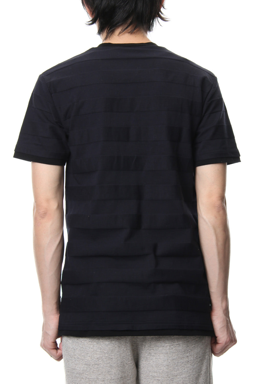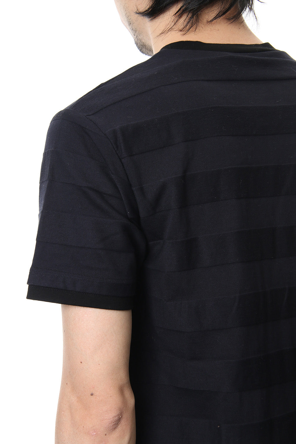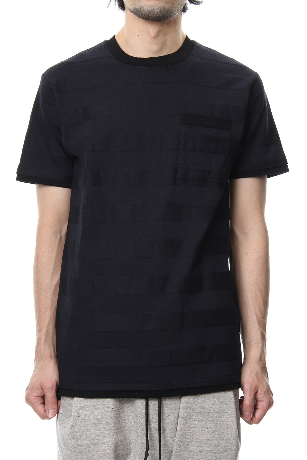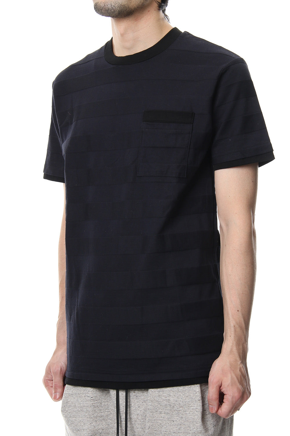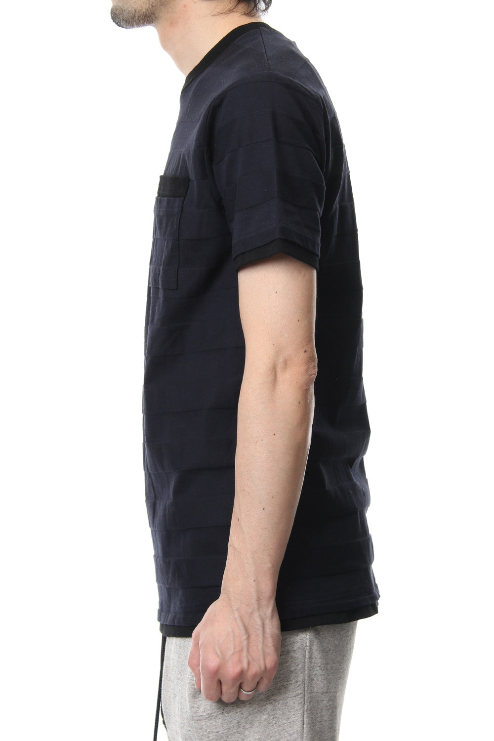 立体ボーダーのポケT。稀少な編み機によって凹凸をつけた立体的ボーダー生地です。