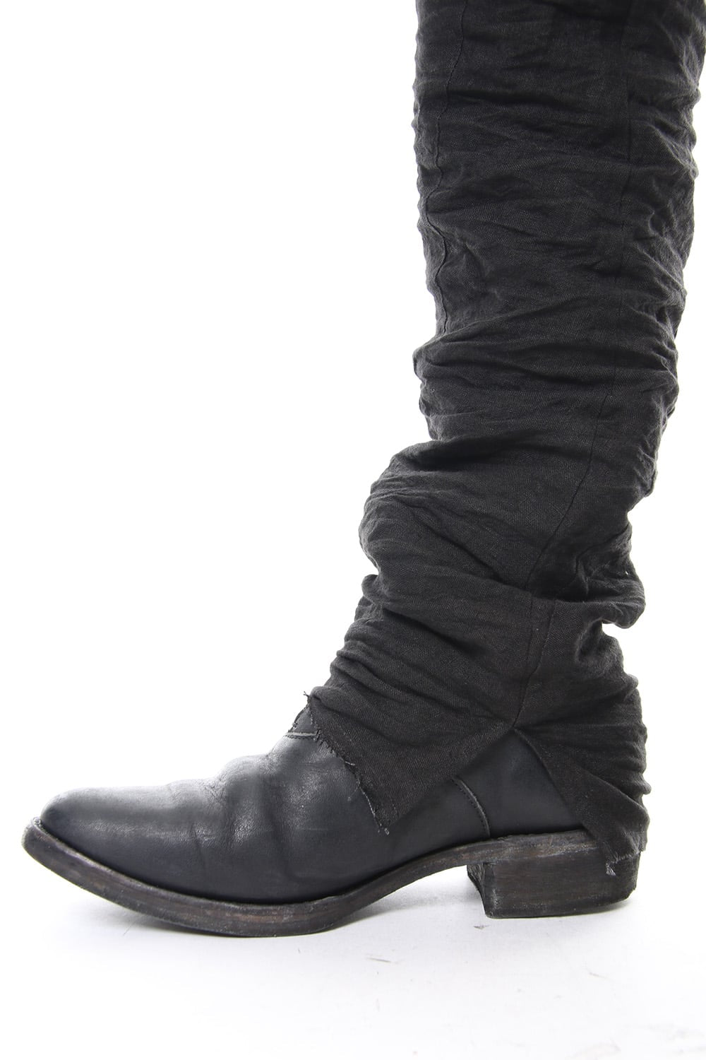 Rough leather × linen drop-crotch slim pants - ST107-0029S