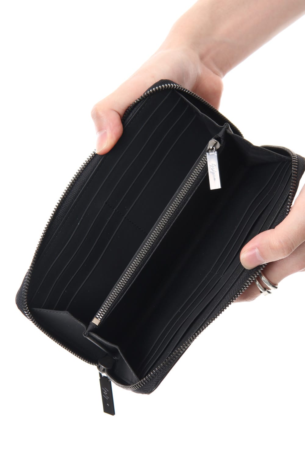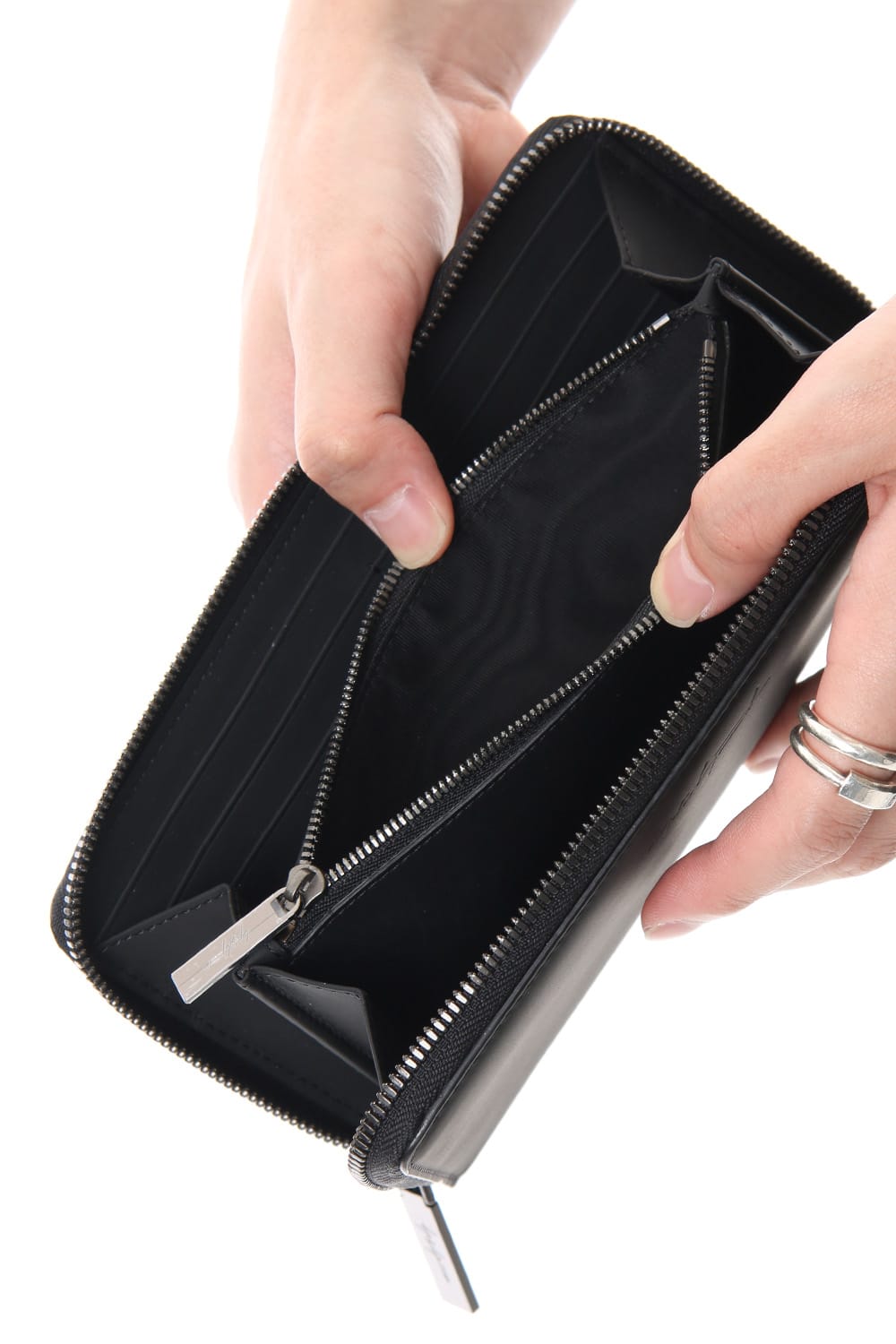 Round fastener wallet with a very elegant matte texture. The shape is relatively simple and the storage space expands like a fan when the zipper is opened. It has one coin pocket, 2 storage space for bill and card pocket that can store a total of 12 pieces, 6 on the right and 4 on the left.
