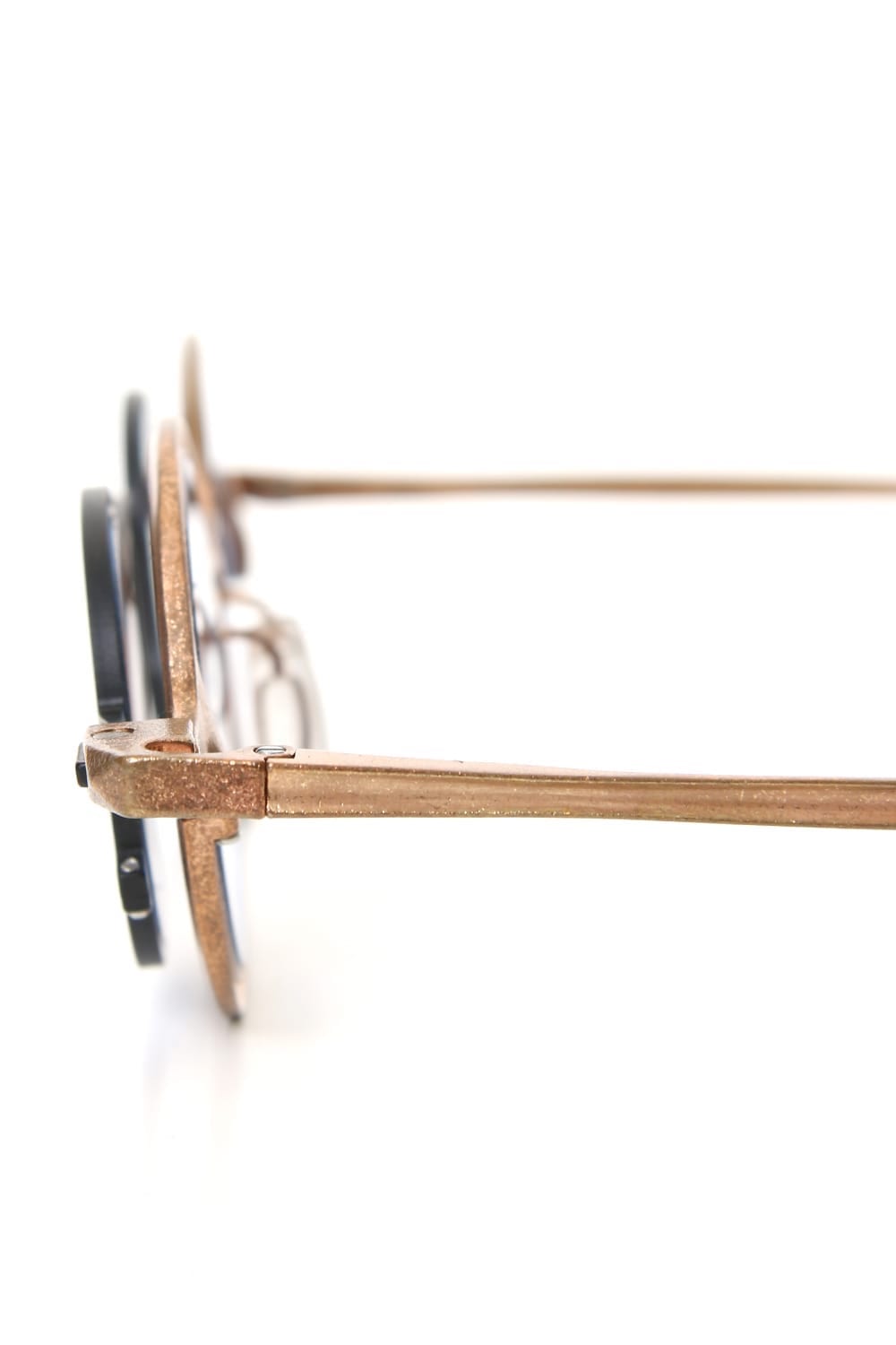 Collaboration eyewear with high end eyewear brand RIGARDS which is a representative design of the buffalo horn frame. This frame is made of metal and the front clip can be removed with magnets. It is possible to attach a chain that is developed as a separate part of the specs.