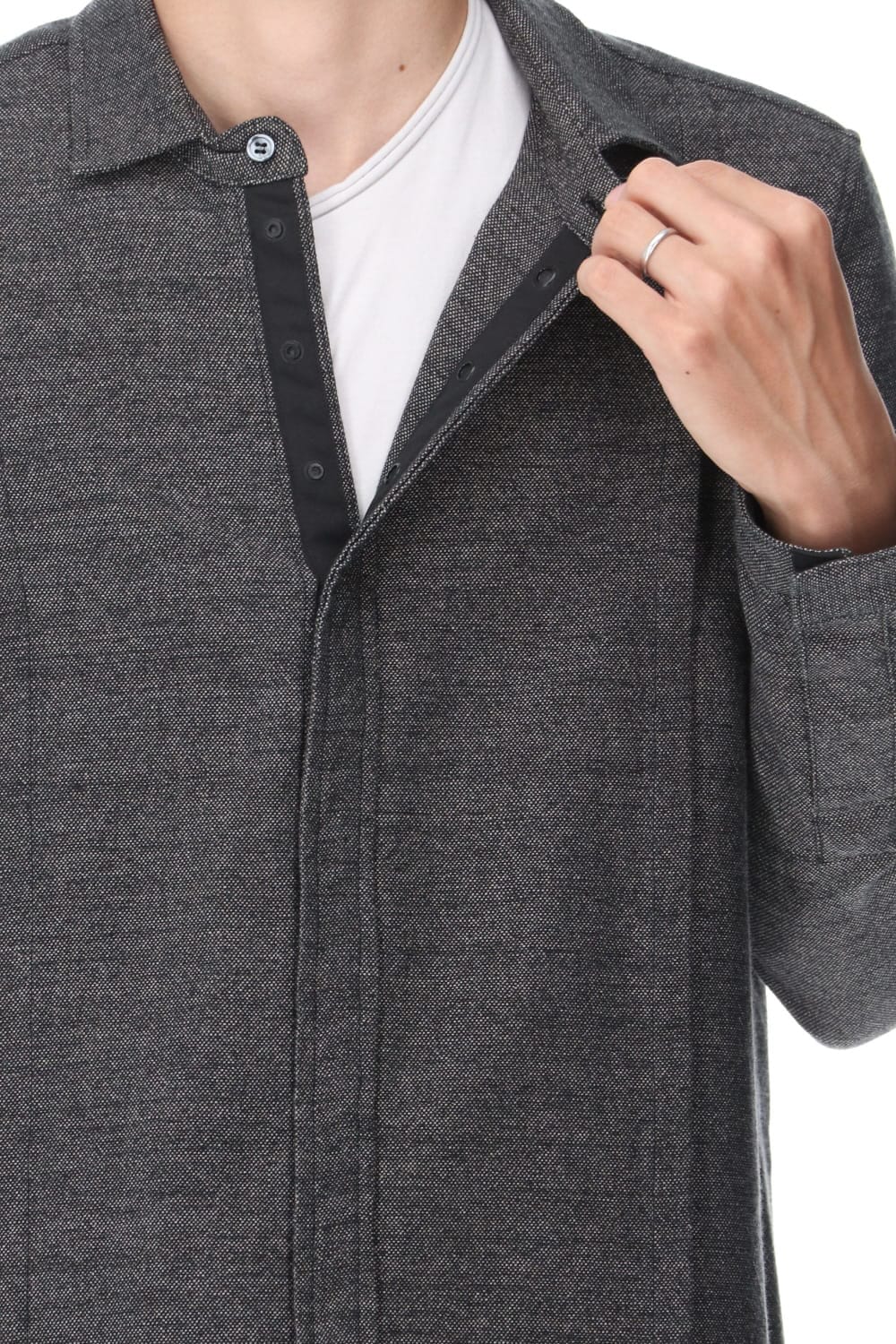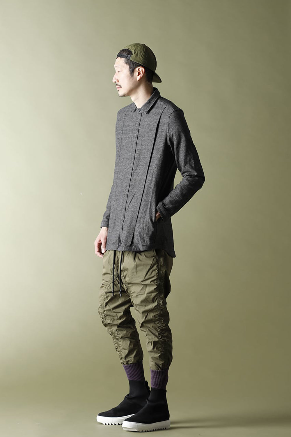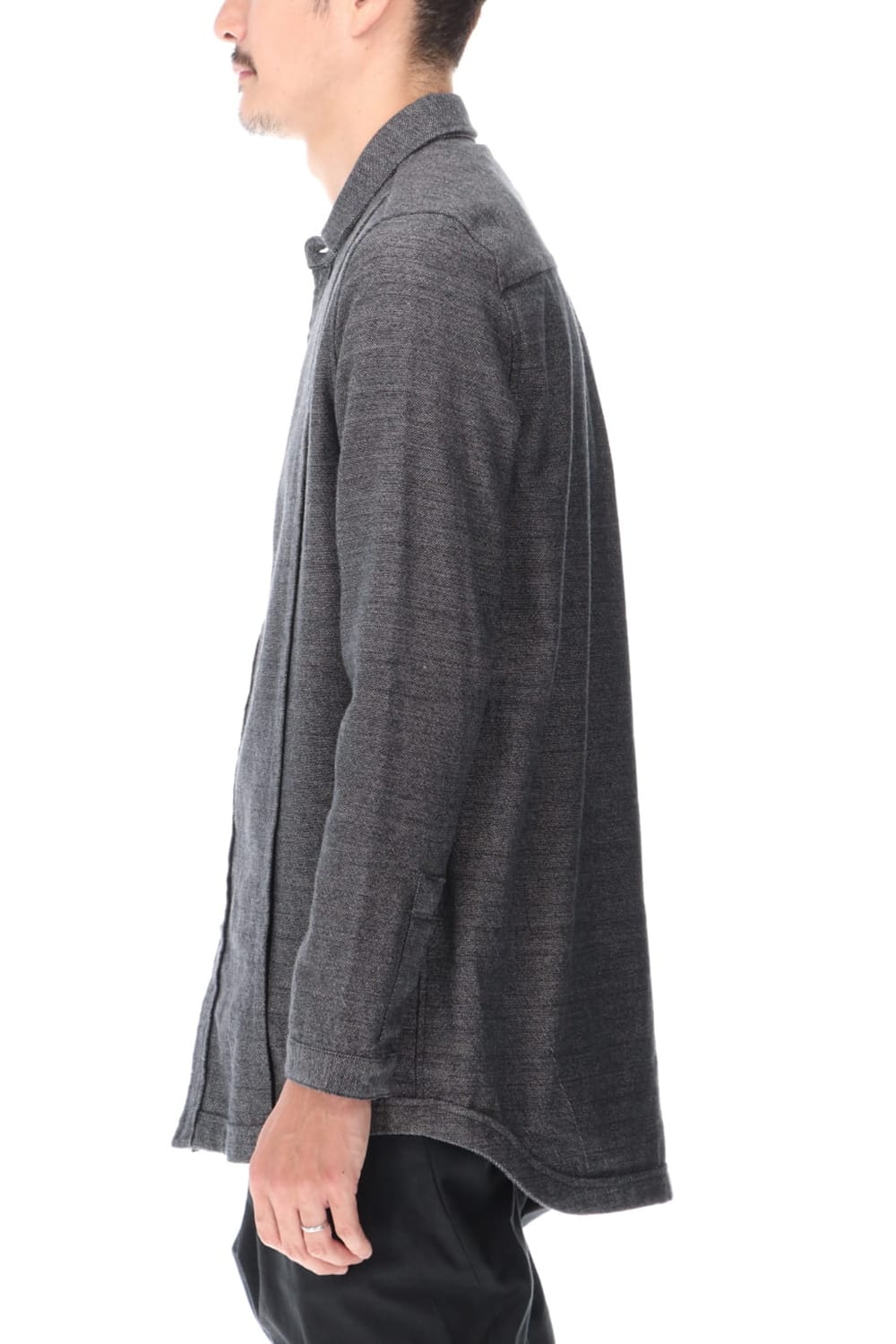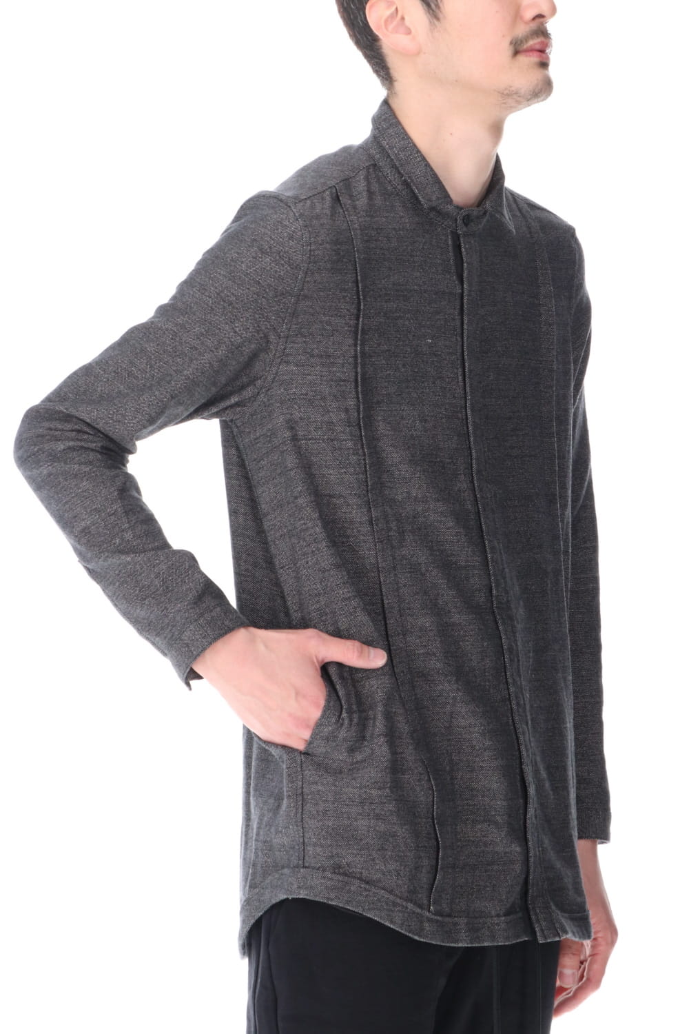 This item is made of yarn-dyed fabric from Mitsuke area in Niigata prefecture. It is characterized by the random appearance of the speck thread and the soft texture of the ox-woven fabric. With a suggestion like a shirt blouson, the front and cuffs have been changed to tape snapper specifications and in addition, side pockets have been added.
