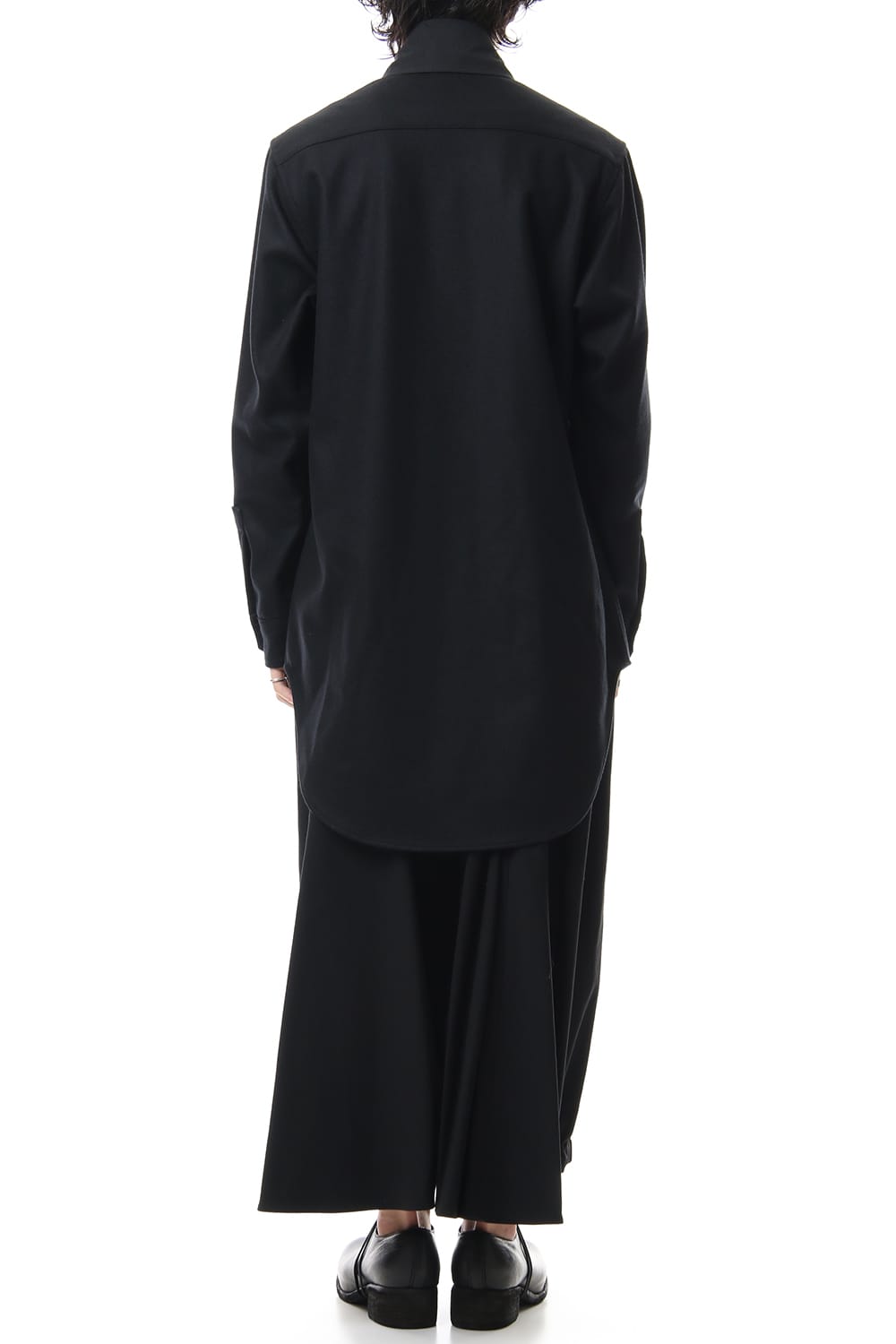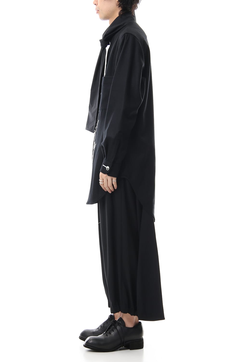 Based on the illustration of Yuuka Asakura, the scarf neck shirt was worn during the 1st LOOK in the 19-20 AW collection, the design was arranged with embroidery. This item is made of wool nylon with the warmth of autumn and winter, it is excellent as an inner layer in terms of heat retention. The scarf part around the neck has just the right volume to make it look like a tie, it's an item with enough impact even when worn alone.