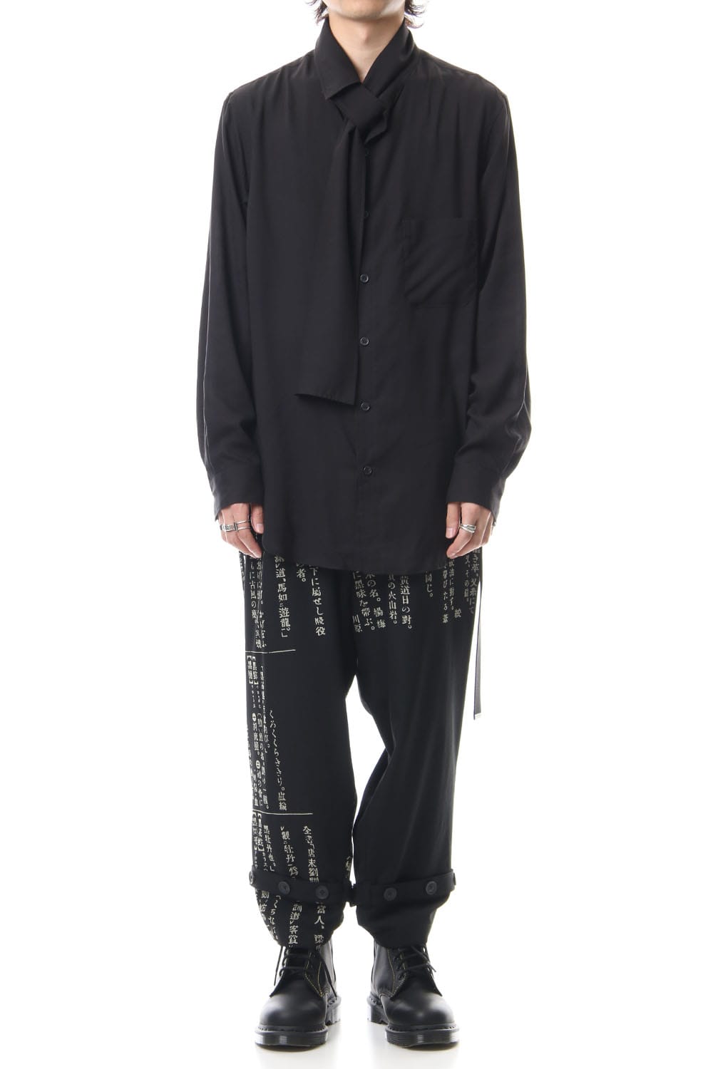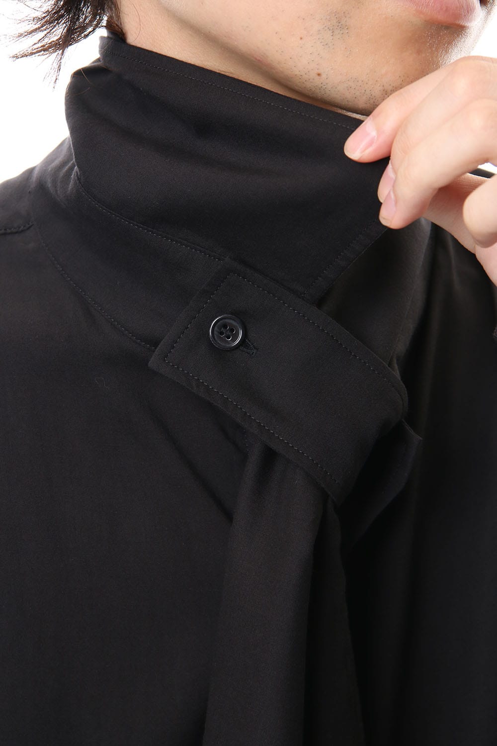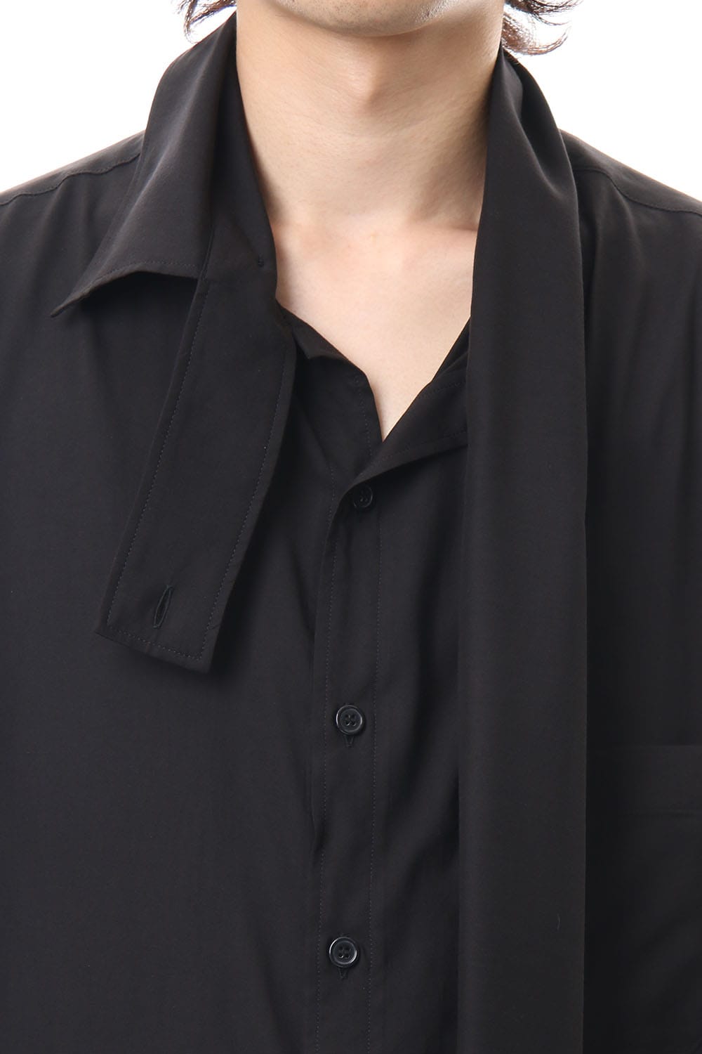 A deformed design shirt worn during the runway for LOOK 26 that completes the neck like a tie by passing the scarf through the loop.