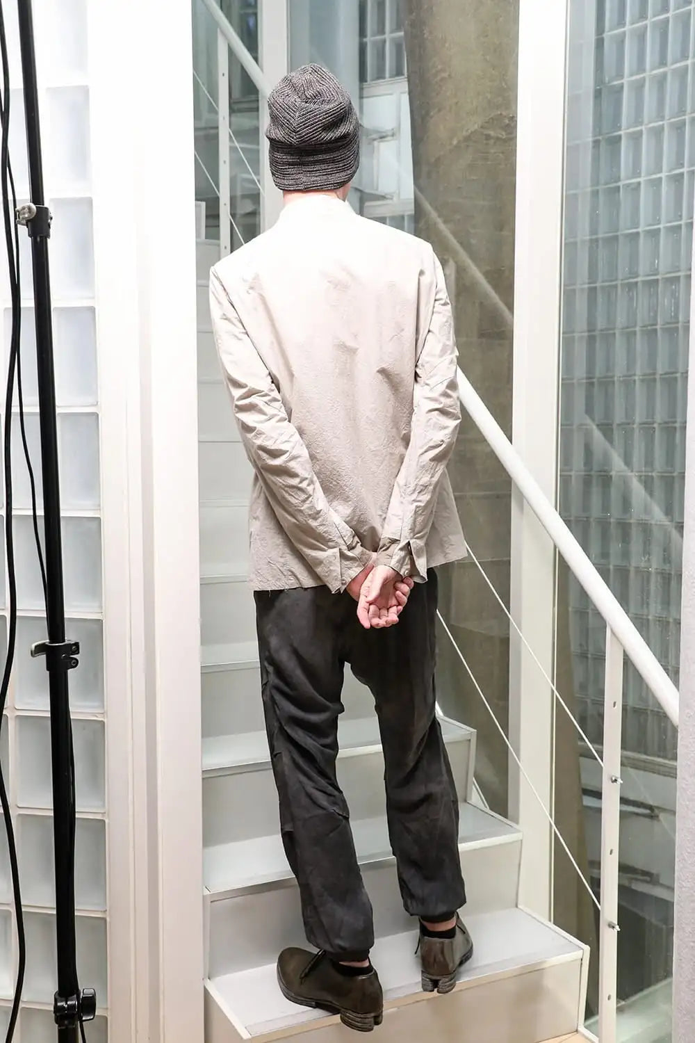 The fabric used for the outer layer is a blend of cotton and hemp, produced in Shizuoka, a region known for shirt fabric production in Japan.