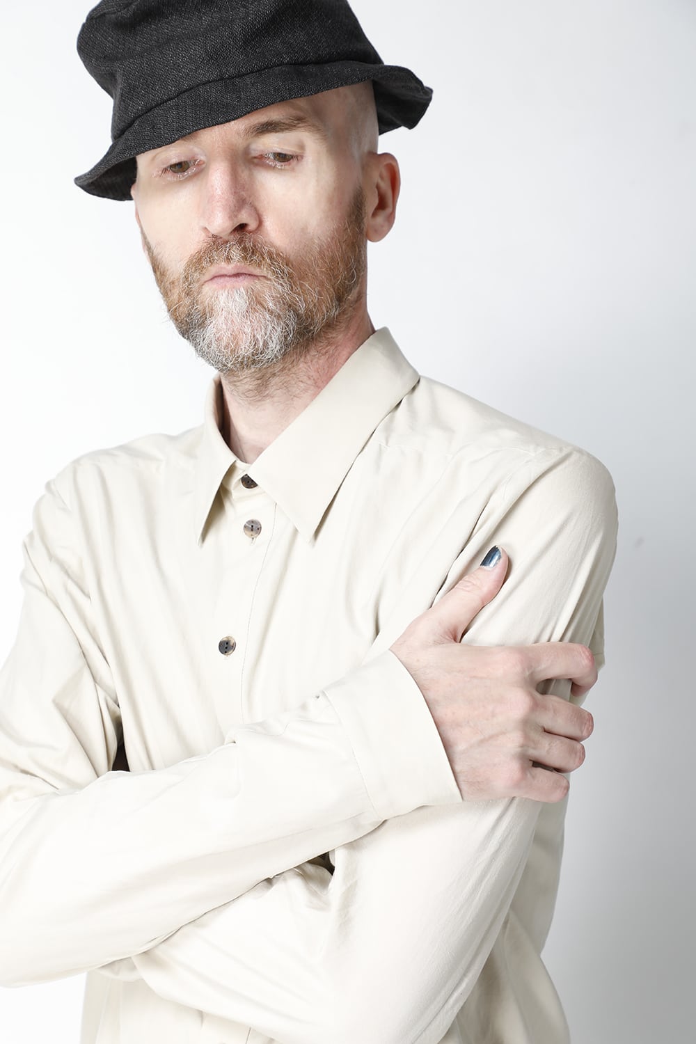 Shirt silk/cotton broad sandblast finish Light Beige