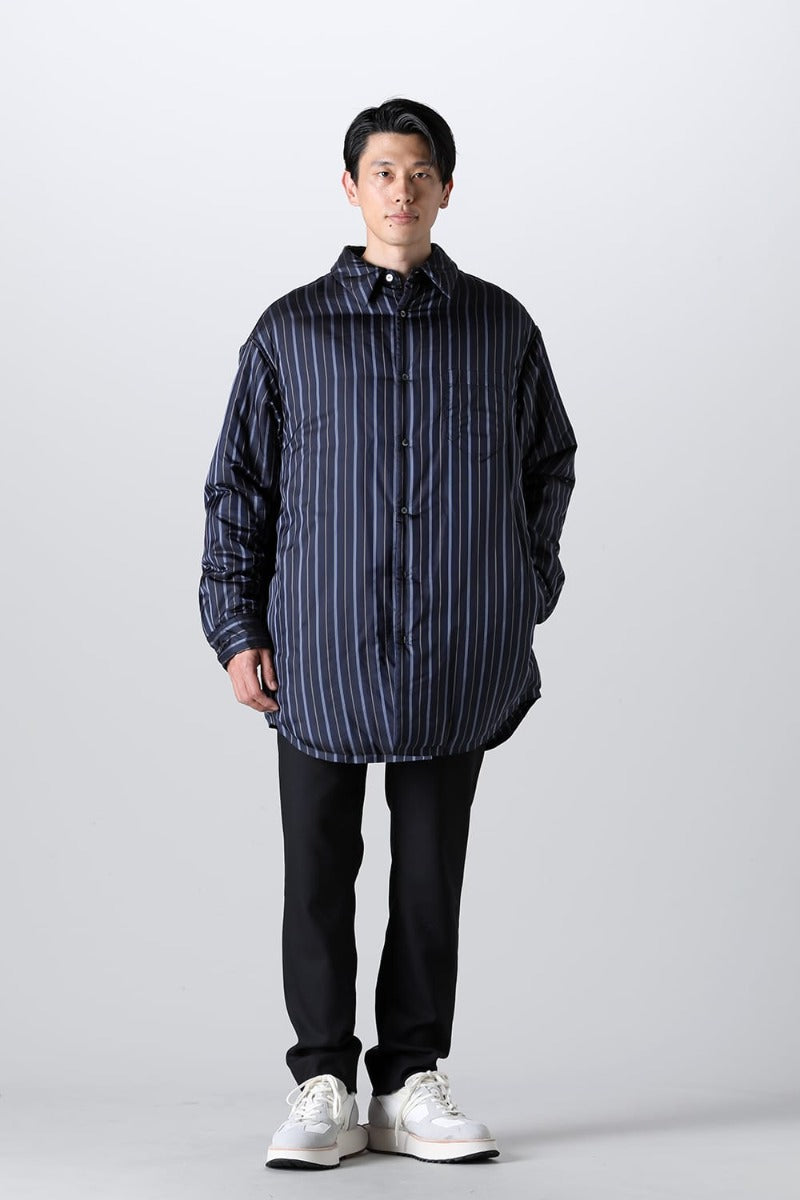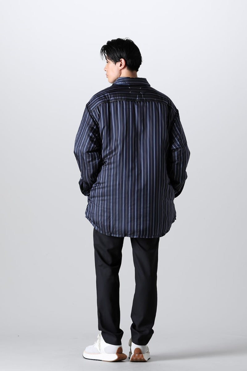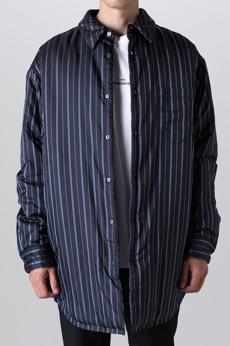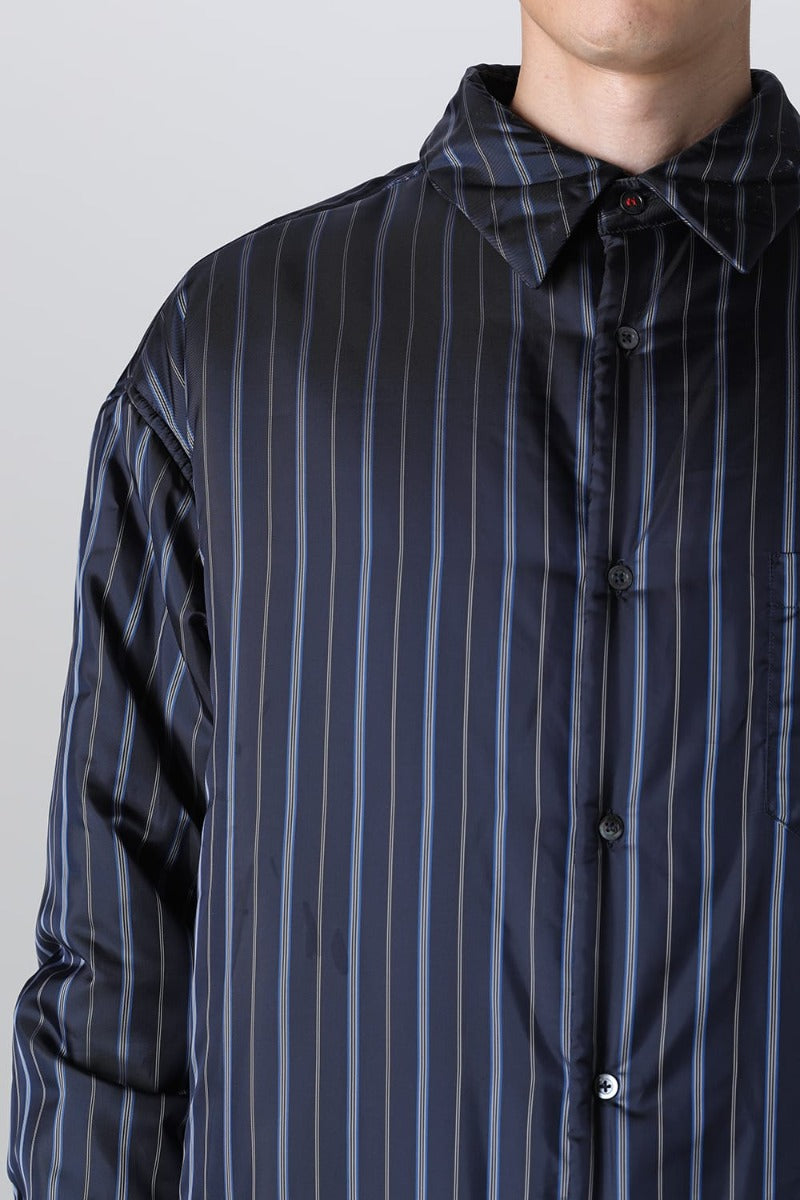 ・Lightweight padded shirt made with a striped fabric of cupro twill and polyester filling.
