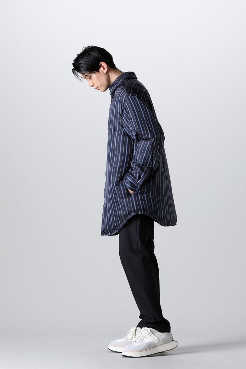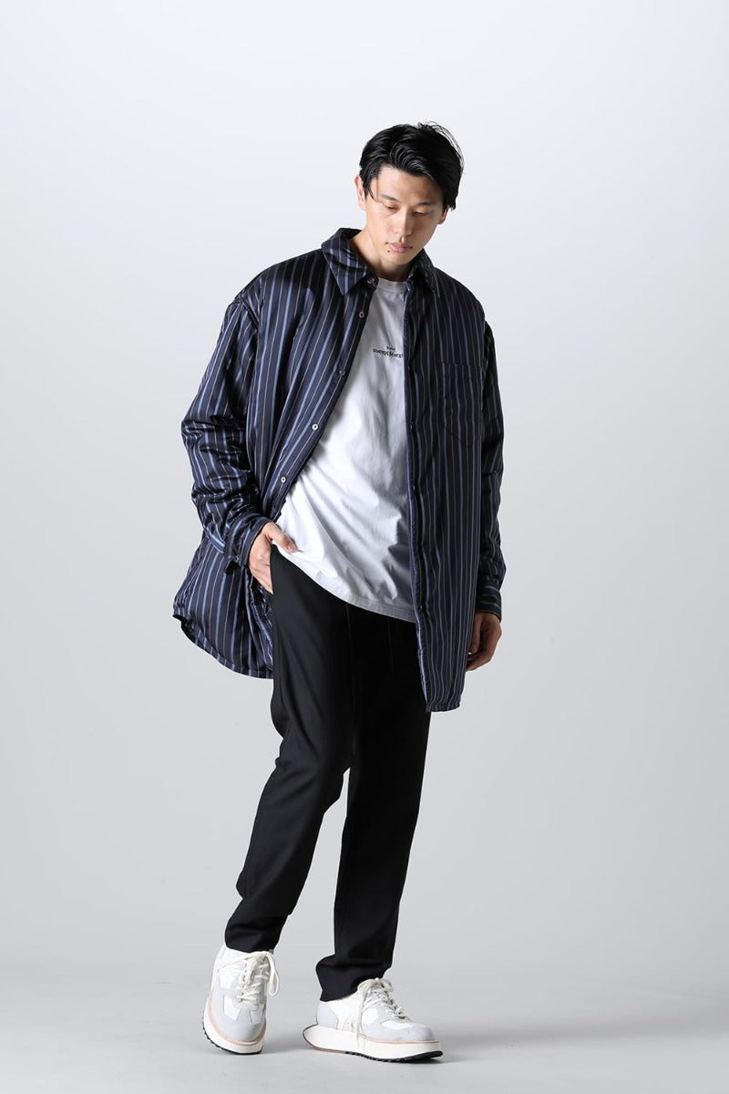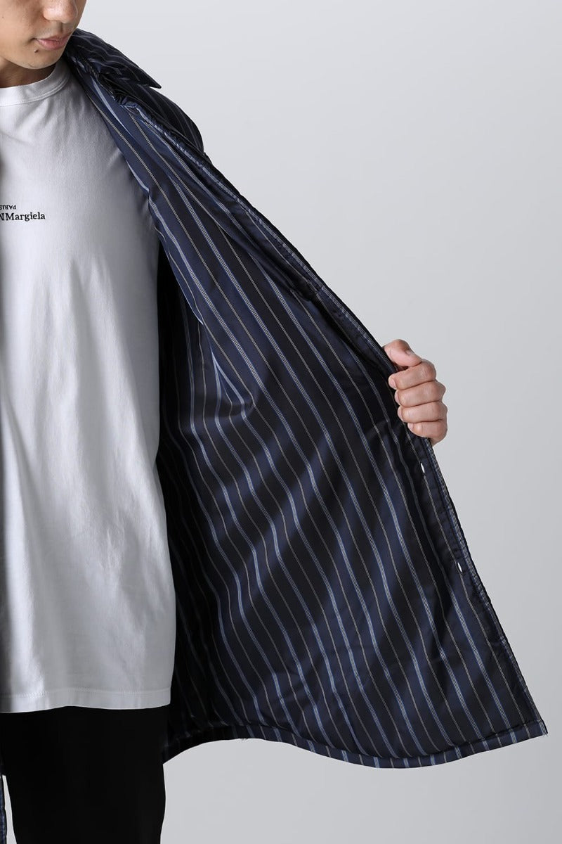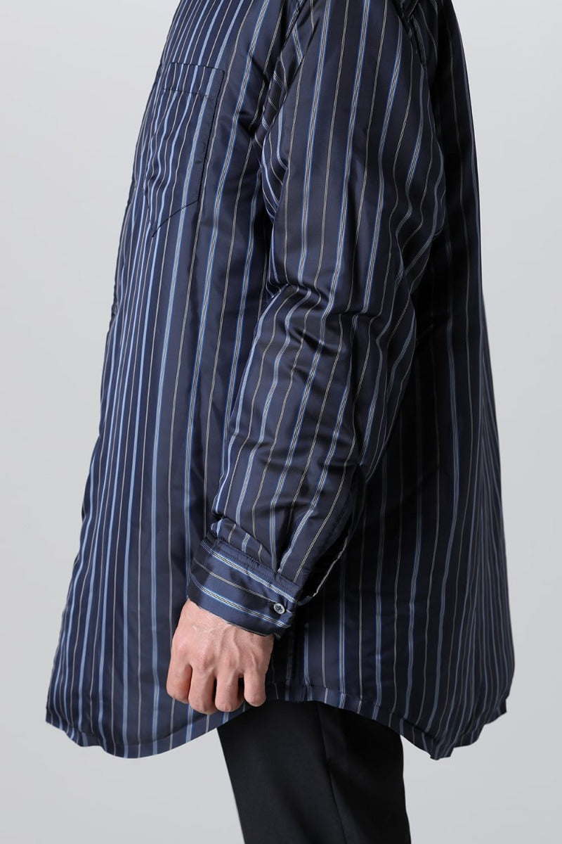 ・Lightweight padded shirt made with a striped fabric of cupro twill and polyester filling.