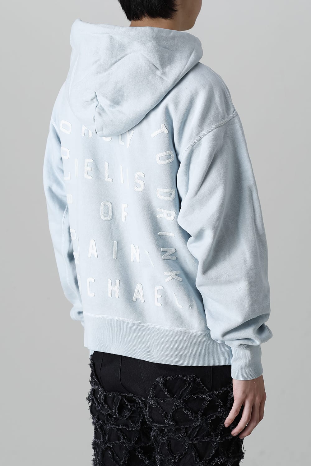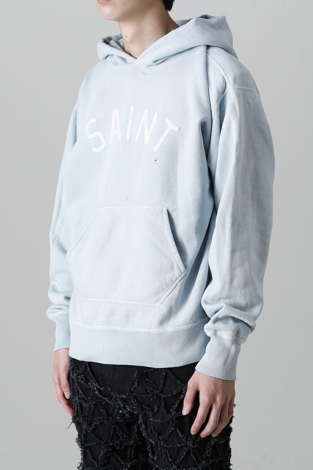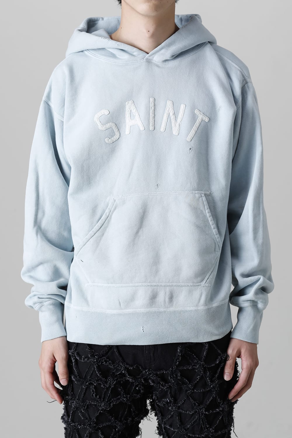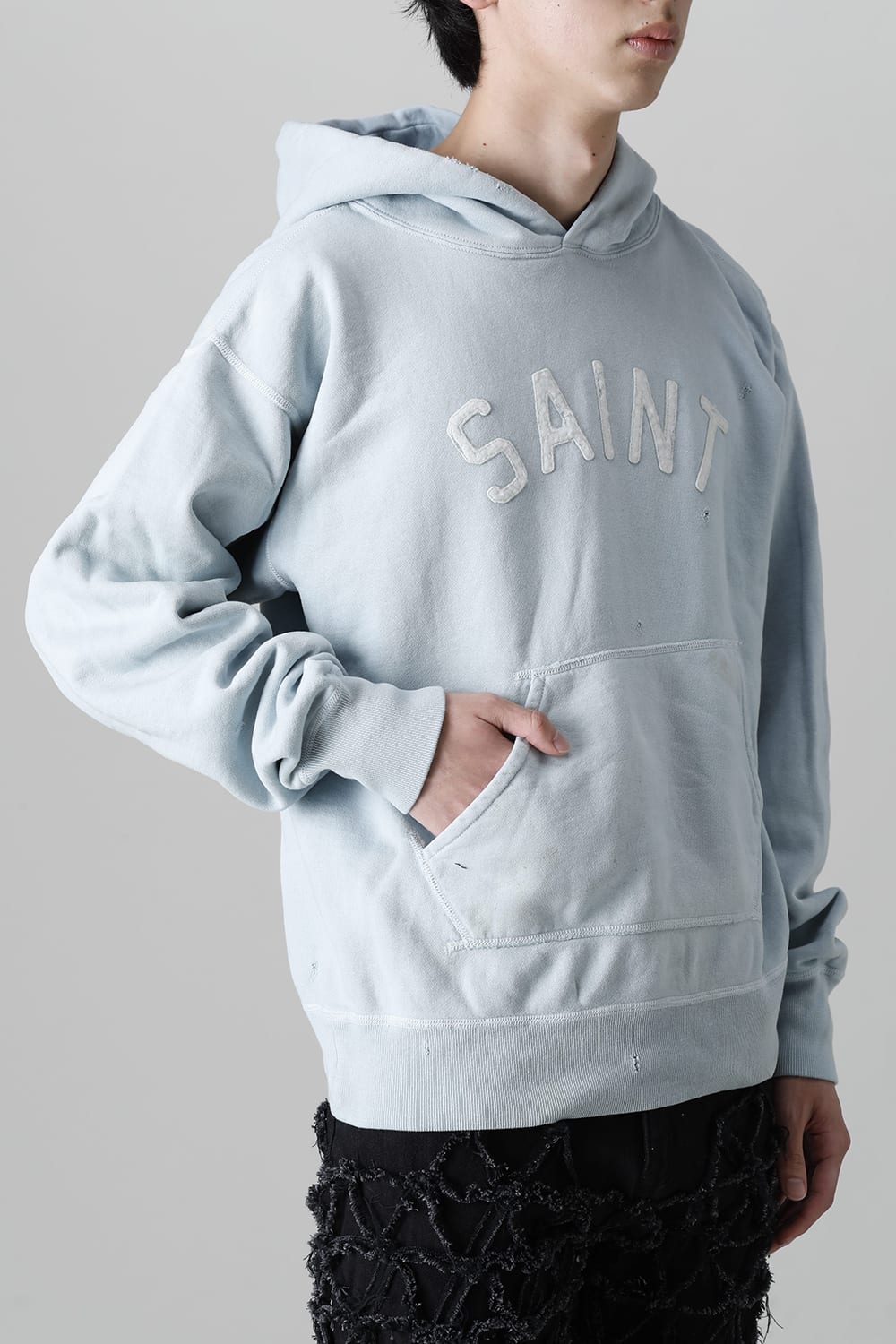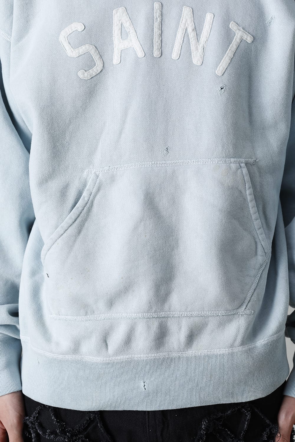 大受欢迎的HOLY RELICS系列,以前面的“SAINT”后面的“HOLY RELICS OF SAINT MICHAEL”、“NO BLOOD LEFT TO DRINK”等文字,再现了在以前没有印花技术的时代里,将毛毡面料裁剪缝上装饰的细节设计。