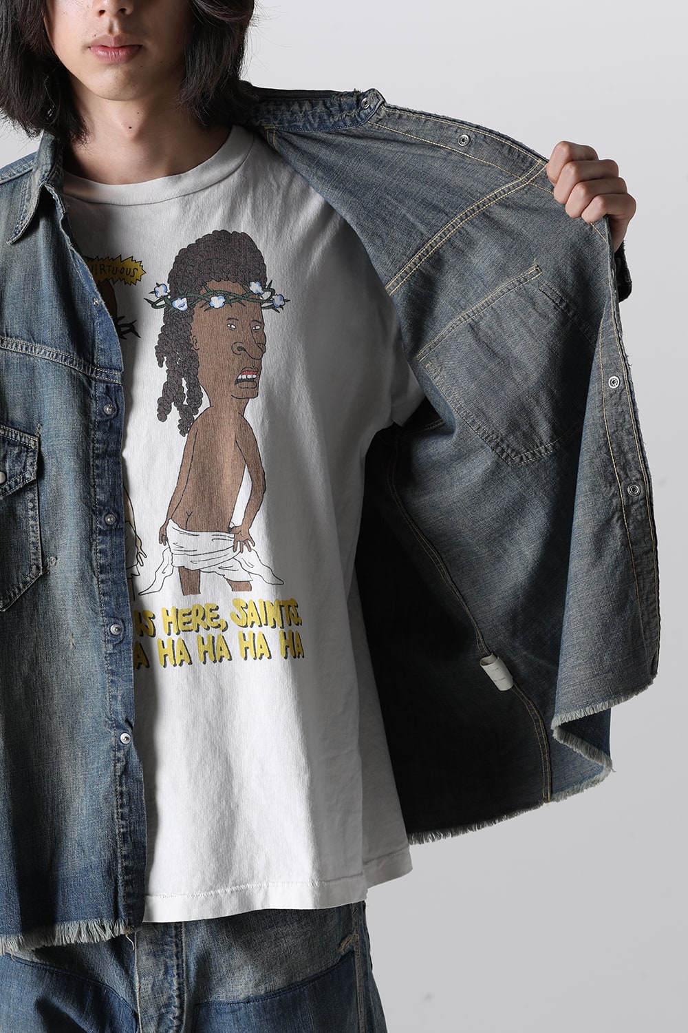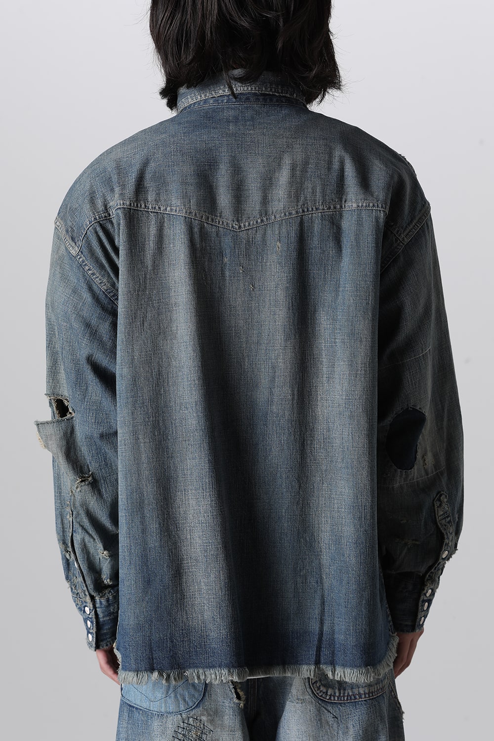 以西部衬衫为基础,到处都进行了磨损处理,整体采用了按扣。