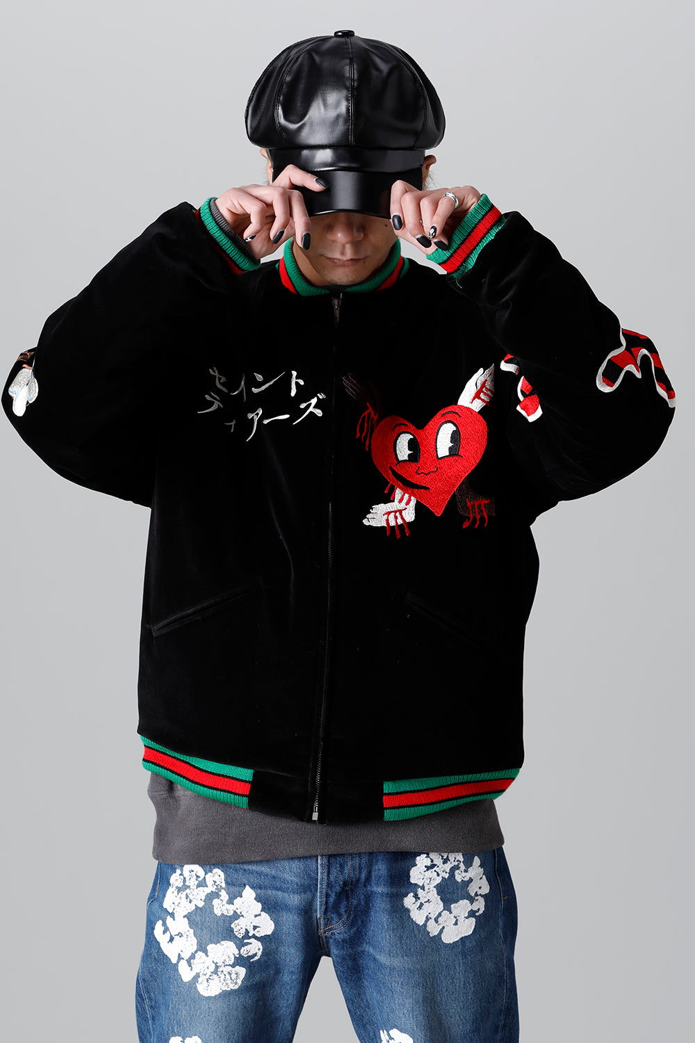 The black main design features "Saint Tears" embroidered in katakana and heart-shaped pop characters that catch the eye.