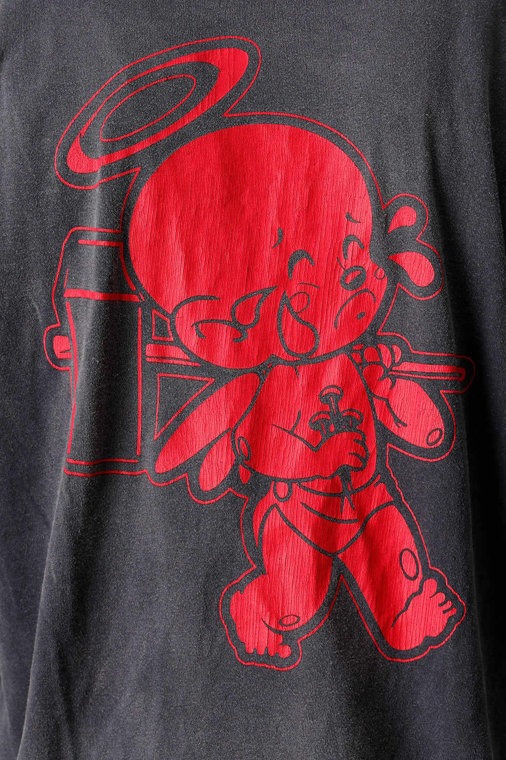 印花在穿着或洗涤时面料表面的起毛和印花部分的裂纹会自然产生,可以享受到更加复古的质感。