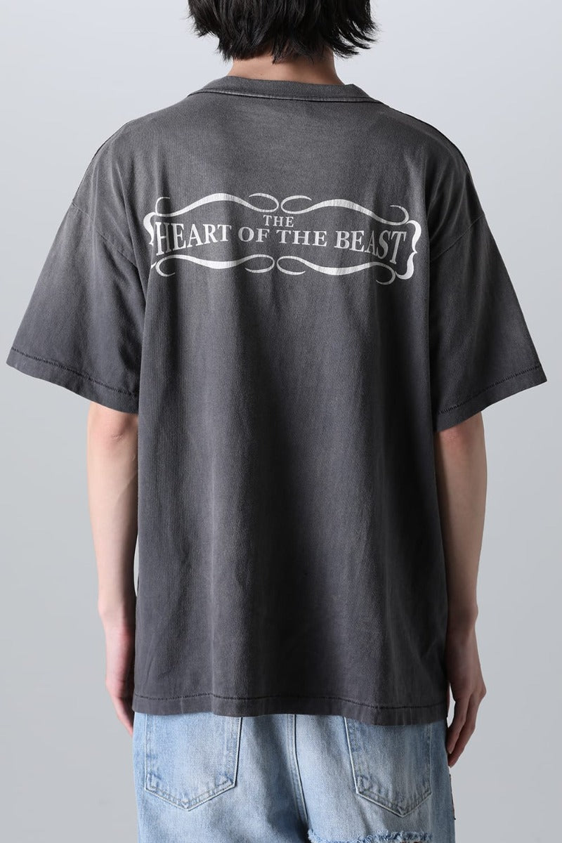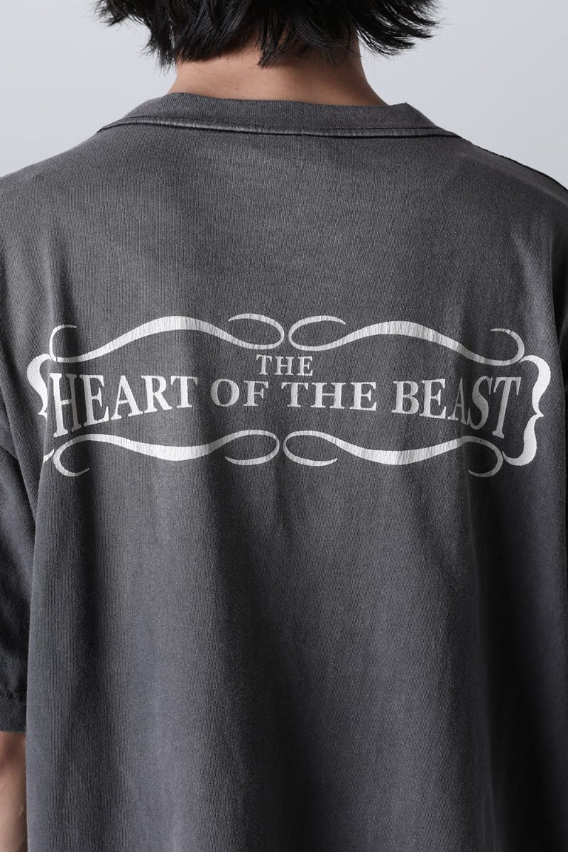 背部有着与前面的印花相连的“野兽之心-THE HEART OF THE BEAST”的字体印花。