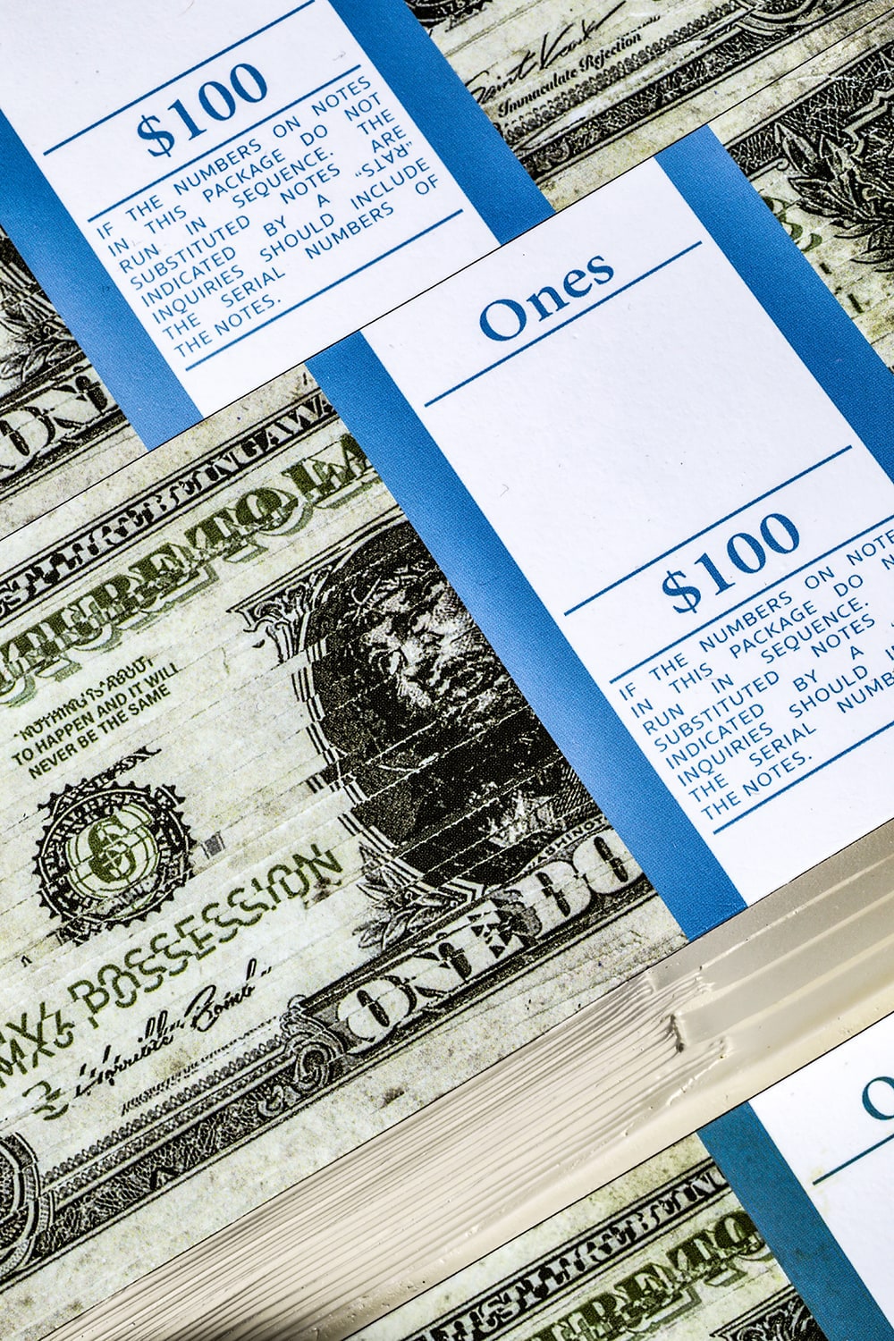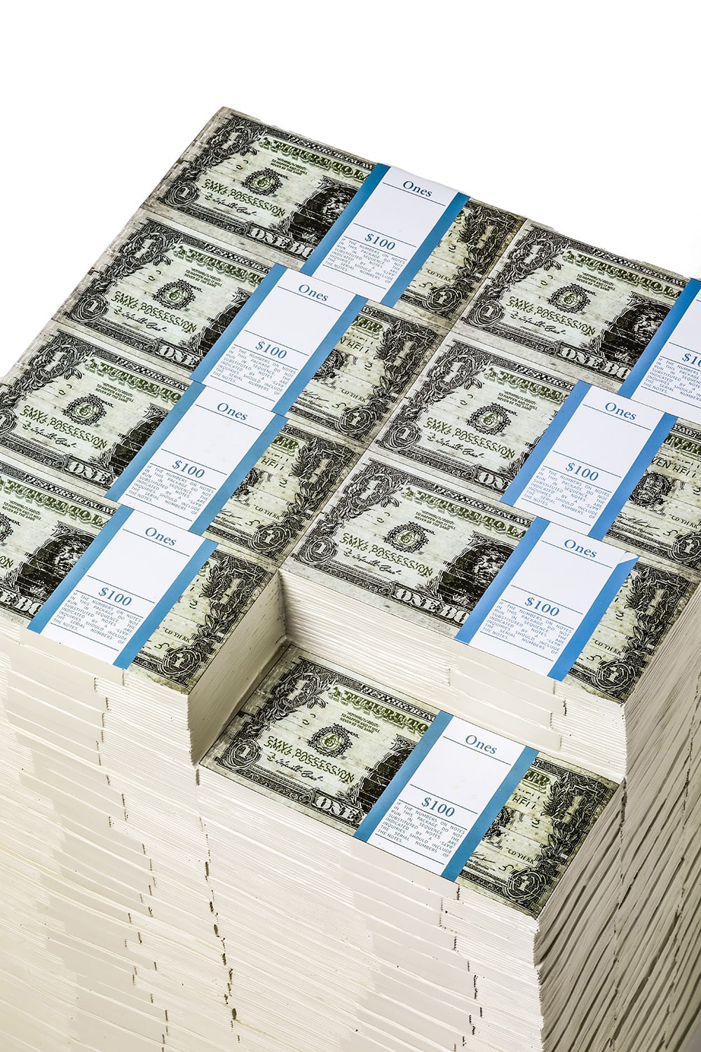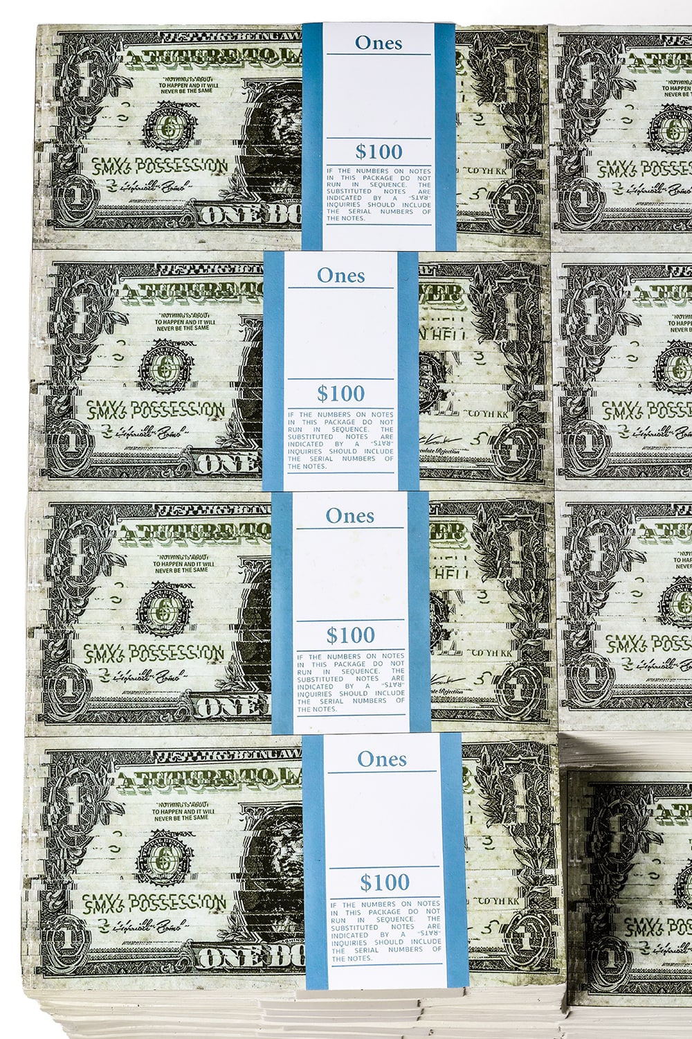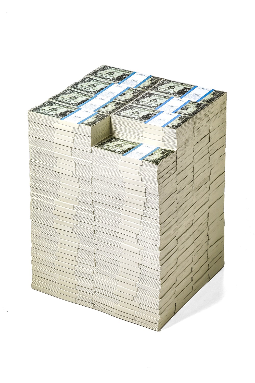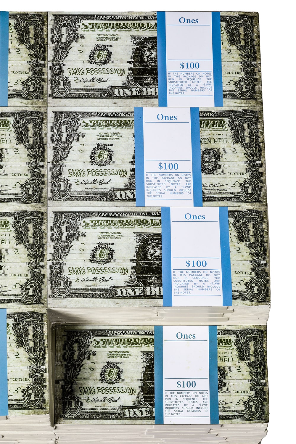 印有钞票图案的凳子。内侧部分印有SAINT Mxxxxxx和河村康辅的logo印花。