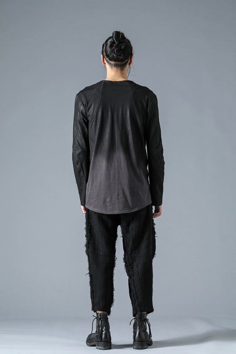 ・Soft touch 30/- jersey with gradation coating on the product. The three-dimensional, intricately patterned seam lines are emphasized by the color-coded overlock stitching.