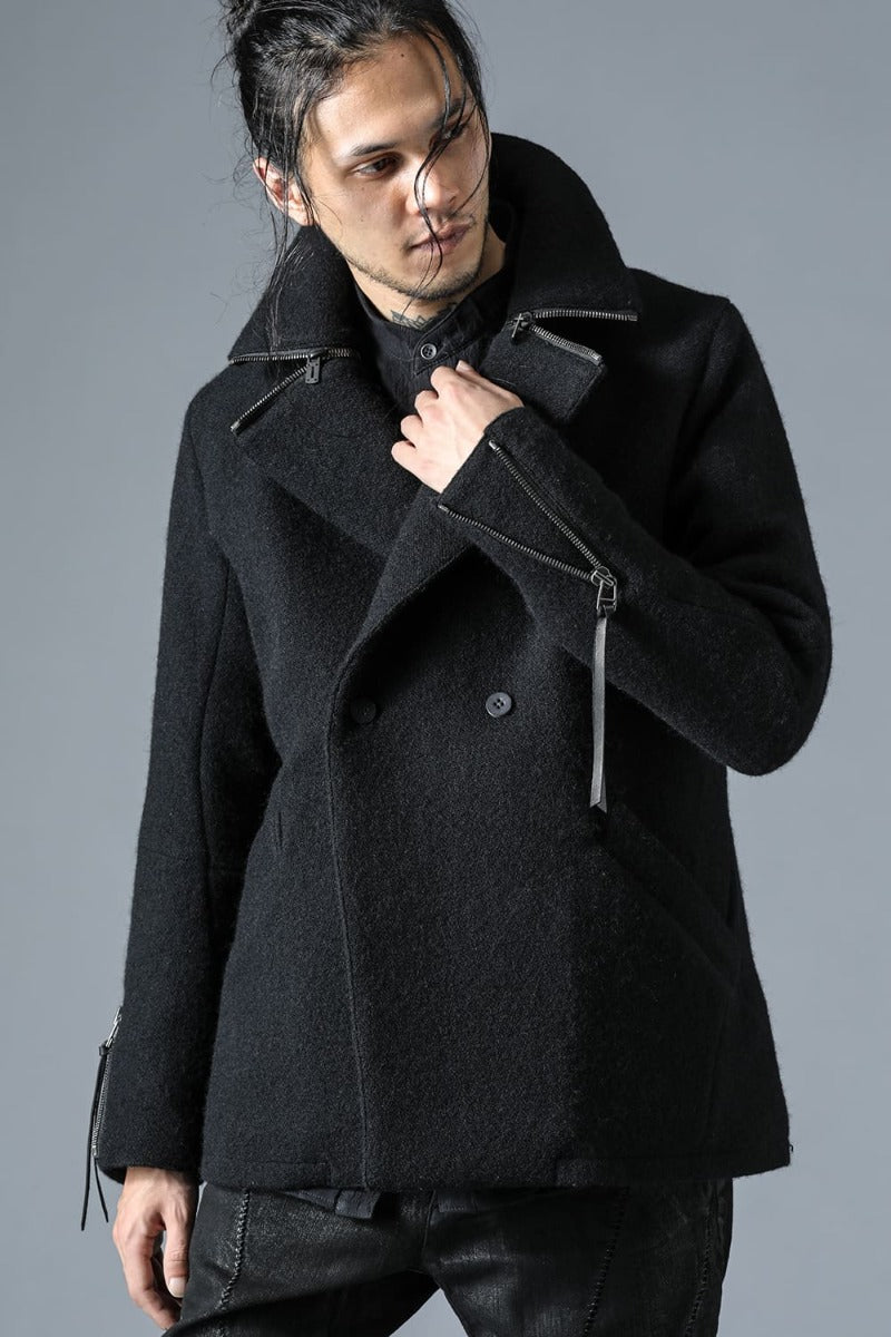 ・It uses tweed fabric woven in Bishu, Aichi Prefecture, using virgin wool from England. This fabric is tweed, characterized by its outstanding warmth and lightness. The three-dimensional, intricate pattern is constructed in a relatively relaxed fit, but with a structured silhouette.