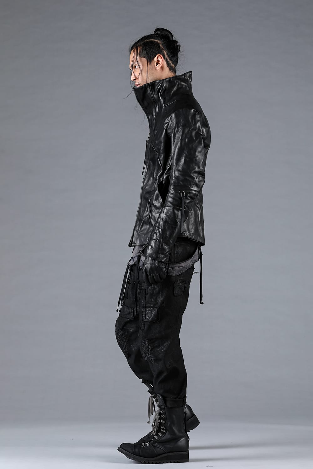 Horse Leather Glove attached Dual Zip High Neck Jacket Black