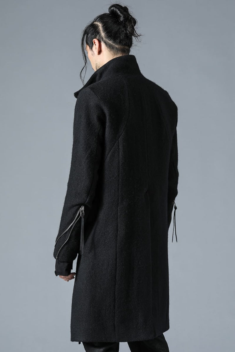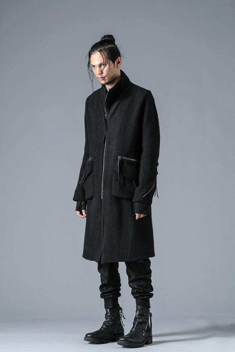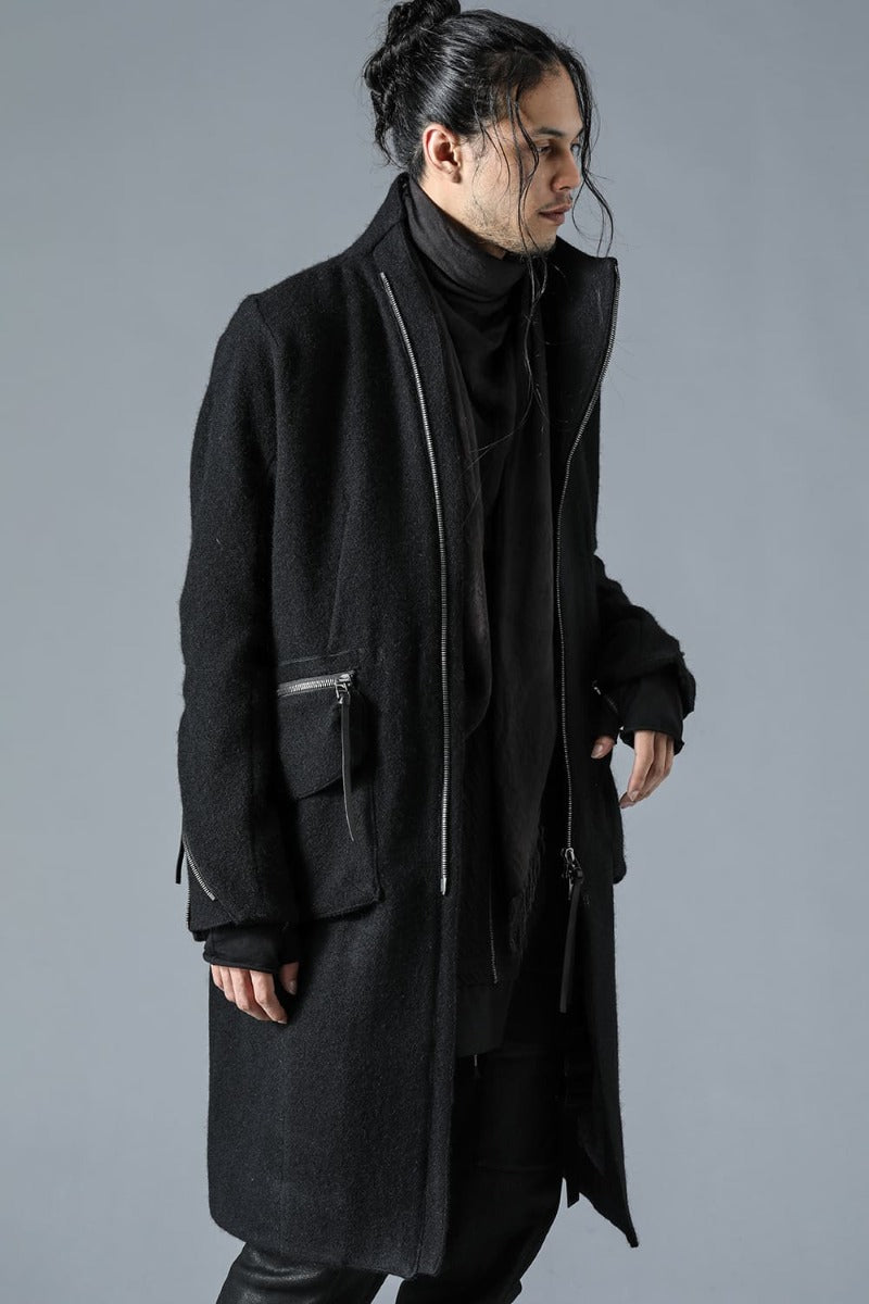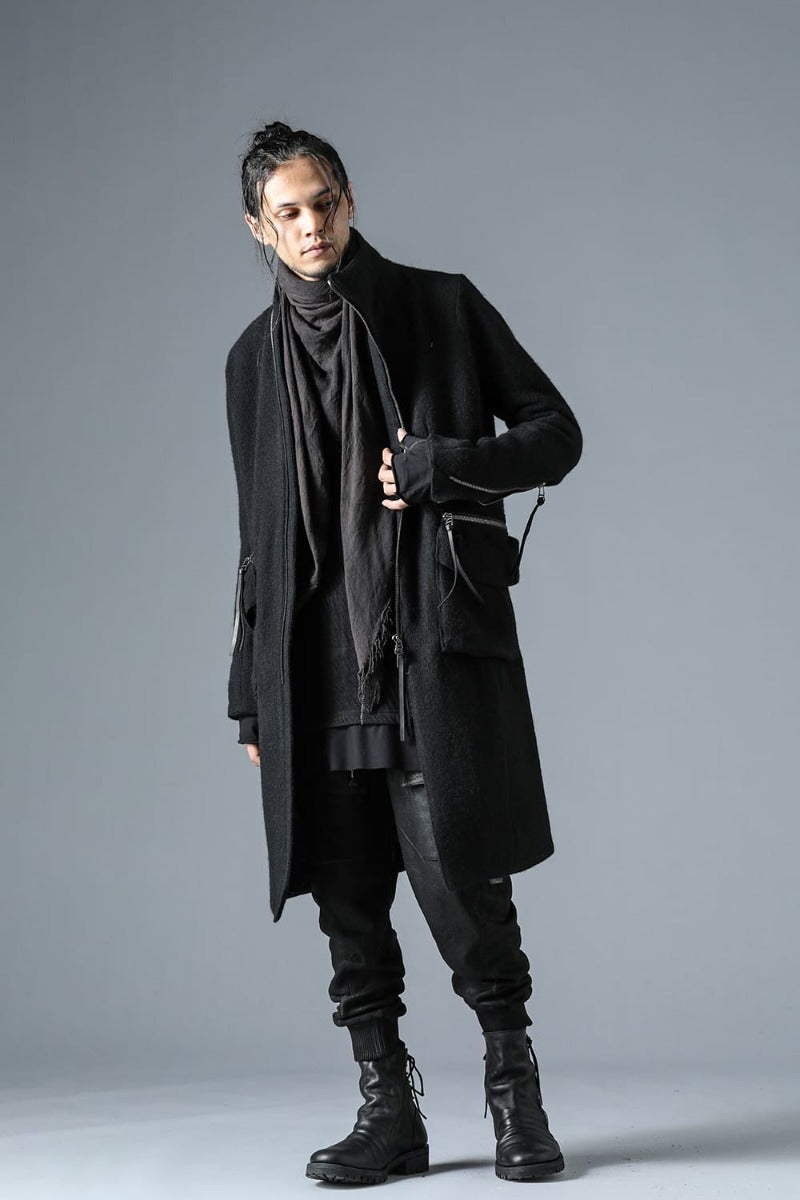 ・It uses tweed fabric woven in Bishu, Aichi Prefecture, using virgin wool from England. This fabric is characterized by its outstanding warmth and lightness. It is constructed with a three-dimensional, intricate pattern and has a relatively relaxed fit, but with a structured silhouette.