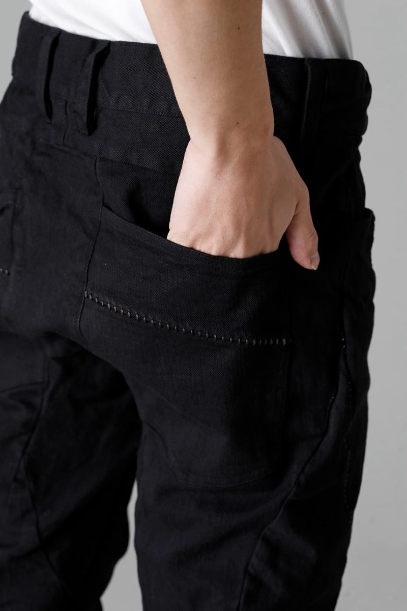 Hyper Stretch Cotton Denim Overlock Twist Curve Slim Trousers Black