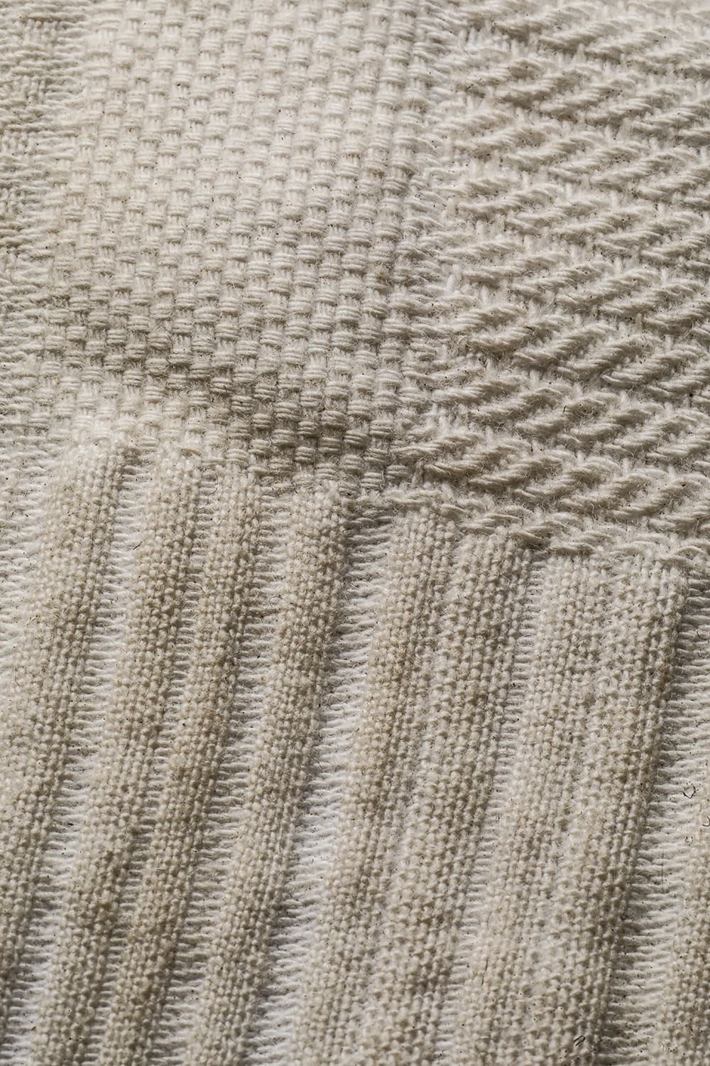 Jacquard weave fabric with overlapping patches of various weave patterns, cold-dyed in the finished product. (C/# BLACK is reaction dyed) with stretch.