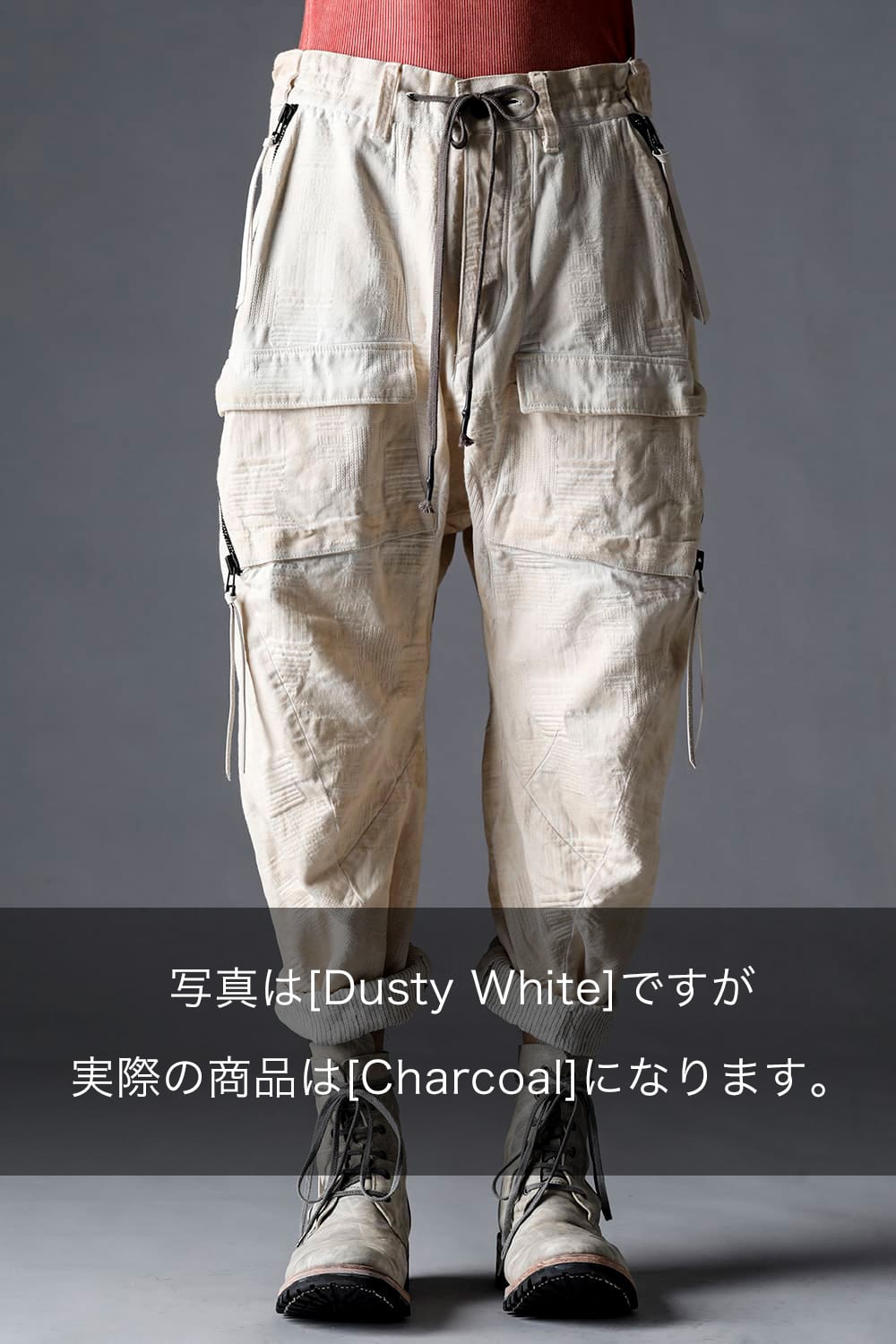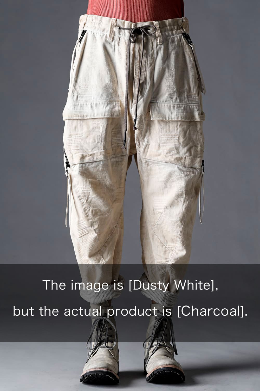 Patchwork Jacquard Stretch Cotton Bush Tapered Cropped Trousers Charcoal