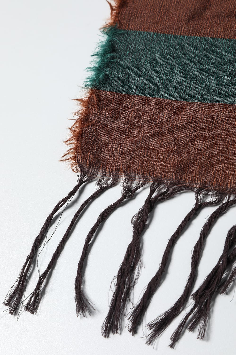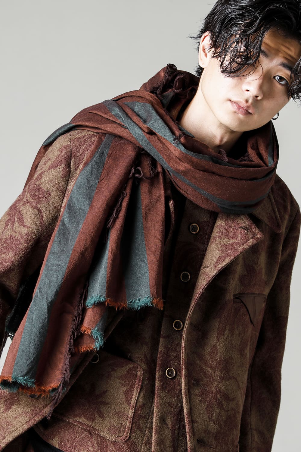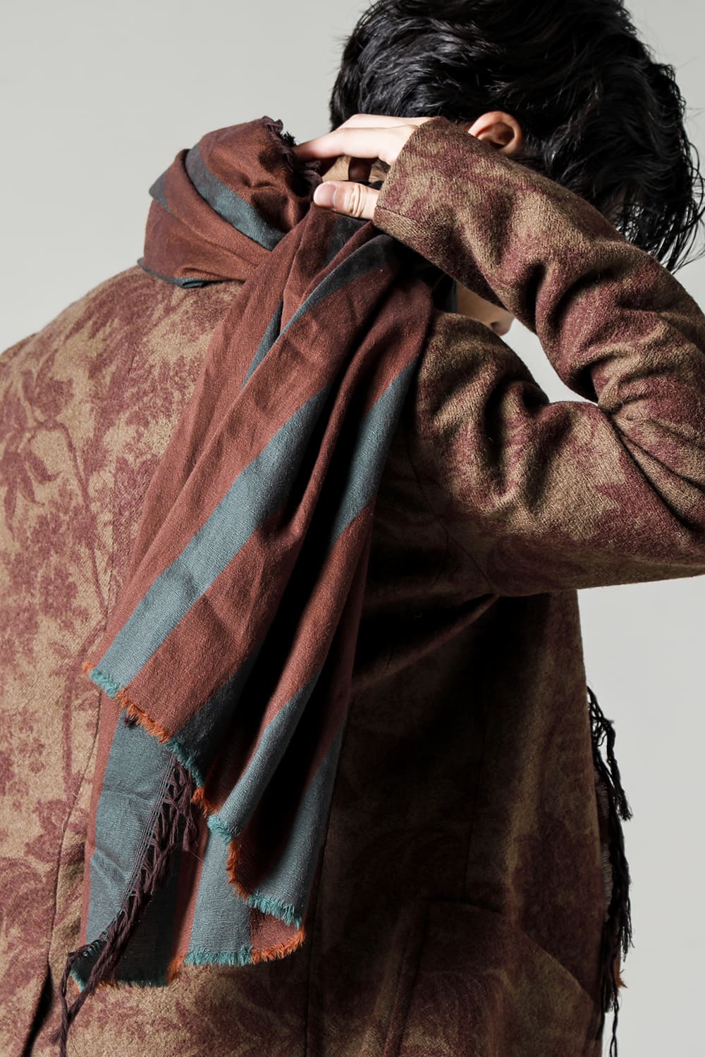 条纹的大披肩。 与UA0286相比,是宽度稍窄的类型。 因为有足够的长度,所以可以进行各种搭配。 使用了维珍羊毛和棉质的具有清爽感的混纺面料。