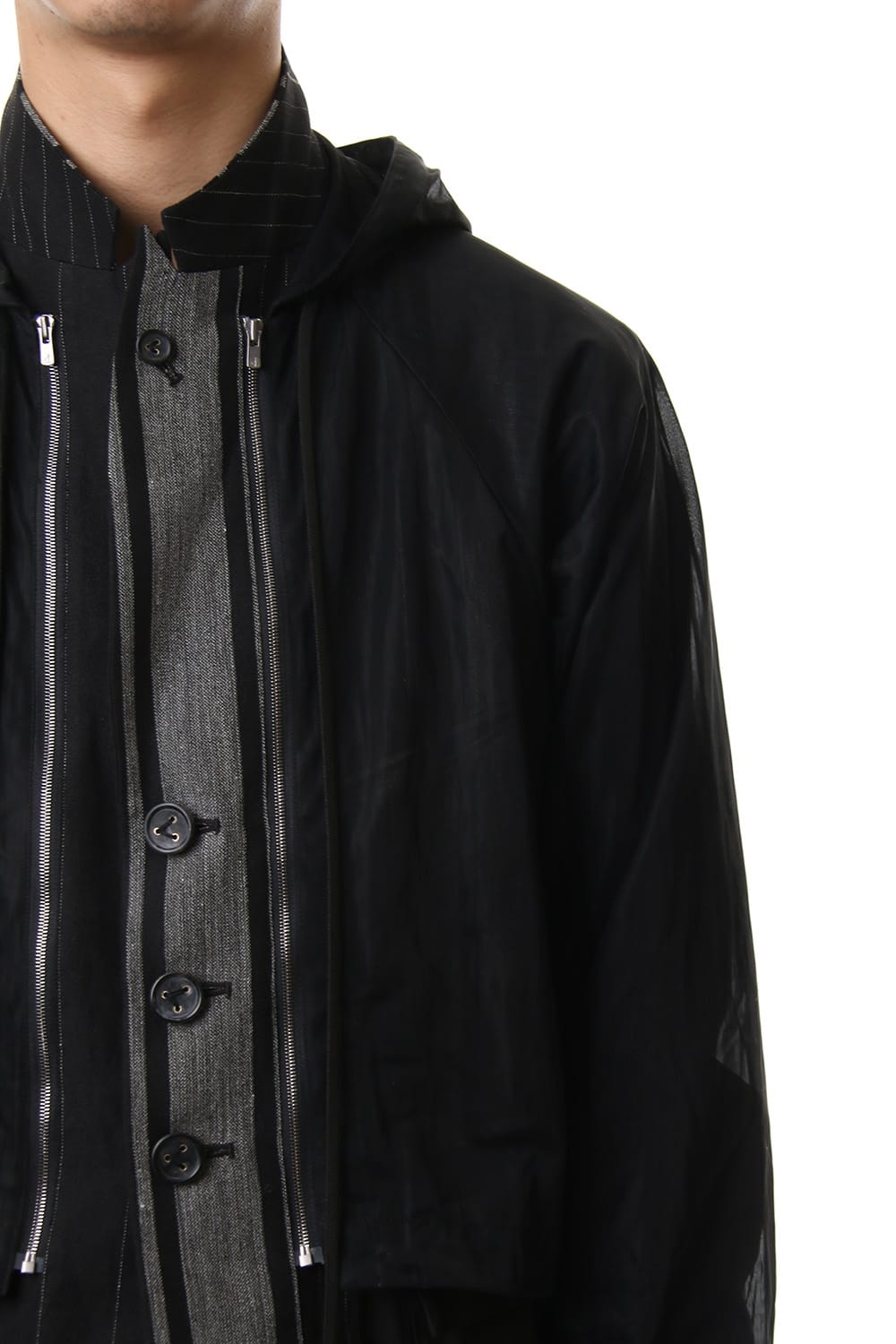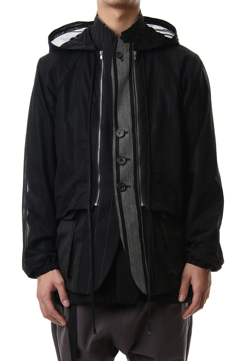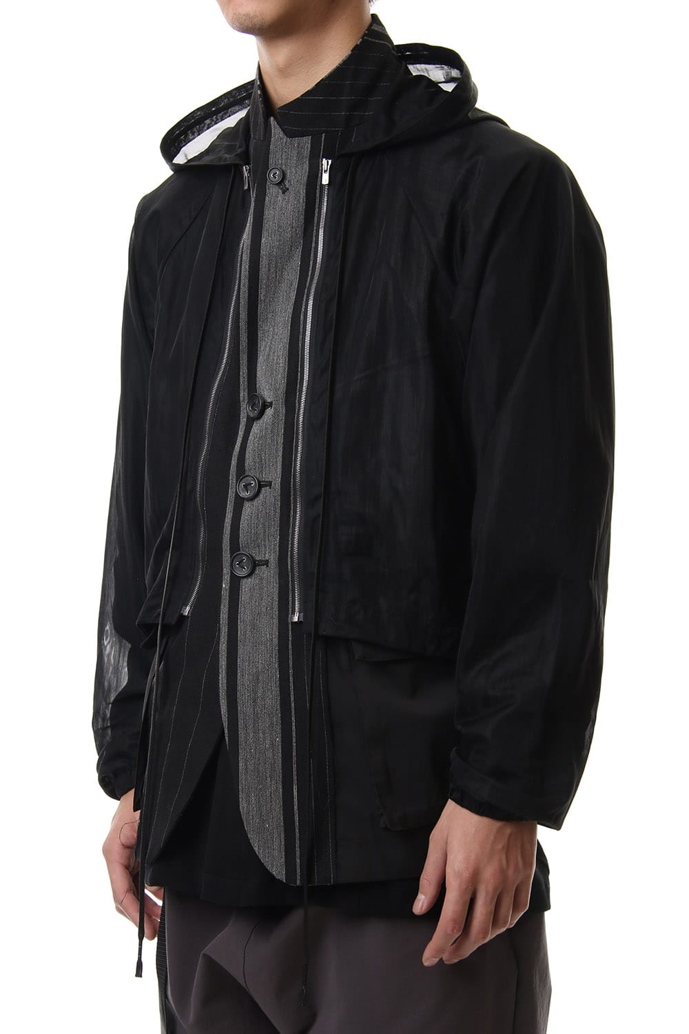 Random stripe & See through Smooth Layered jacket