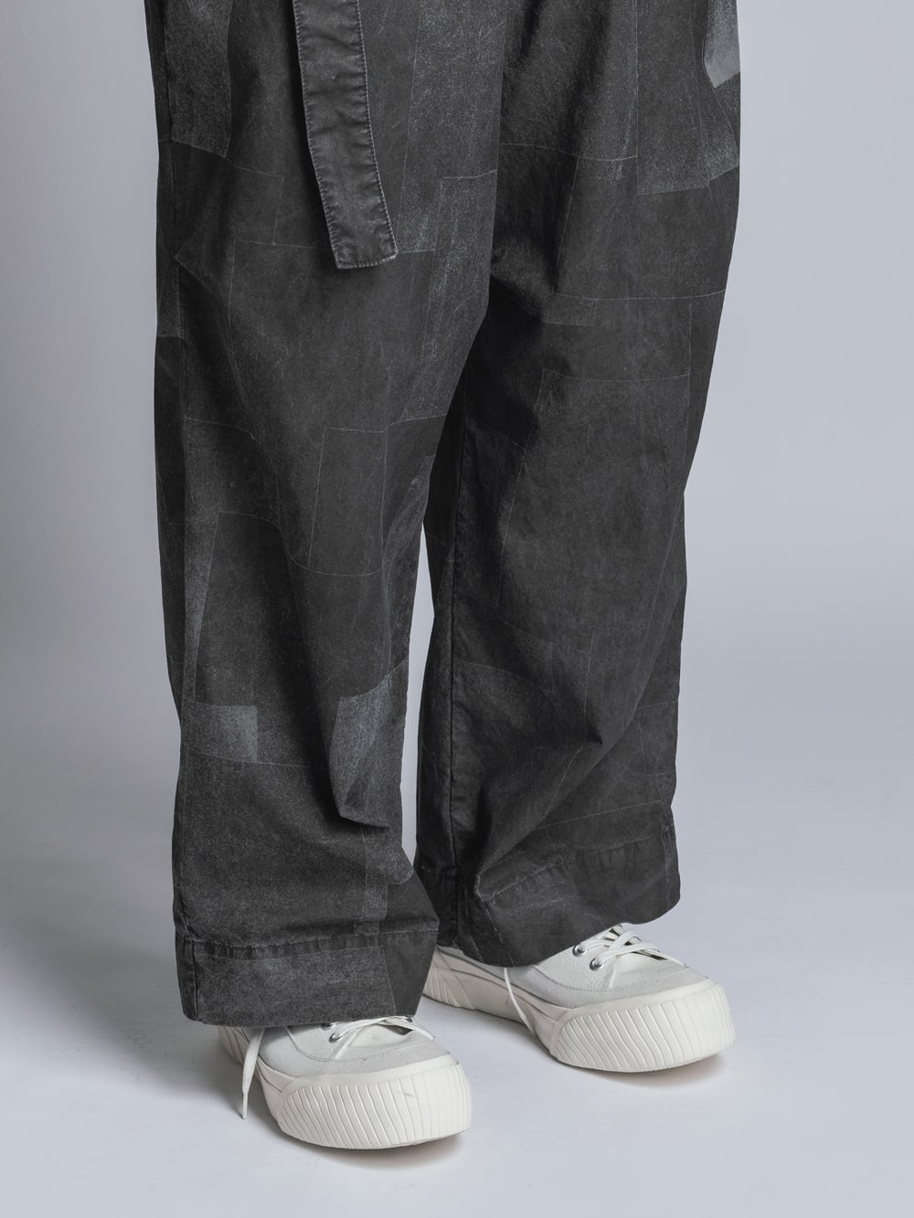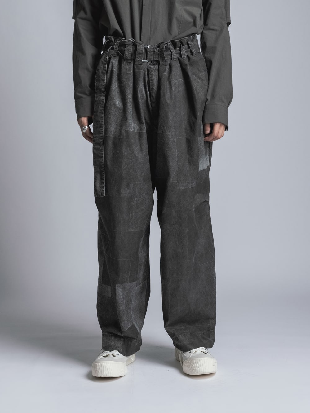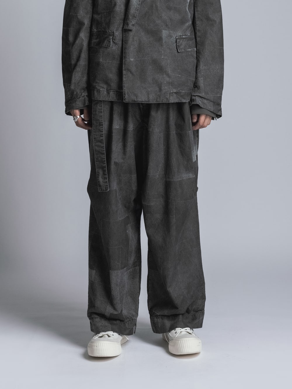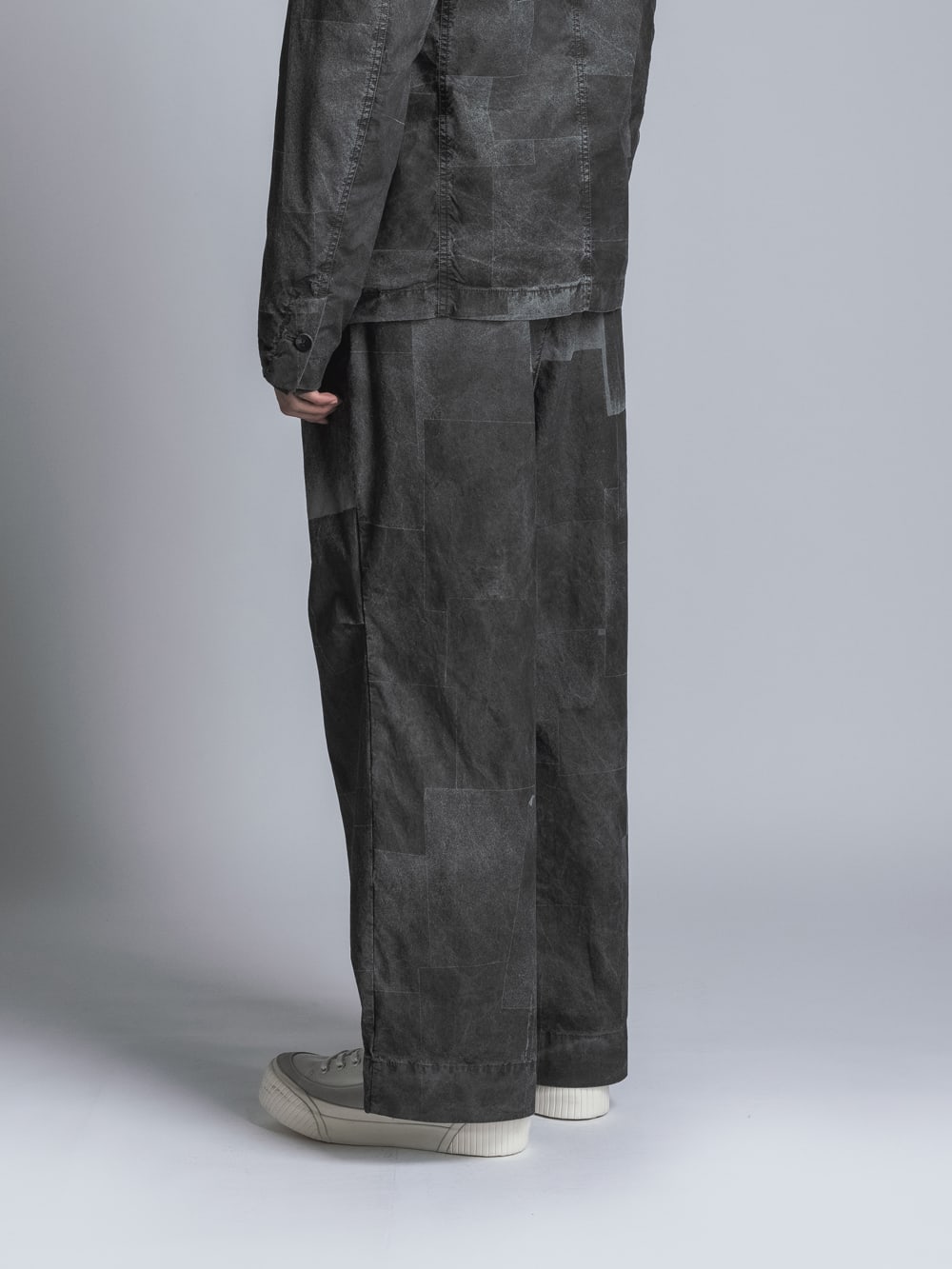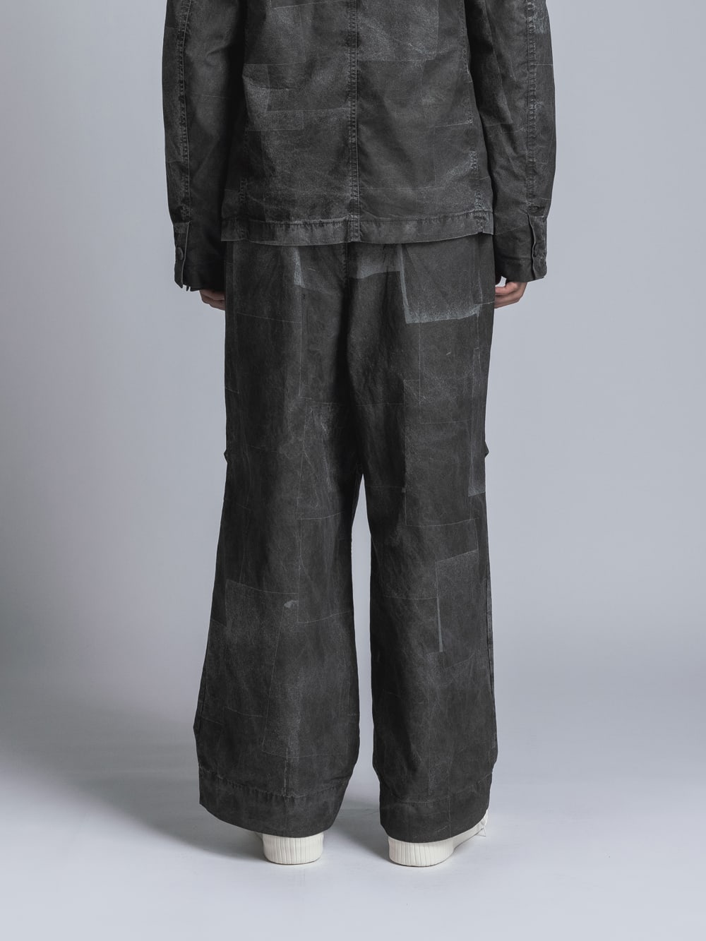 ・The cotton twill is covered with a hand-made patchwork of paper and the surface is then rubbed off.