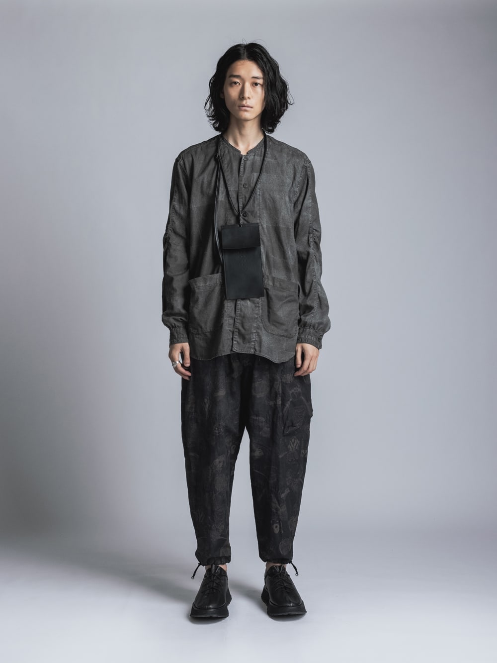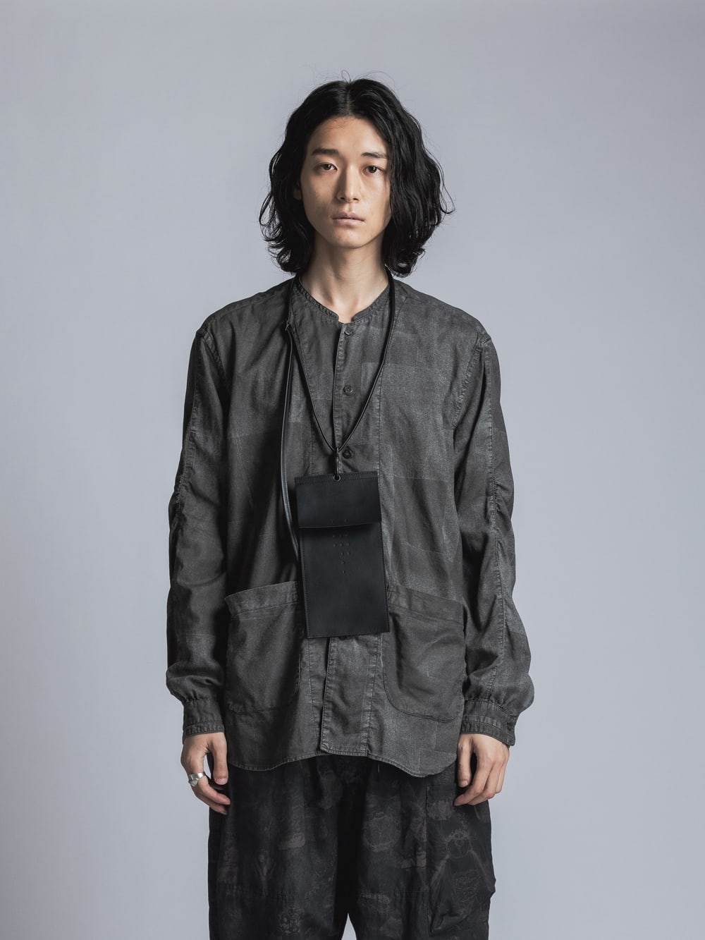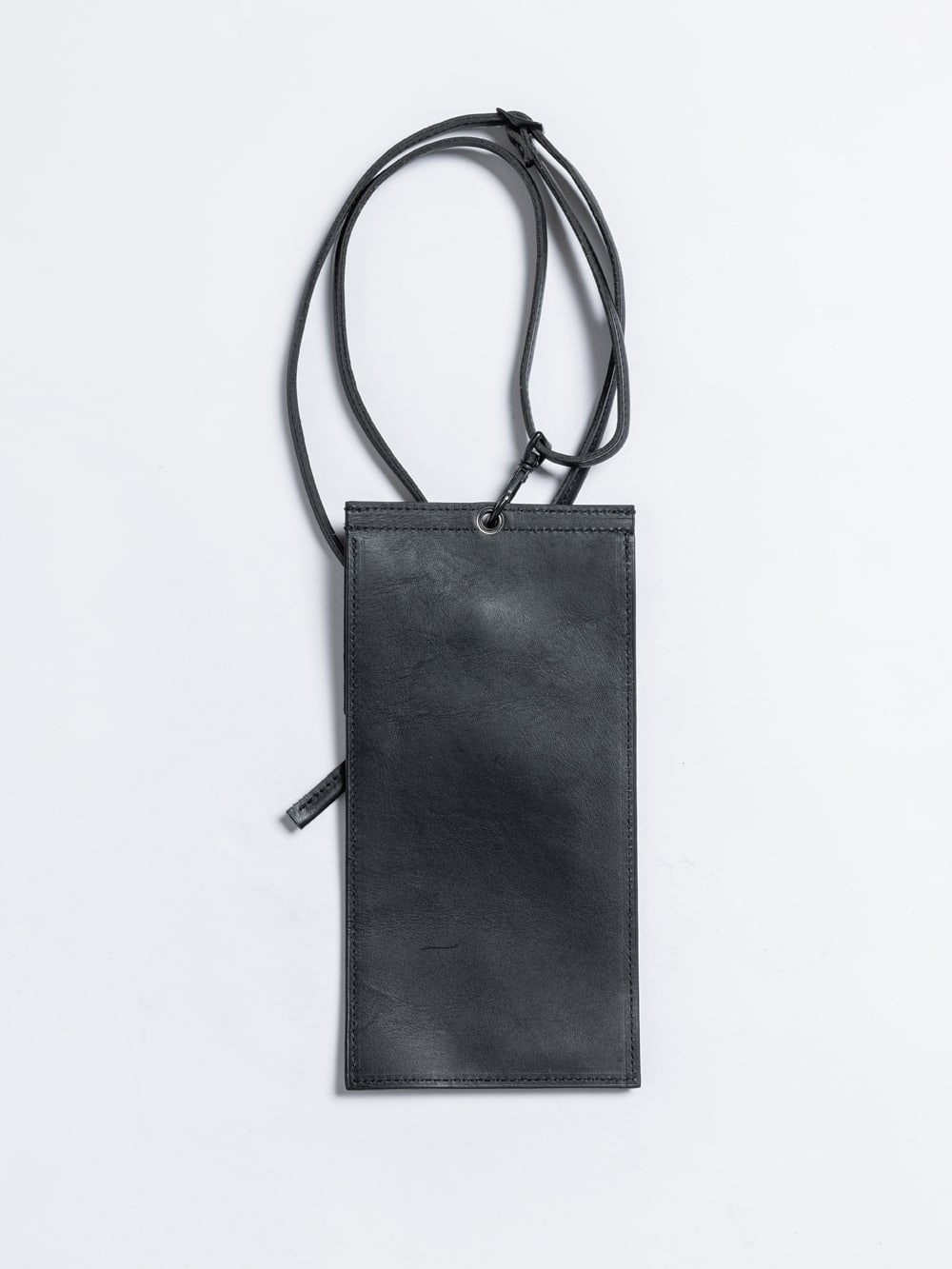 ・This is a vertical leather pouch that can be hung from the neck. The cord is removable.
